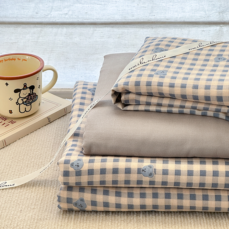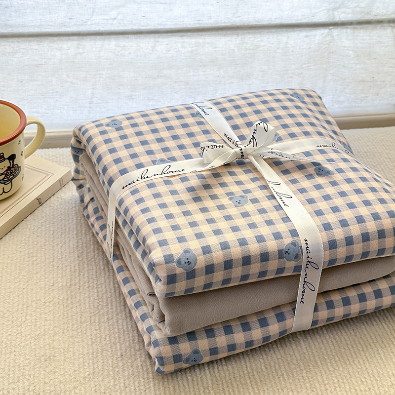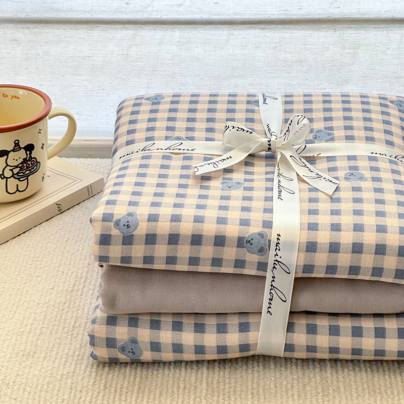 当前位置: 91家纺网 > 商品网购 > 床品套件 > 四件套 > 双层纱四件套 > 麦伦家居 2025新款全棉有氧双层纱简约款系列四件套 布鲁小熊蓝