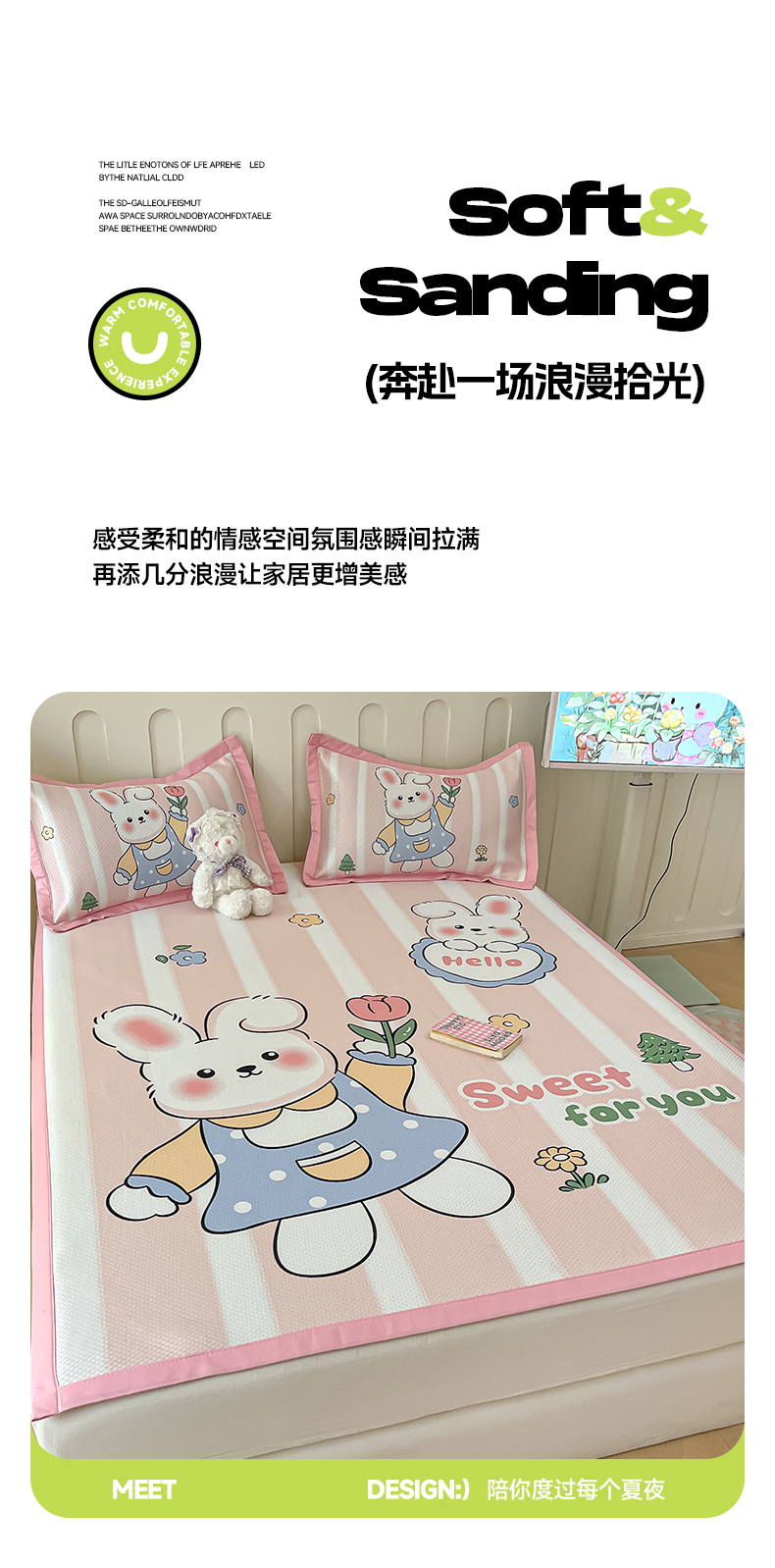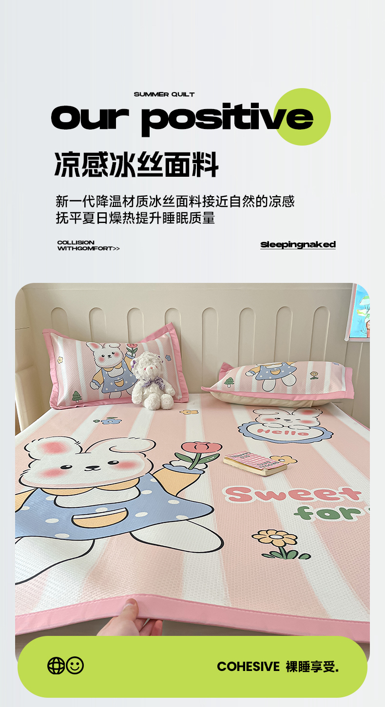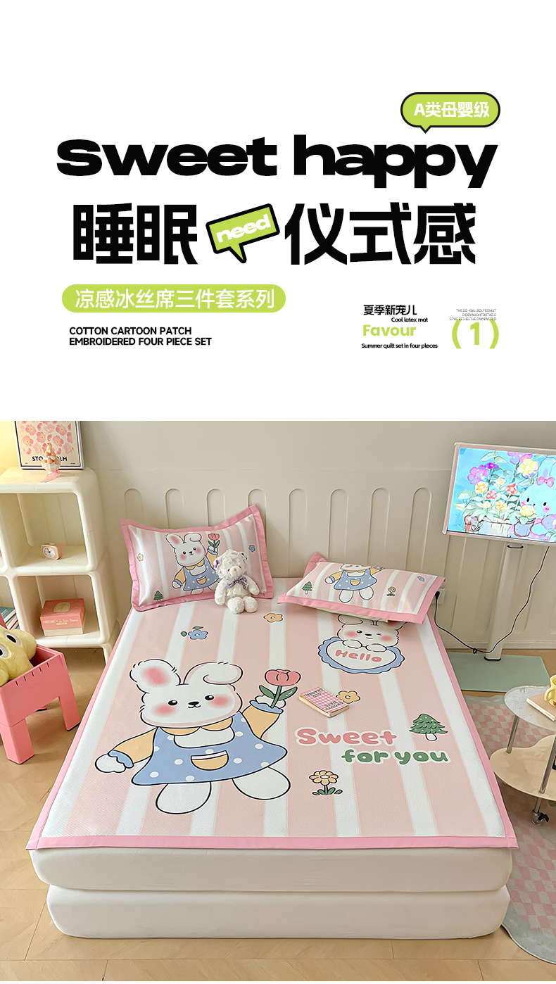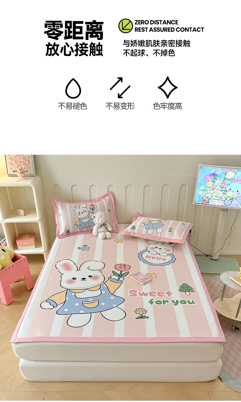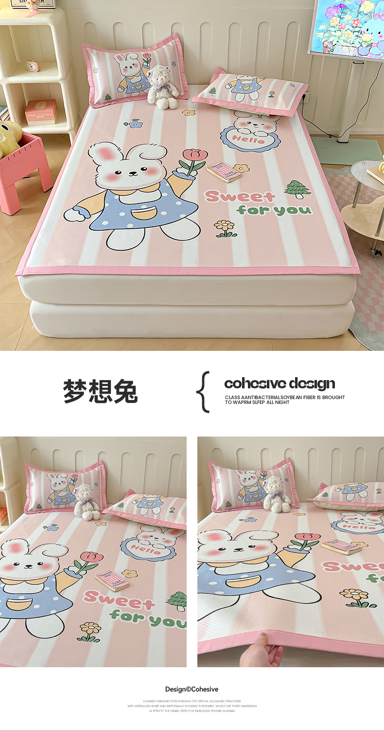 商品名称:摩妮卡 2025新款A类大版碳光冰丝席 三件套 梦想兔