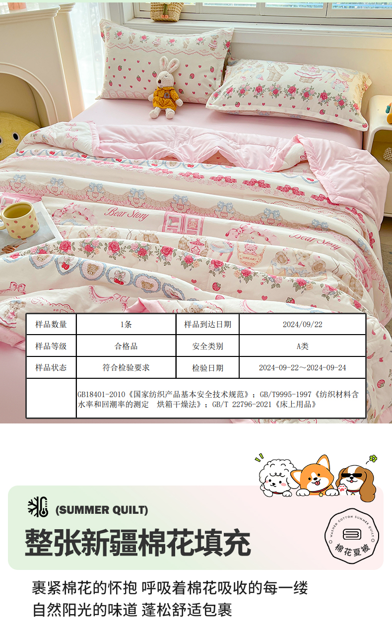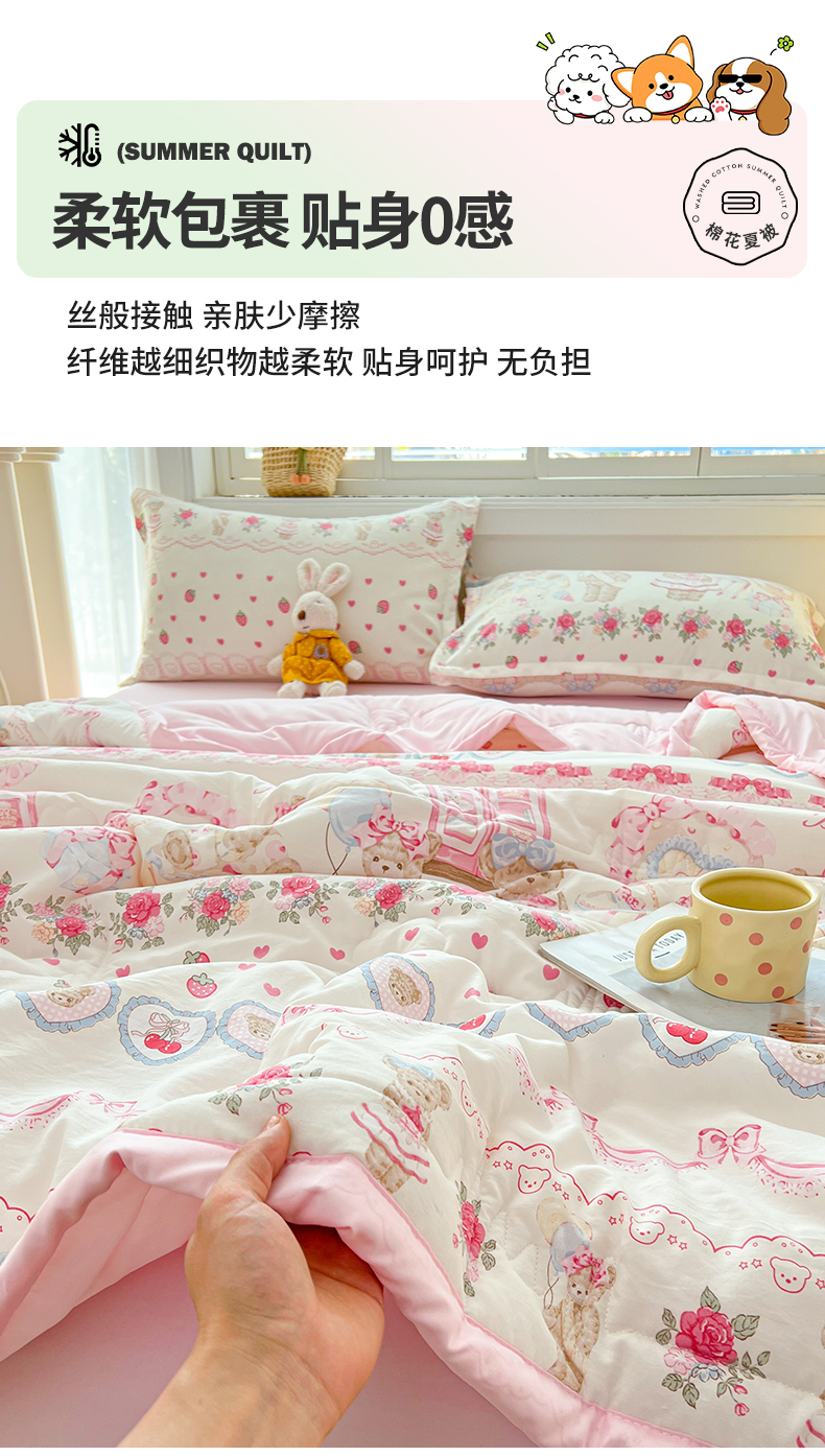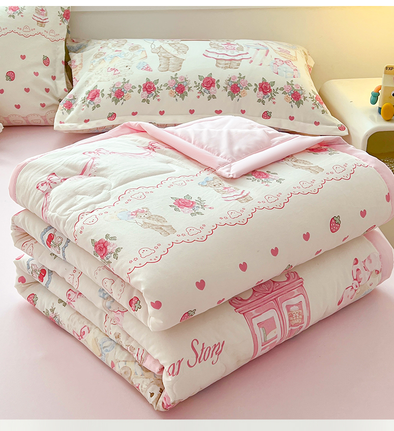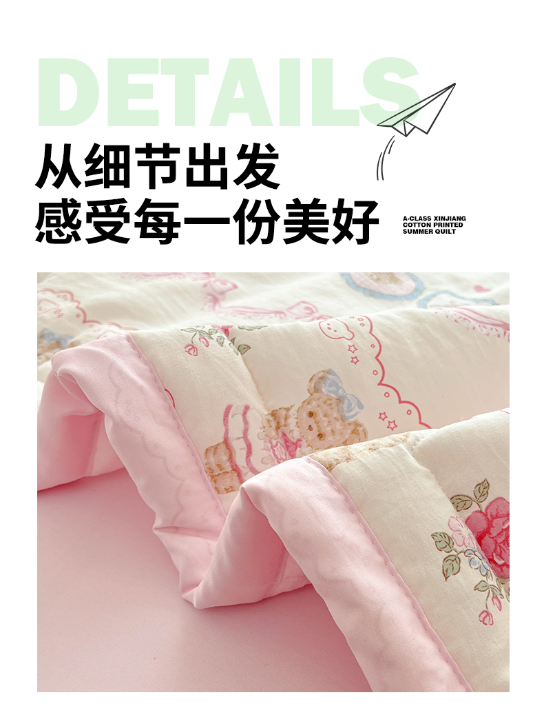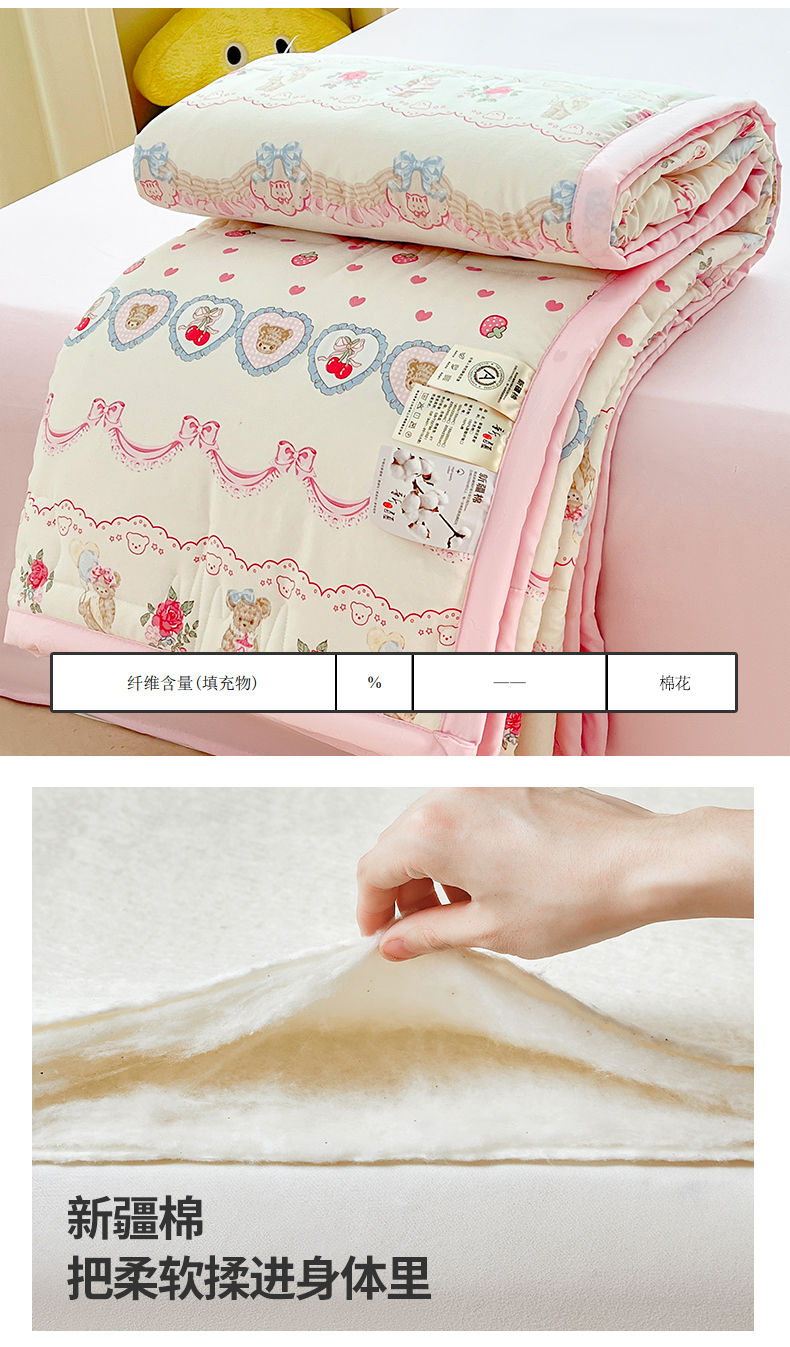 商品名称:西域种棉人·千百笠 2025新款A类新疆棉花夏凉被加宽包边水洗棉卡通印花吸湿透气棉花夏被空调被 凌香 泰迪熊