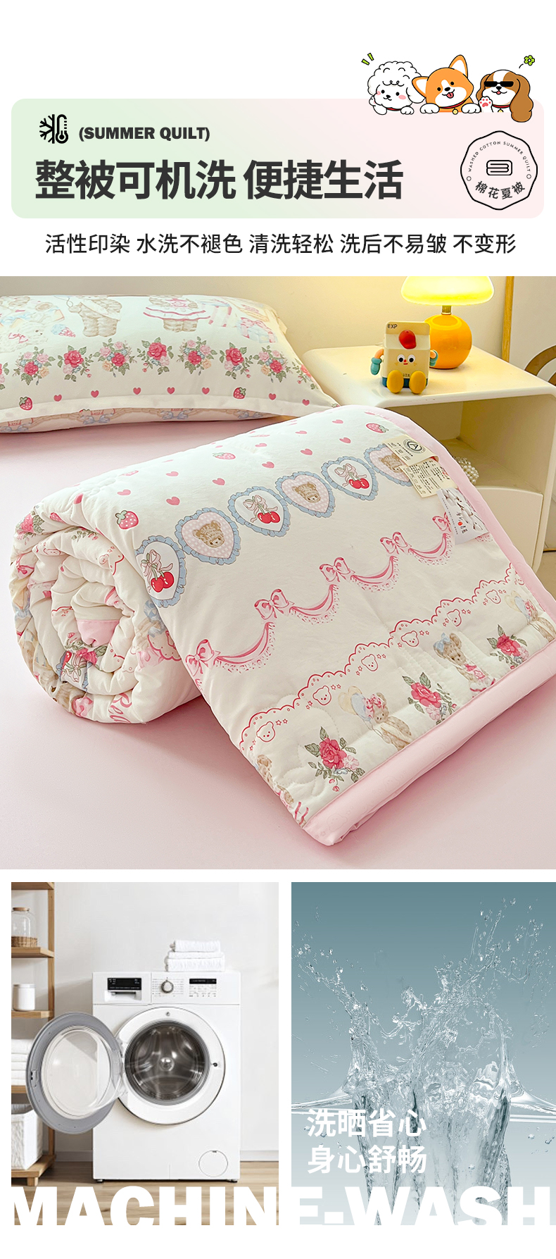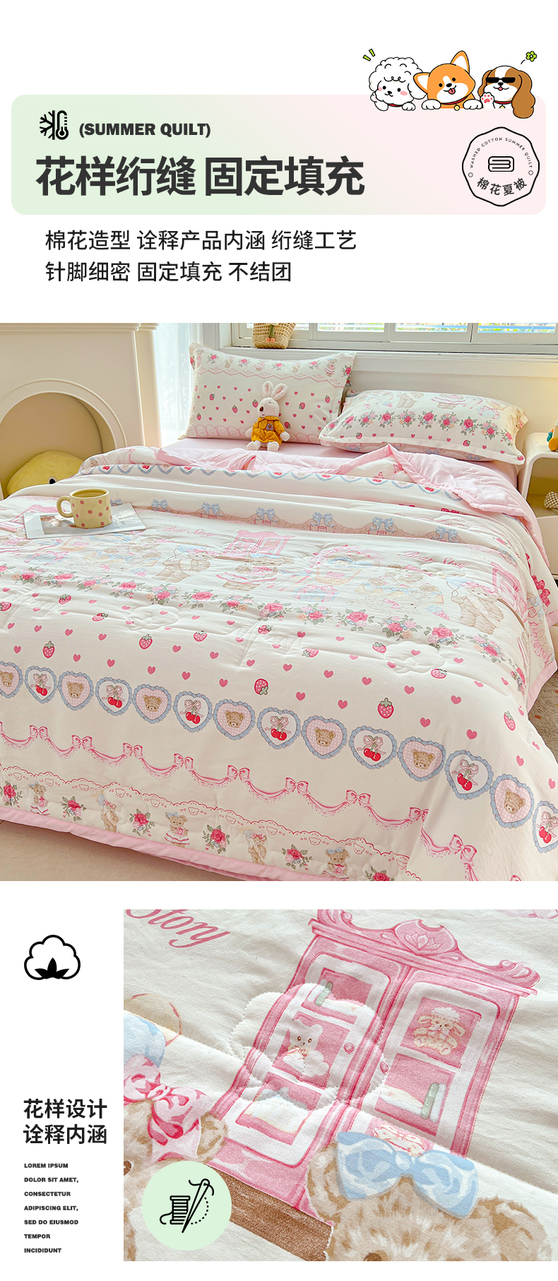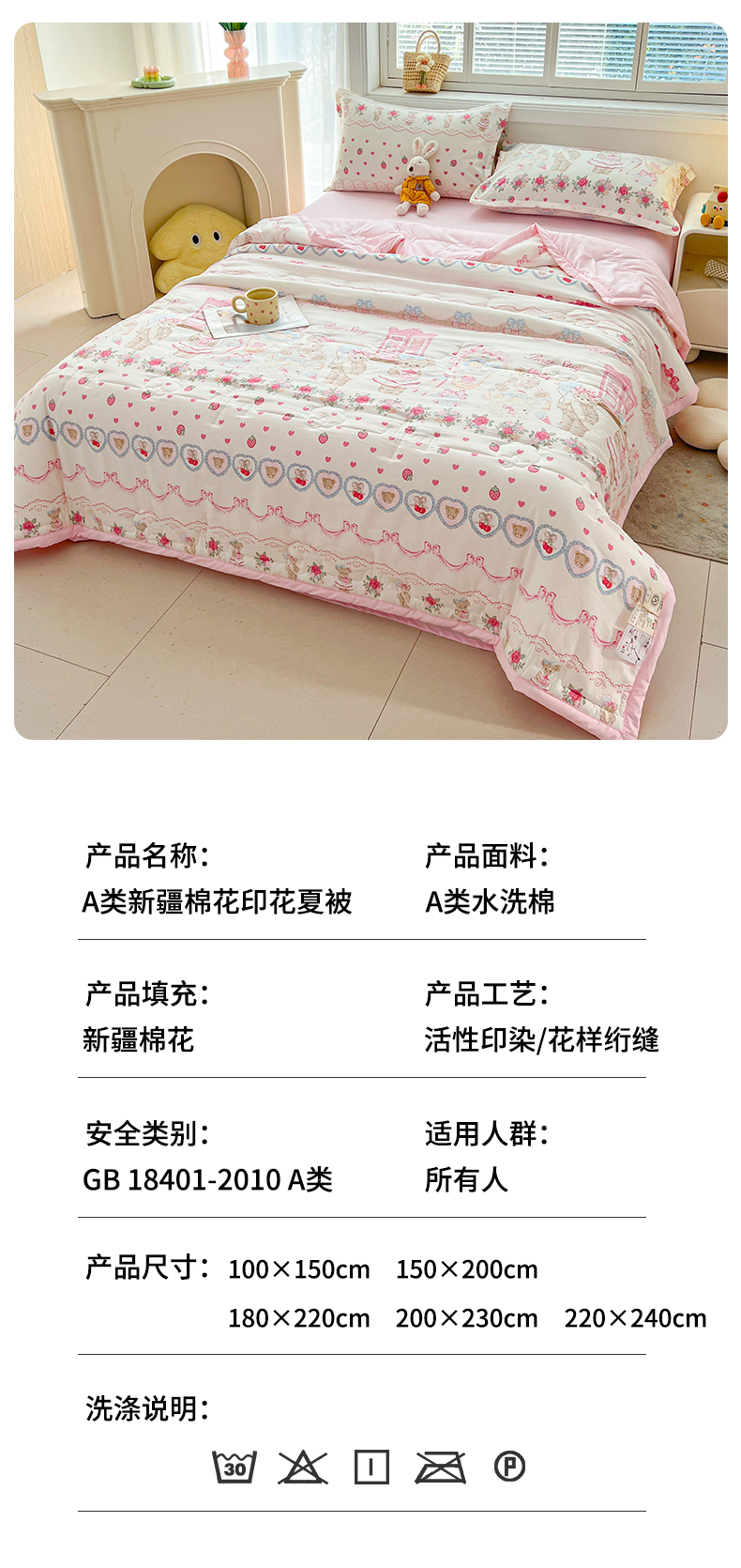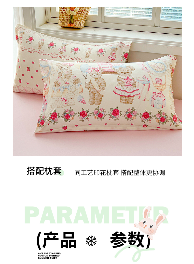 商品名称:西域种棉人·千百笠 2025新款A类新疆棉花夏凉被加宽包边水洗棉卡通印花吸湿透气棉花夏被空调被 凌香 泰迪熊