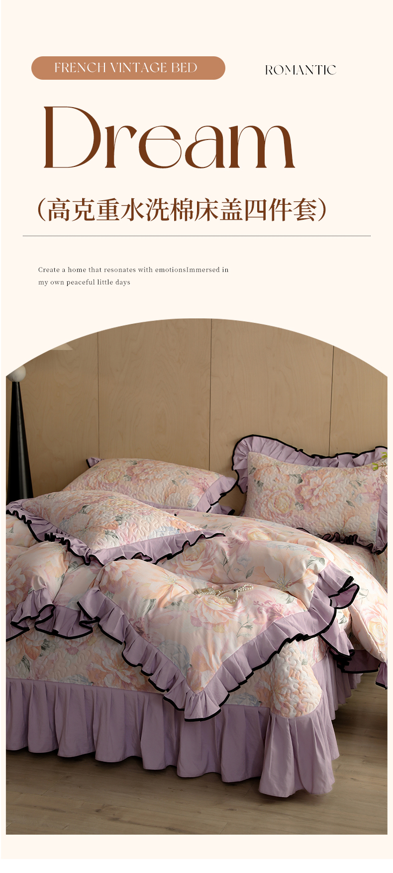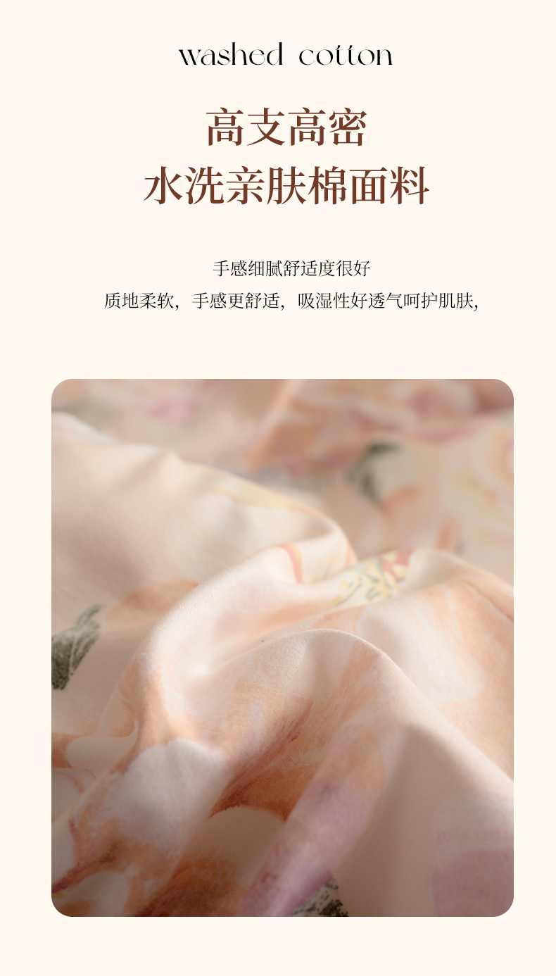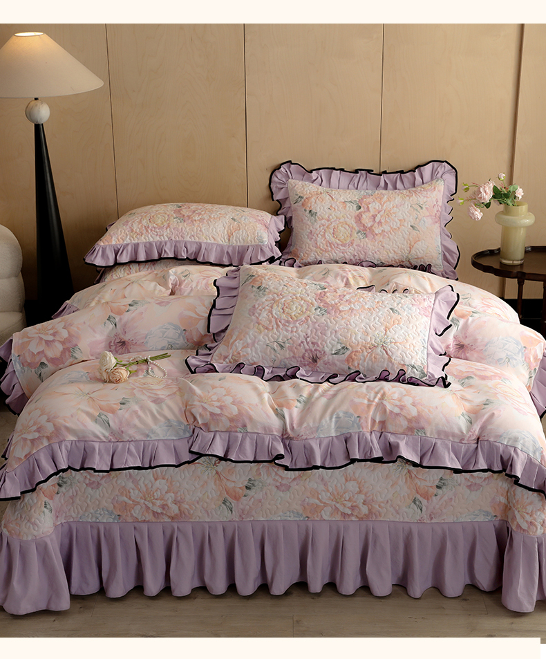 • 91家纺网 家纺一手货源 找家纺 金盛皇朝家纺 2025新款田园风水洗棉床盖四件套系列 暮色花市