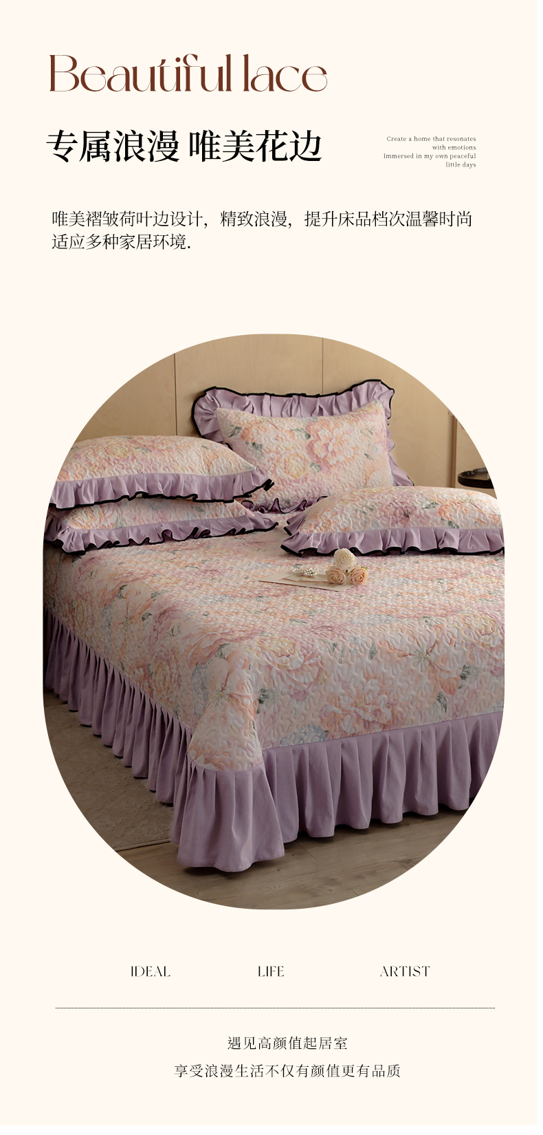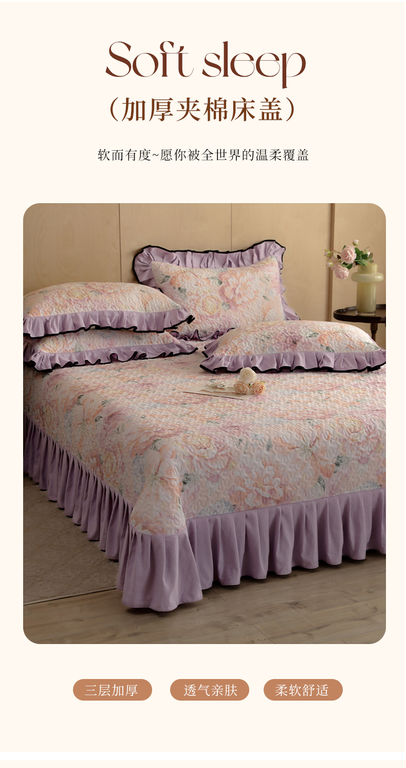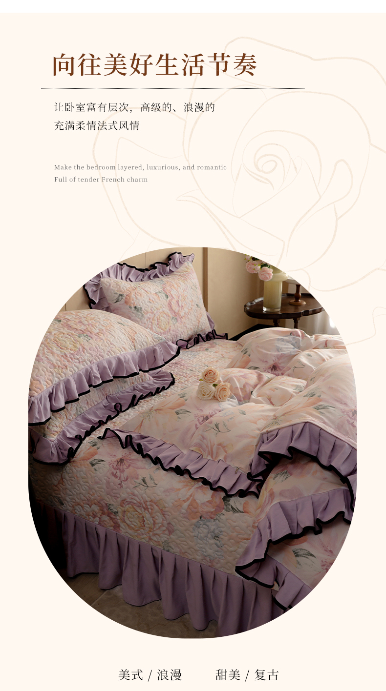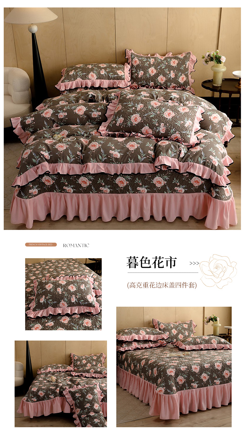 当前位置: 91家纺网 > 商品网购 > 床上用品 > 床盖 > 金盛皇朝家纺 2025新款田园风水洗棉床盖四件套系列 暮色花市