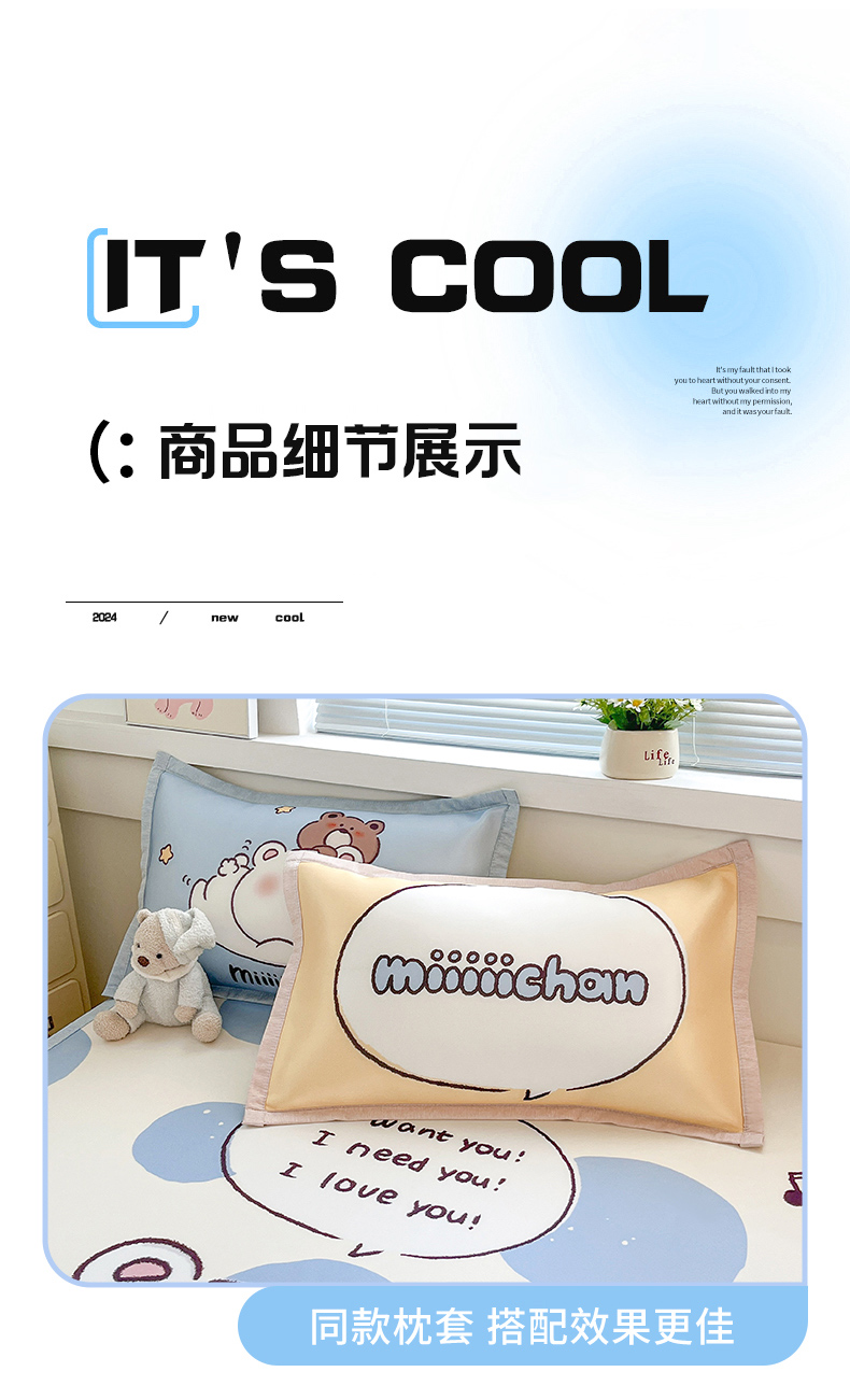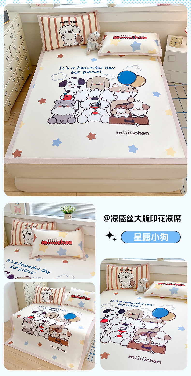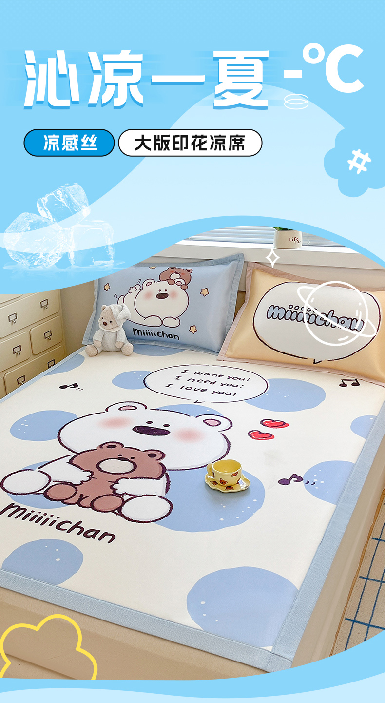 商品名称:博雅 2025新款miiiiichan正版权A类大版数码印花1200D冰丝凉席席子 彩色波点熊