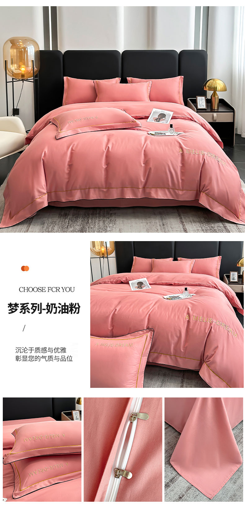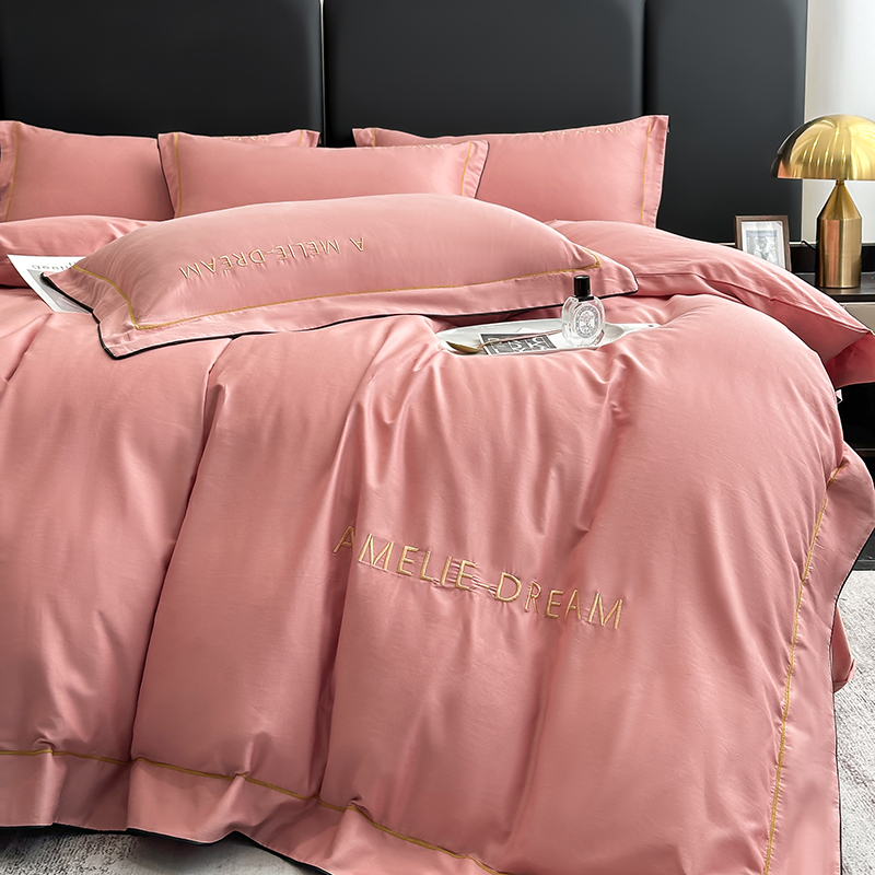当前位置: 91家纺网 > 商品网购 > 床品套件 > 四件套 > 全棉普通四件套 > 宇彬家纺 2025新款直播热款13374全棉母婴级压线一字绣宽边枕套被套纯色滚边麻绳四件套贡缎新疆长绒缎新疆长绒 梦系列-奶油粉