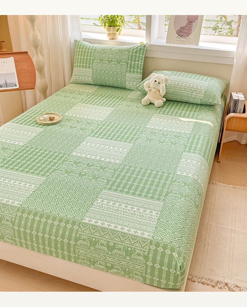 • 91家纺网 家纺一手货源 找家纺 爱彼家纺 2025新款柔软舒适全棉纯棉老粗布华夫格凉席床笠 华夫格床笠-如意-绿