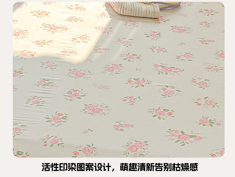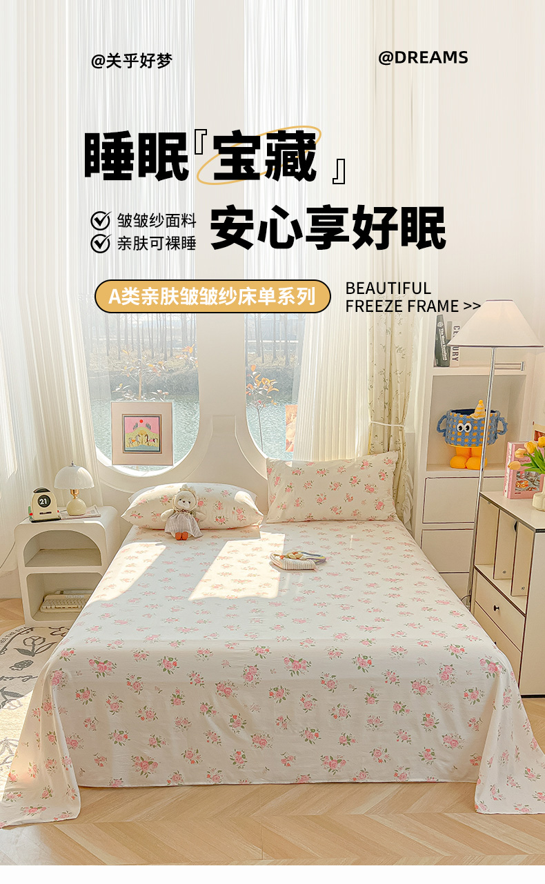 眠帛家居 2025新款A类水洗皱皱纱印花床单 浪漫