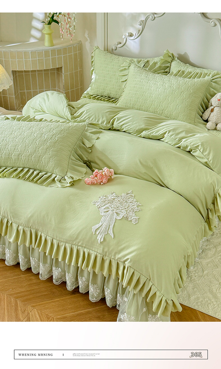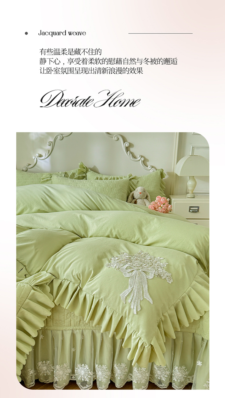 (总)漫布云 2025新款230g高克重韩版立体盘花牛奶蚕丝绒绣花四件套床裙款被套-洛丽塔系列,洛丽塔-嫩黄 ,洛丽塔-香芋紫,洛丽塔-珍珠粉, 洛丽塔-婴儿蓝