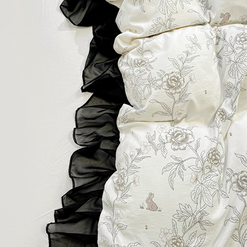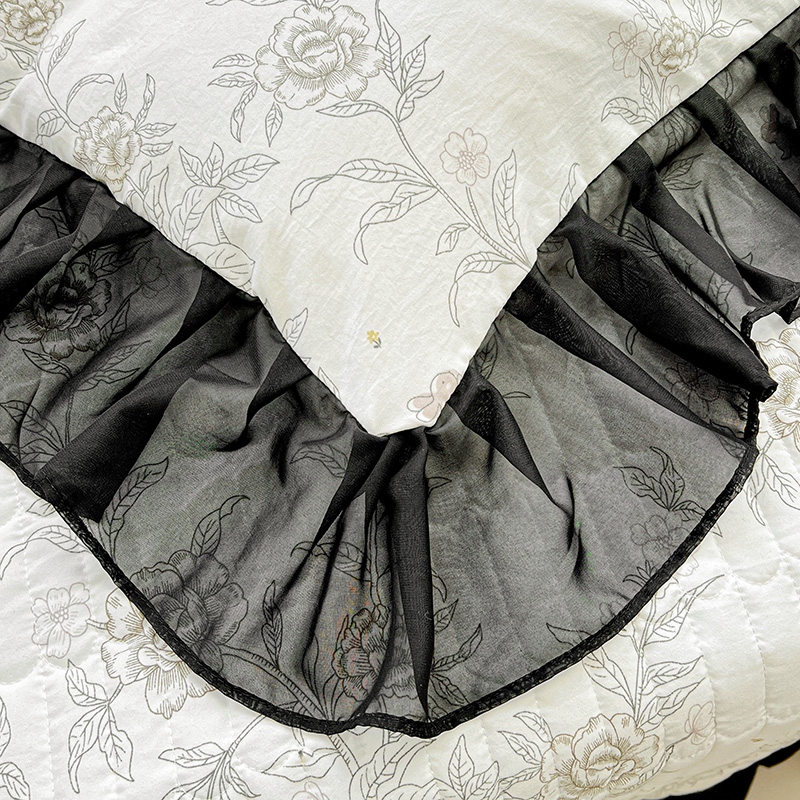 商品名称:艾橙 2025新款法式赫本风水洗棉印花雪纺花边单枕套 素馨花恋