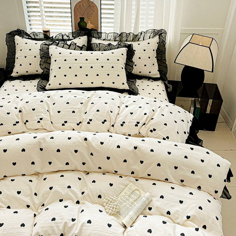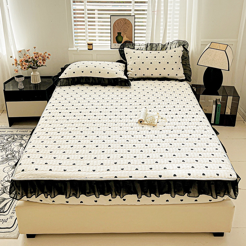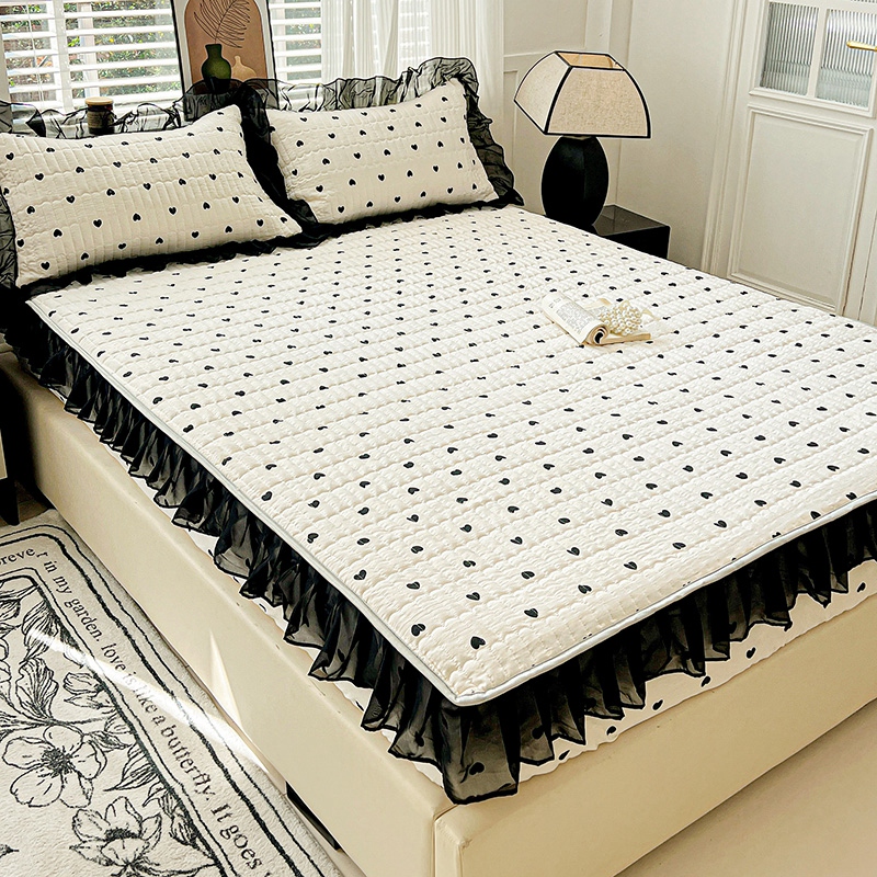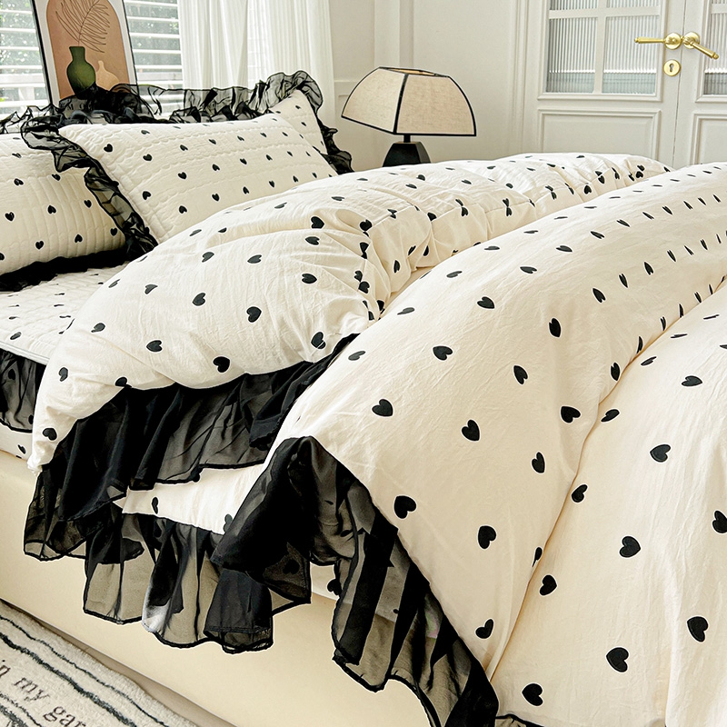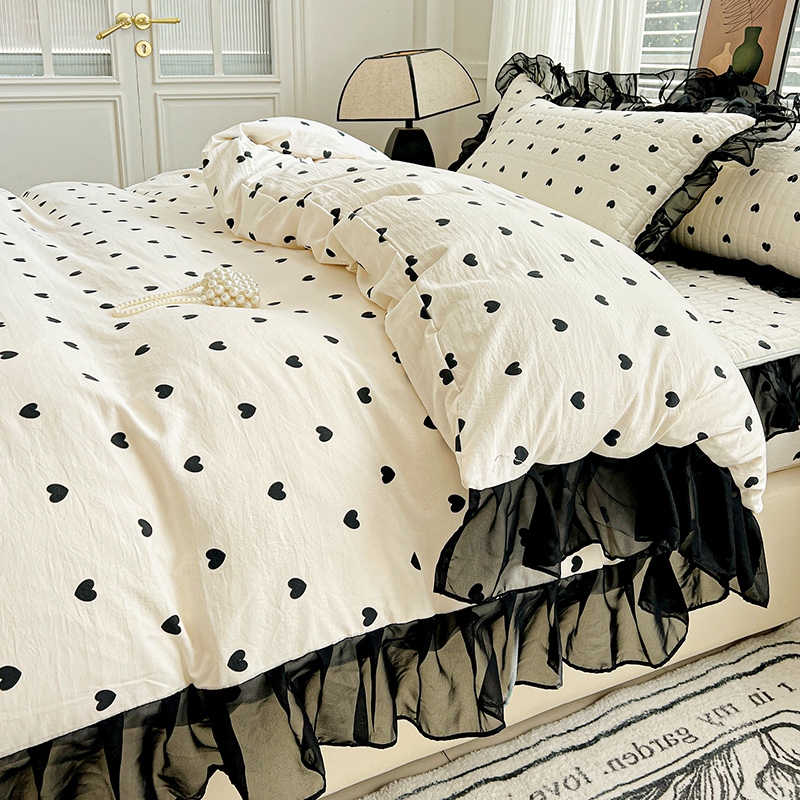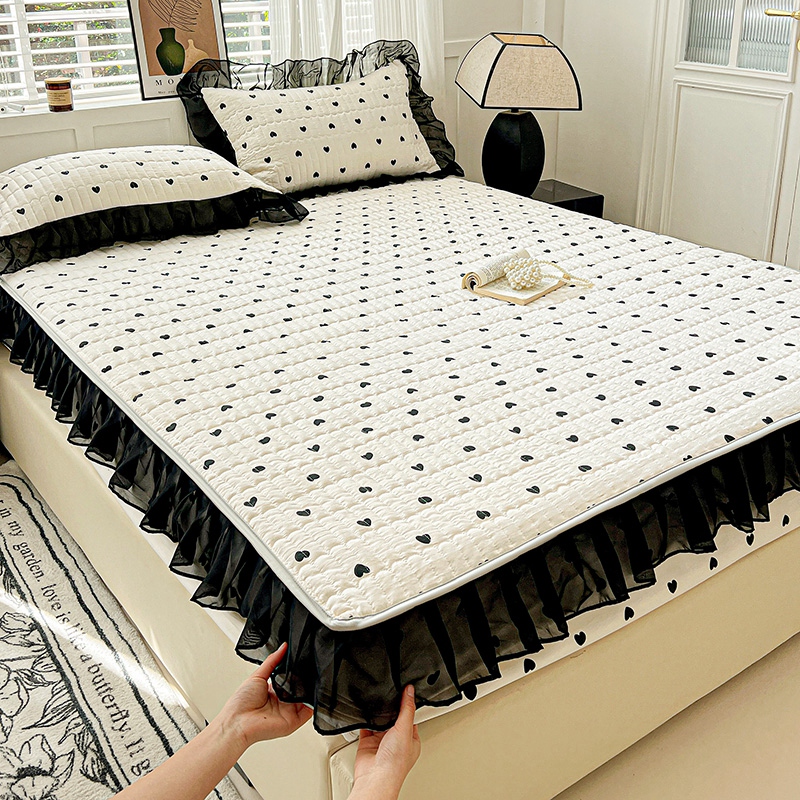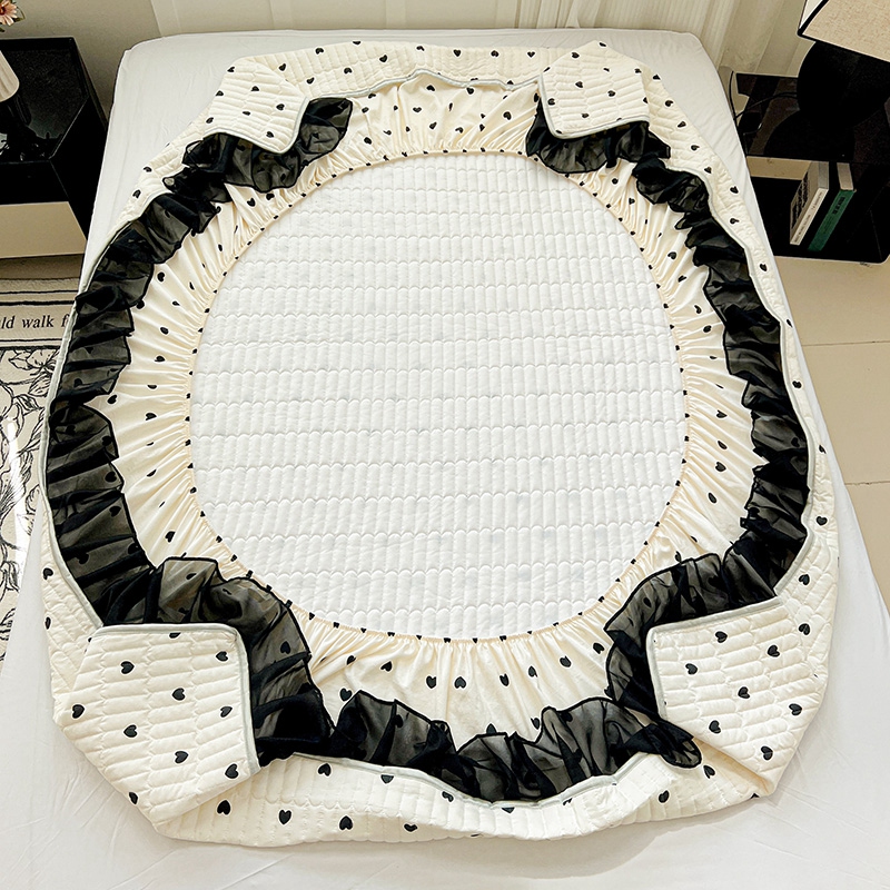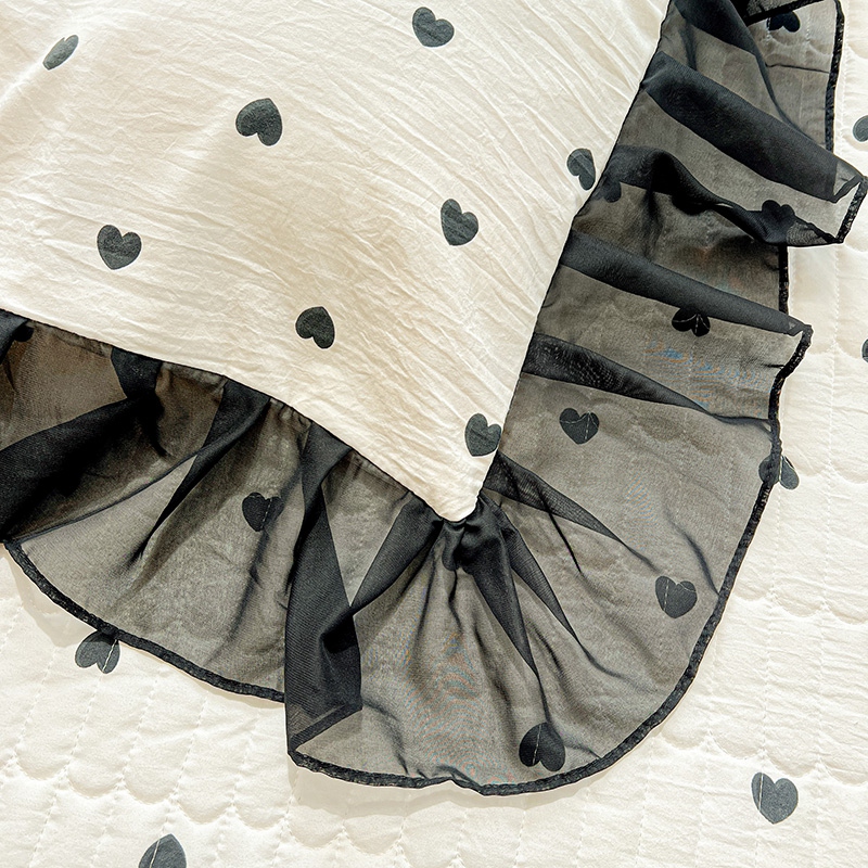 艾橙家纺2025新款法式赫本风水洗棉印花雪纺花边单床笠 心心相印
