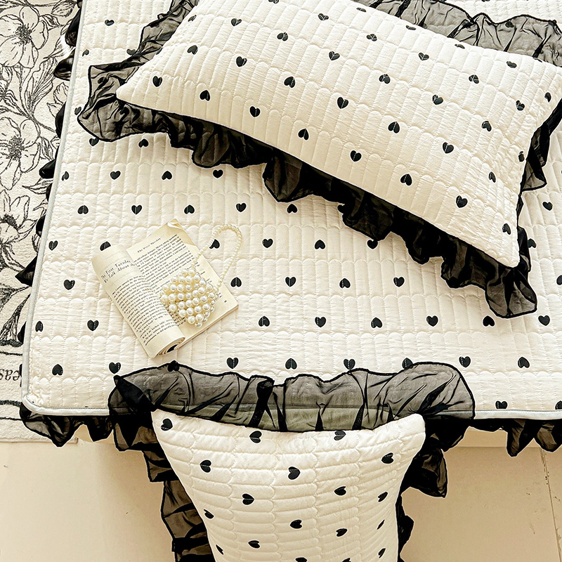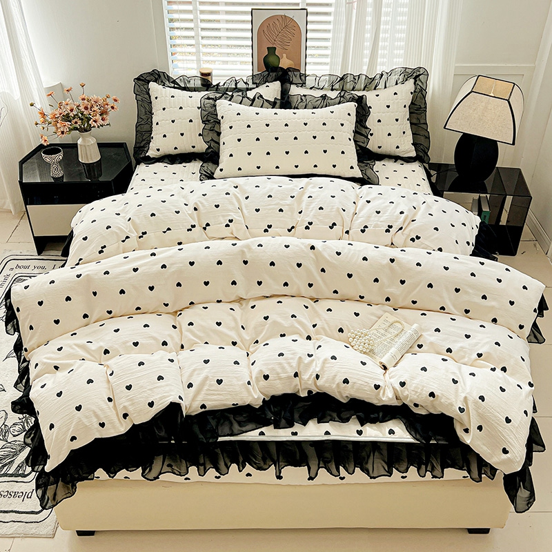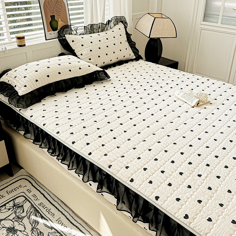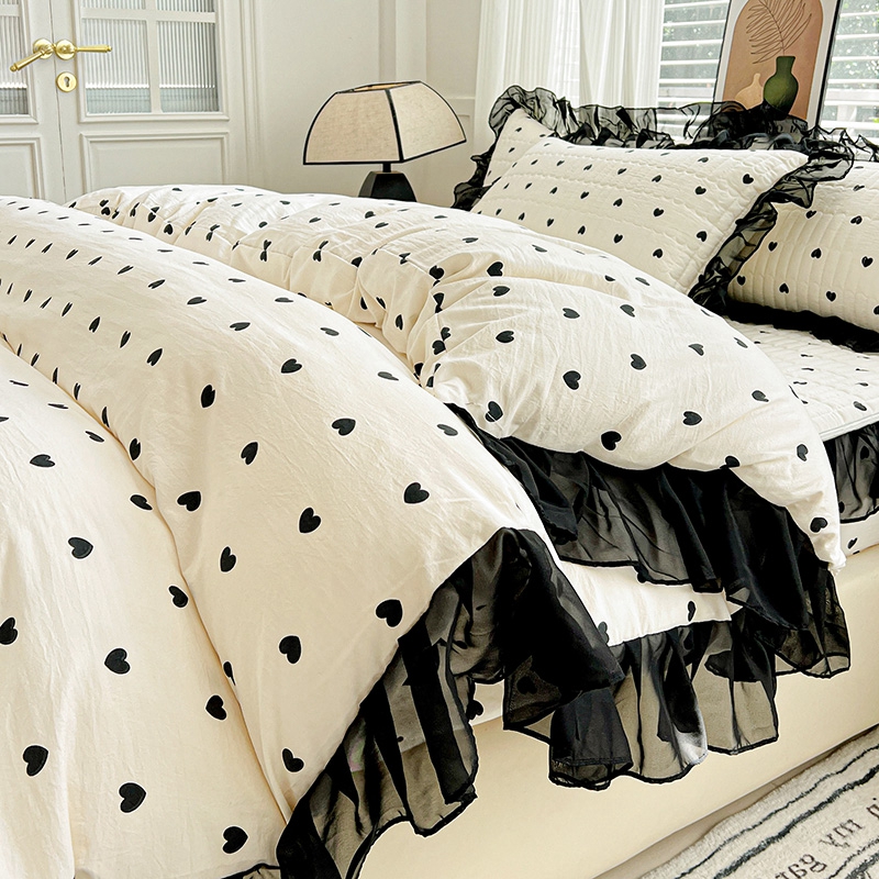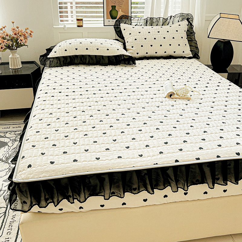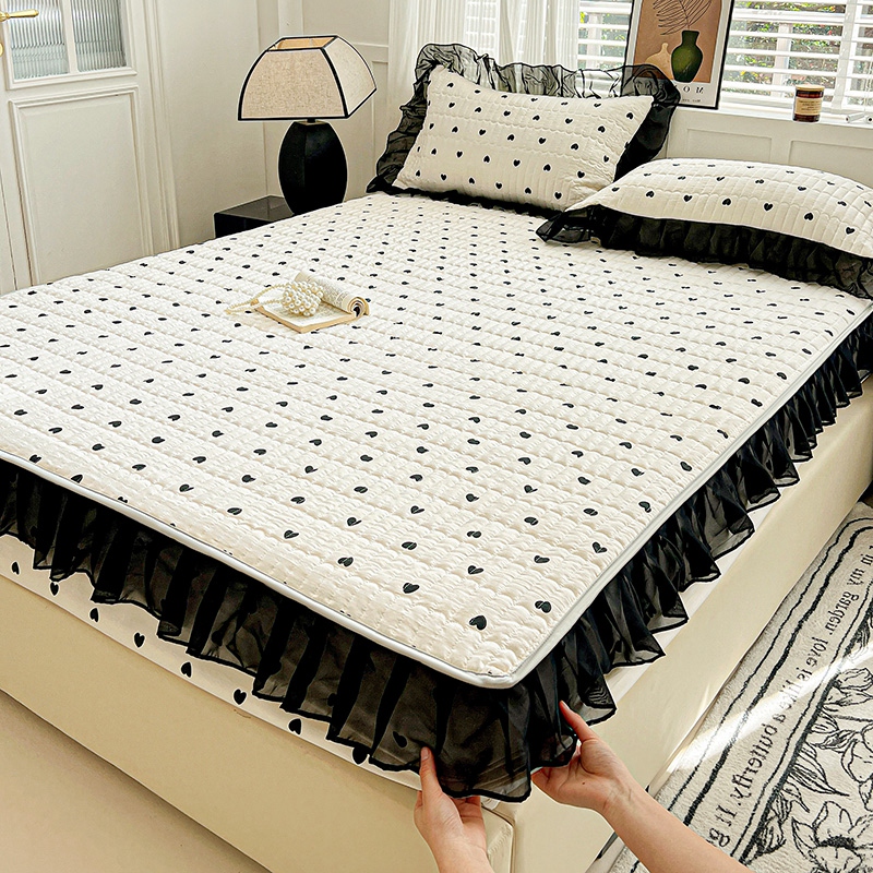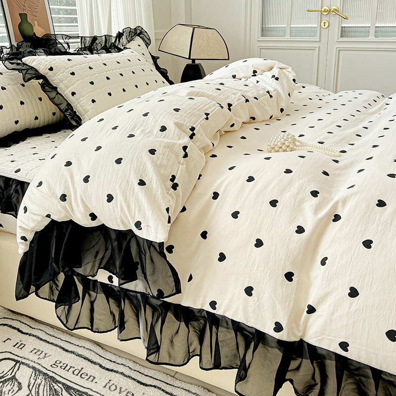 艾橙家纺2025新款法式赫本风水洗棉印花雪纺花边单床笠 心心相印