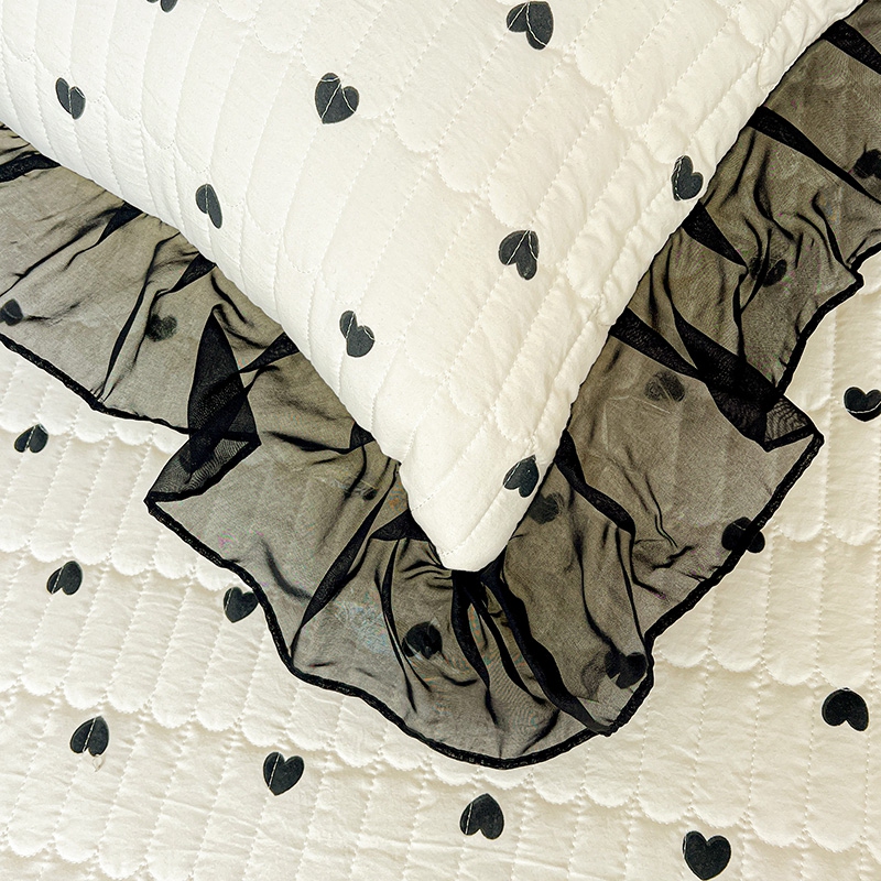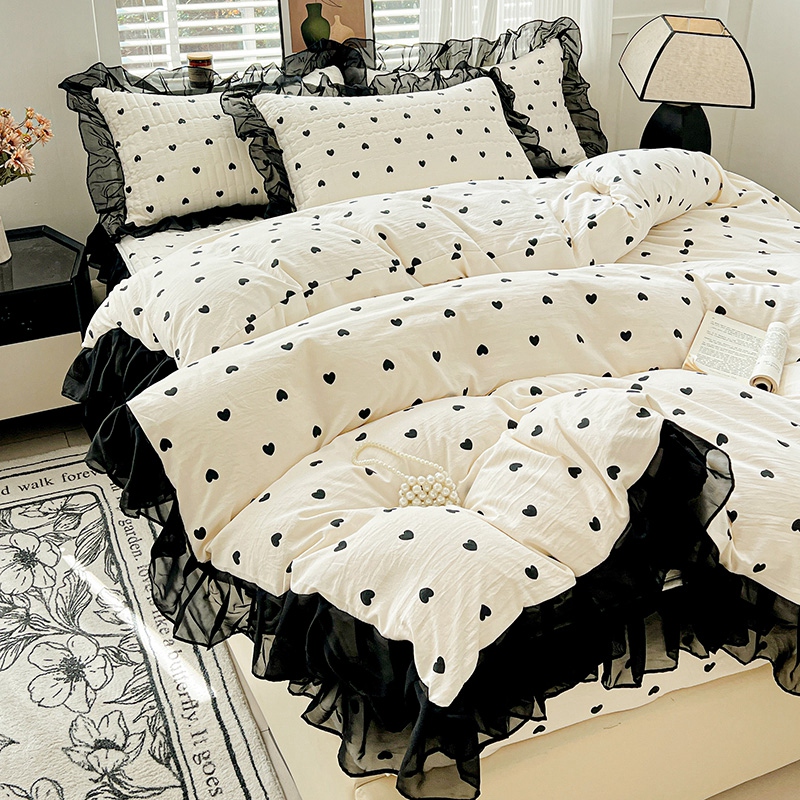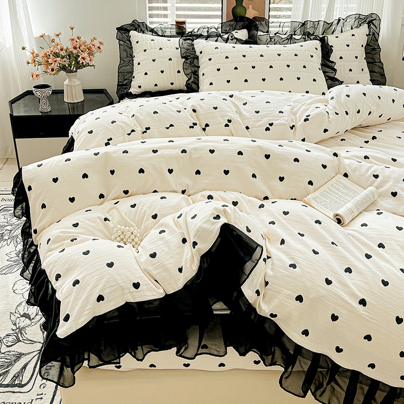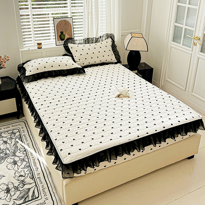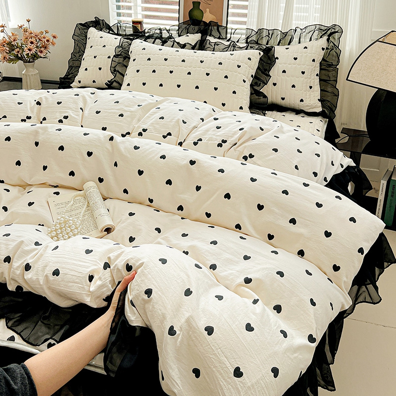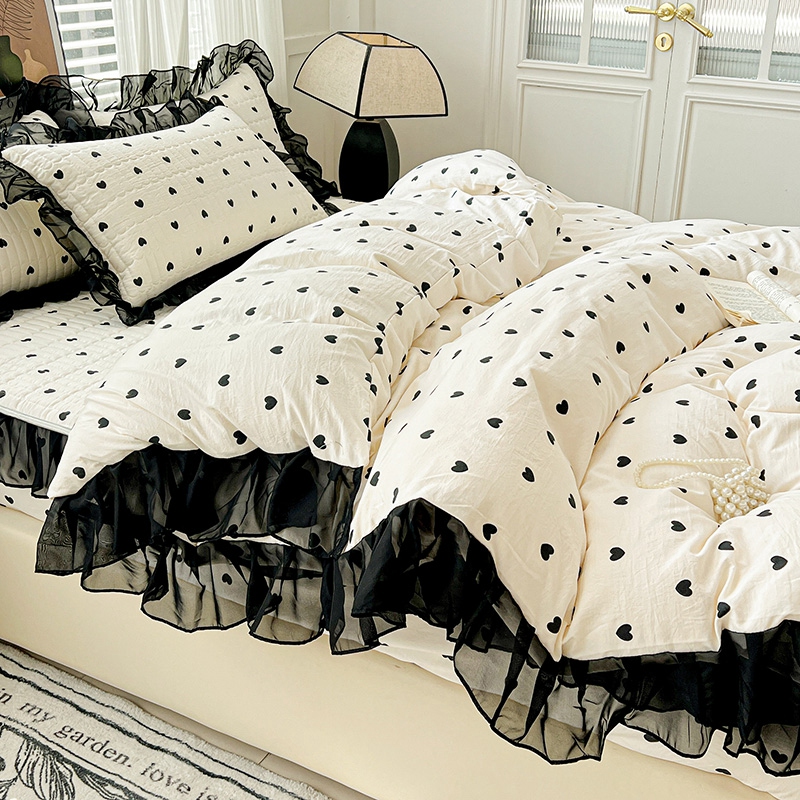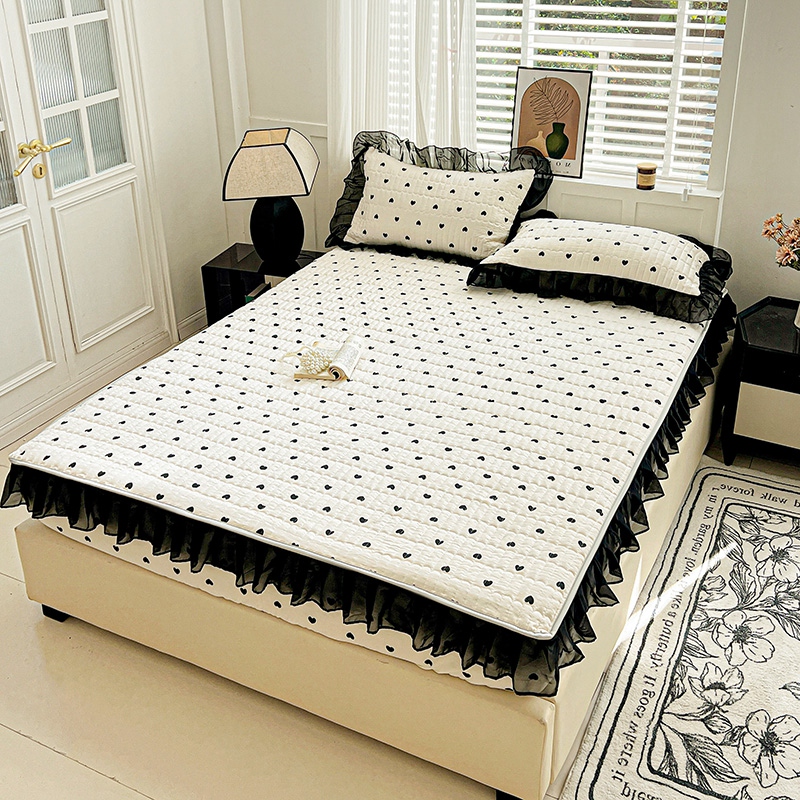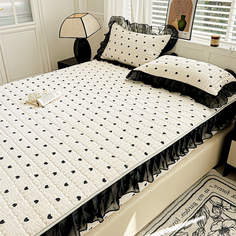 艾橙家纺2025新款法式赫本风水洗棉印花雪纺花边单床笠 心心相印