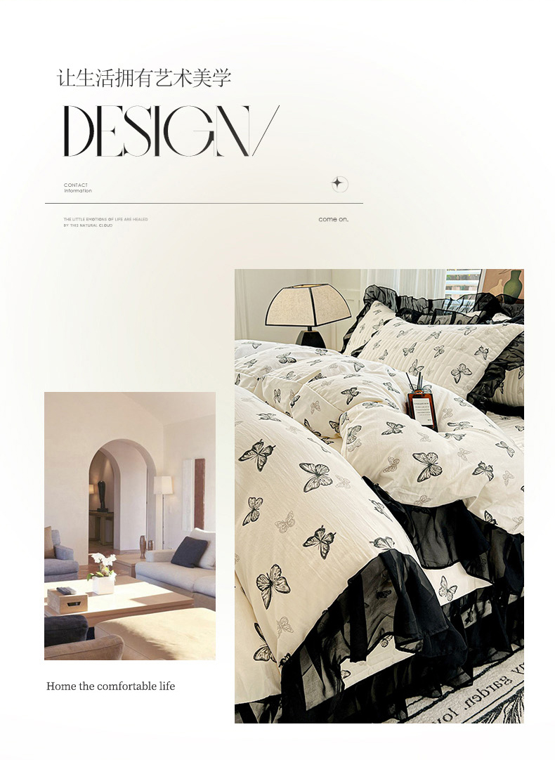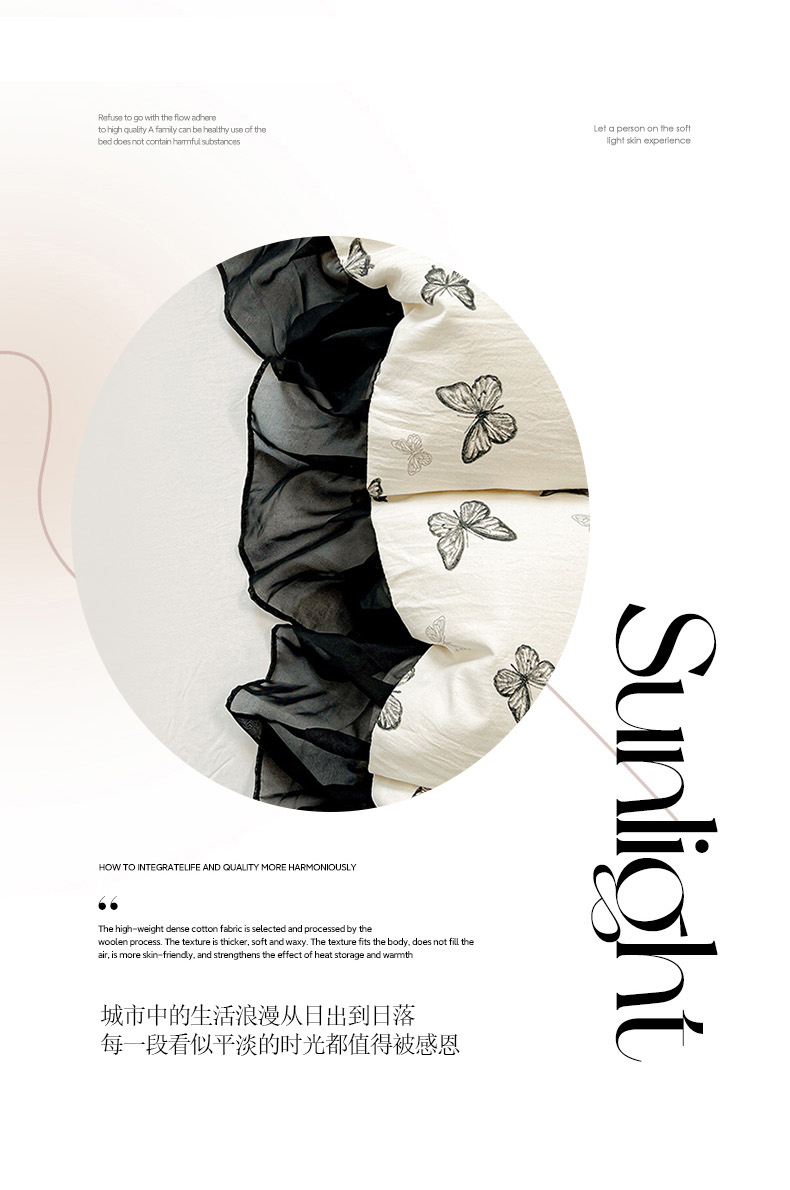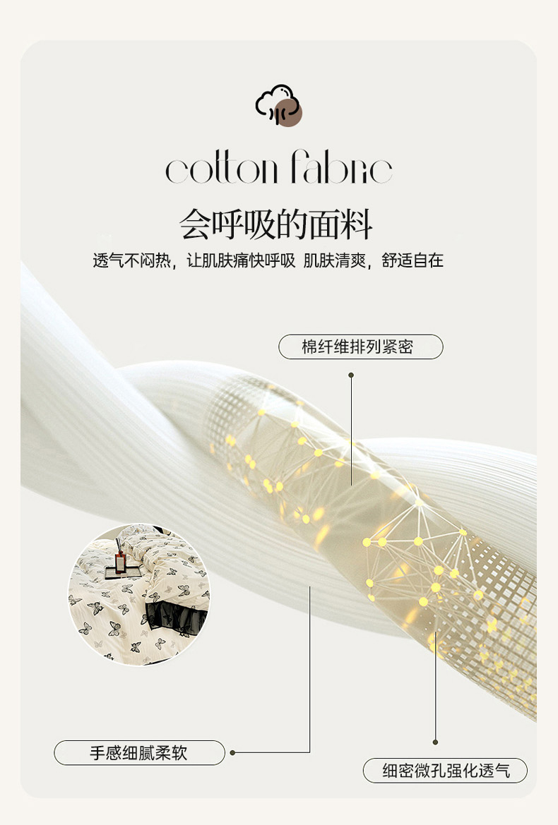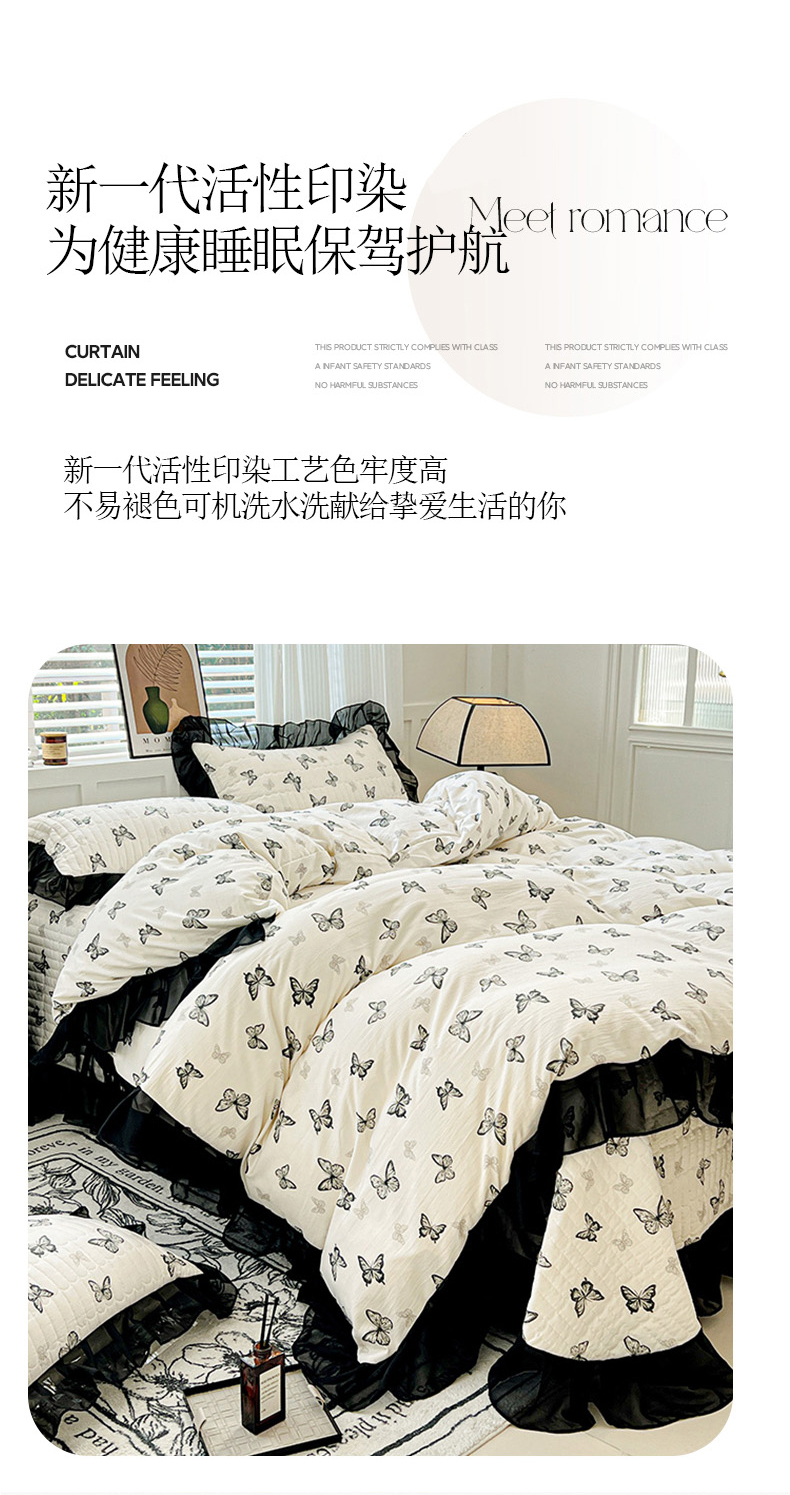 商品名称:(总)艾橙家纺2025新款法式赫本风水洗棉印花雪纺花边四件套