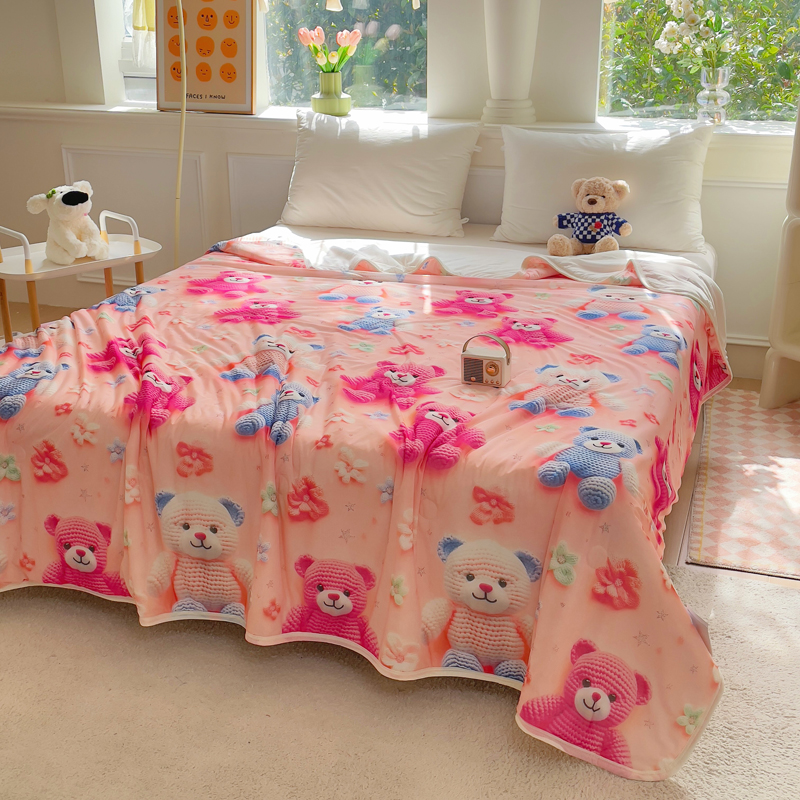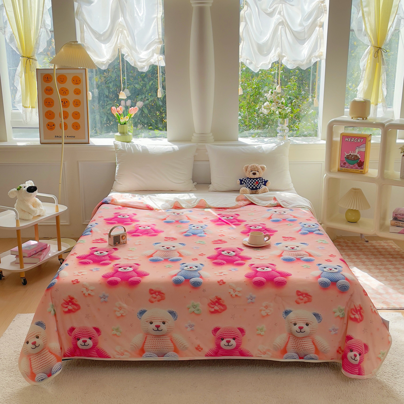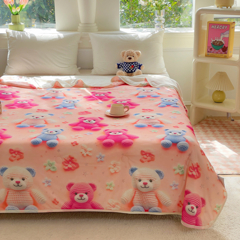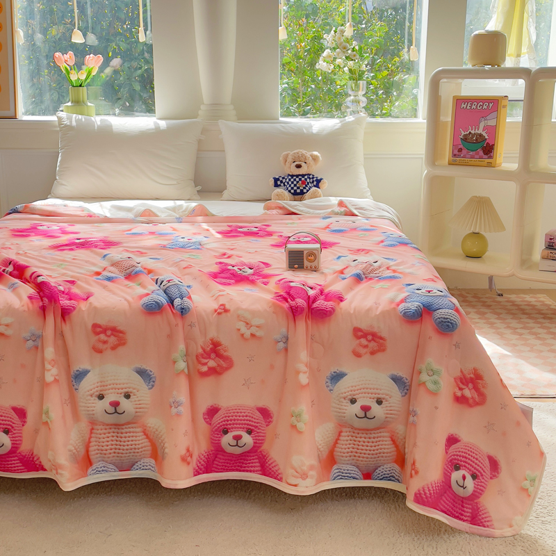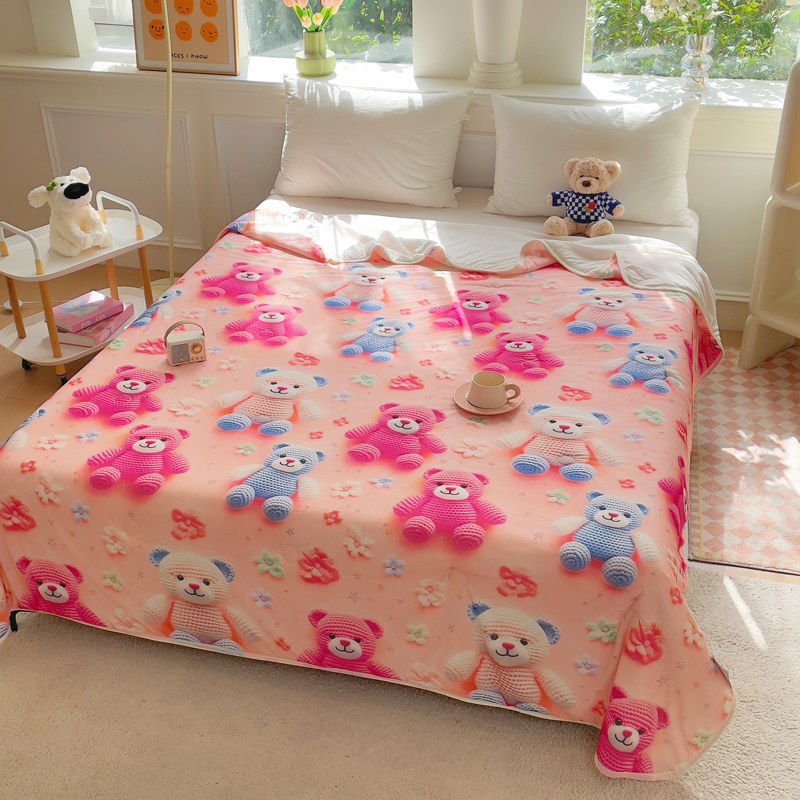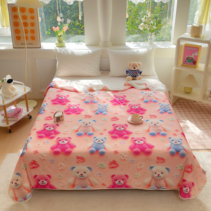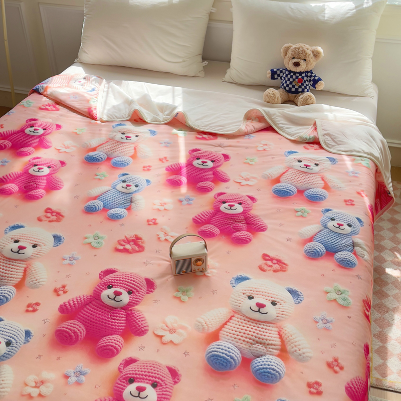 2025新款凉感丝有氨数码印花夏被被子被芯 粉色毛线熊