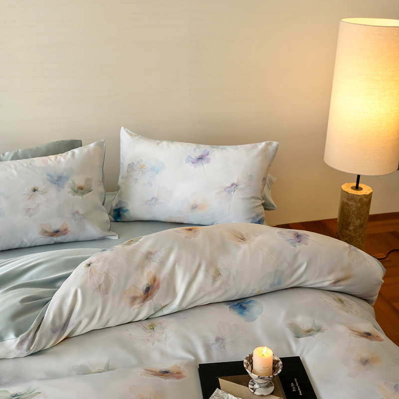 当前位置: 91家纺网 > 商品网购 > 床品套件 > 四件套 > 其它四件套 > 咏绒家纺工厂店 2025新款60S奥地利兰精天丝数码印花暗合简约款系列四件套 夏芷-淡蓝