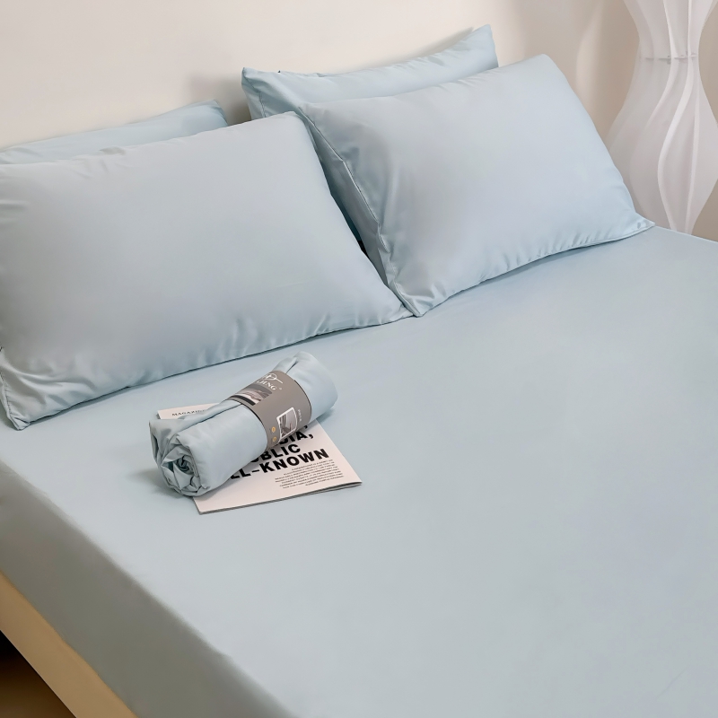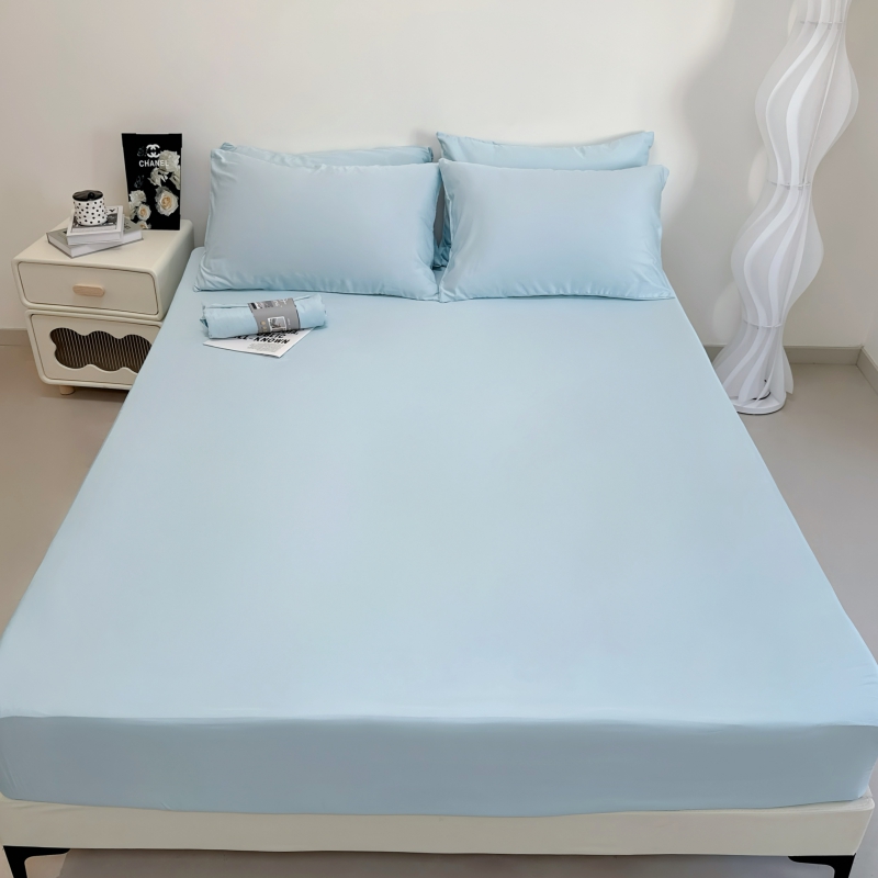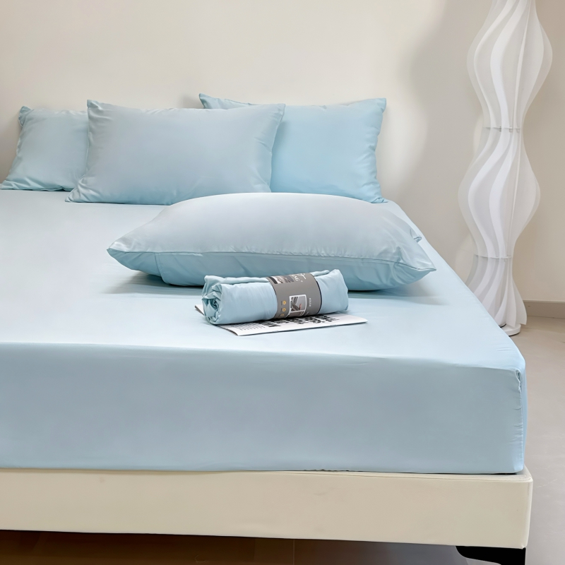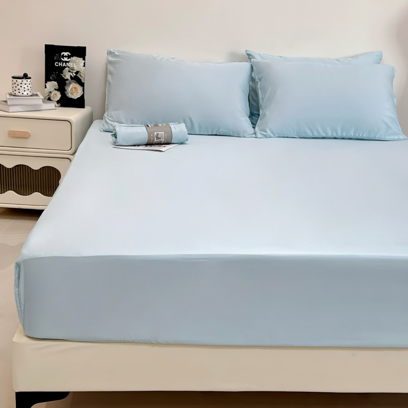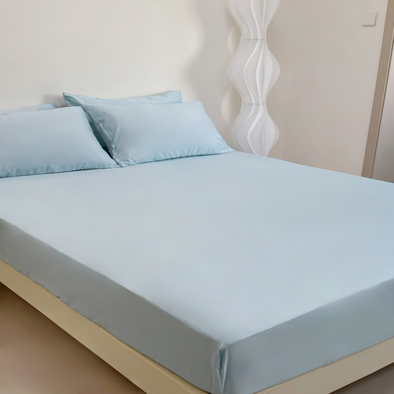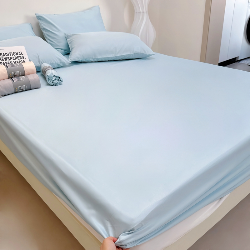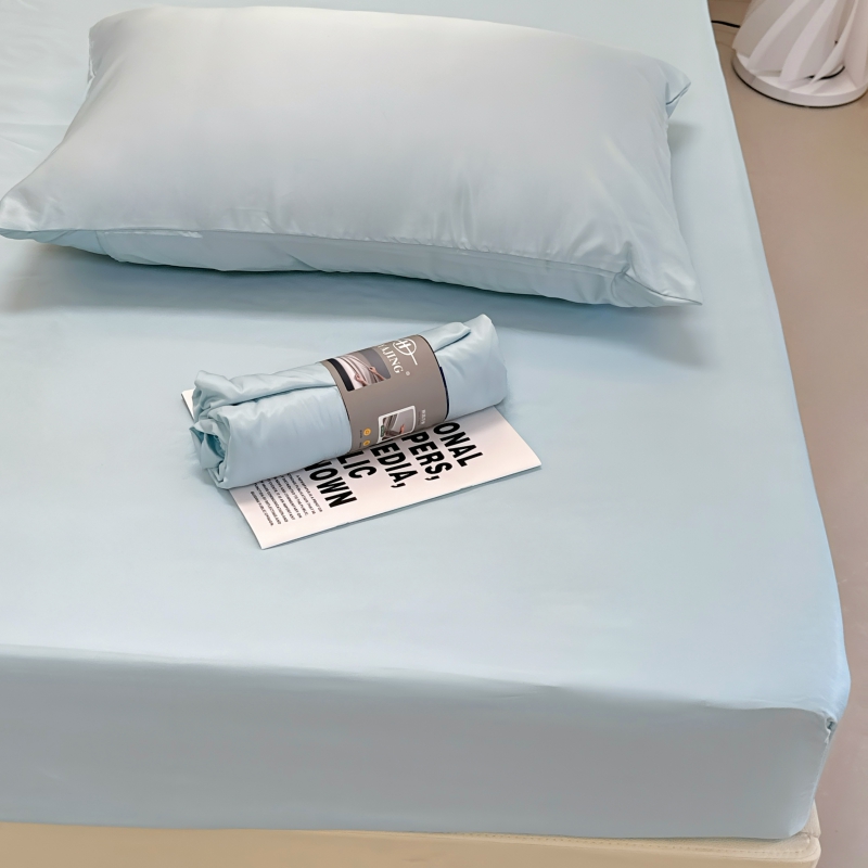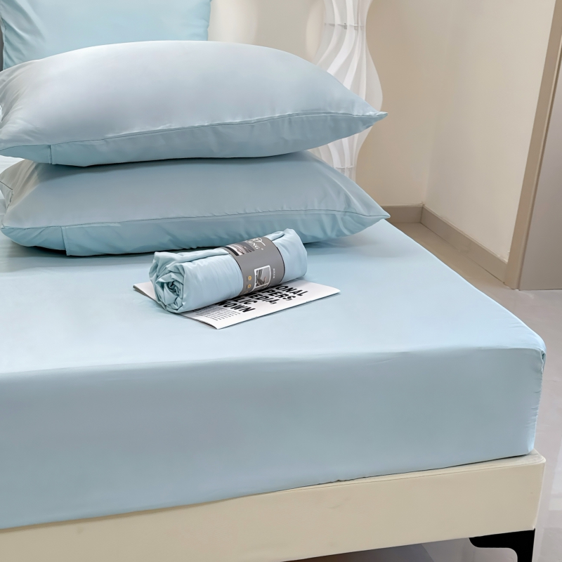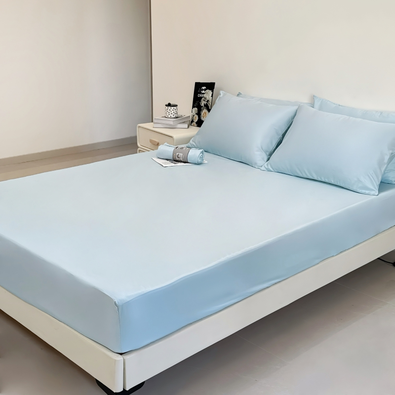 商品名称:兜米家居 2025新款床笠A类水洗真丝床笠三件套 冰蓝