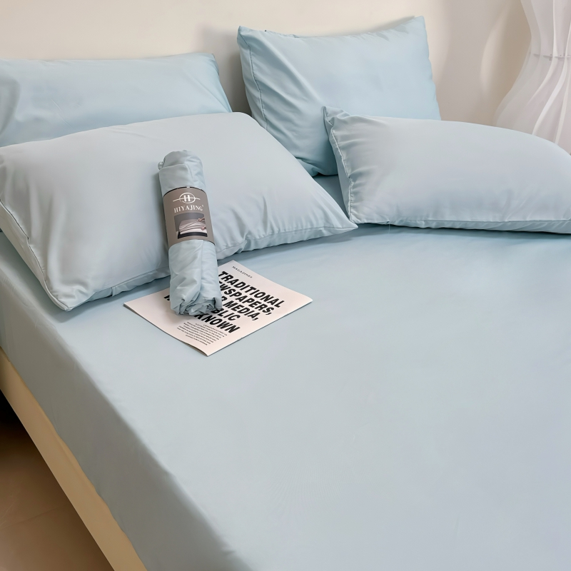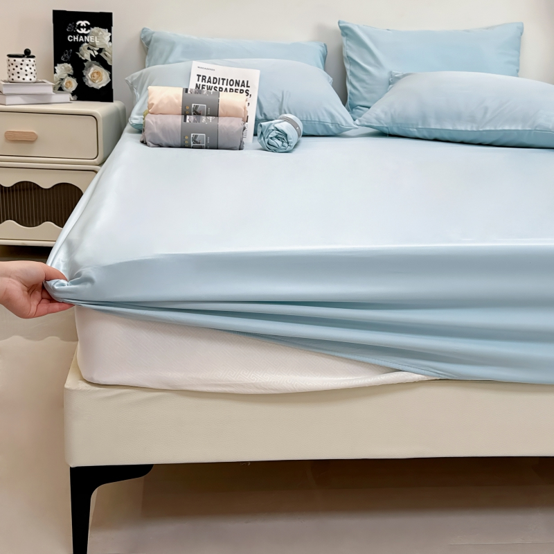 兜米家居 2025新款床笠A类水洗真丝床笠三件套 冰蓝