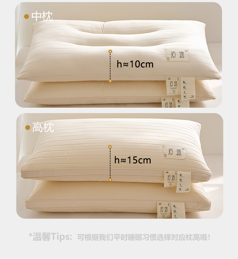 商品名称:乐可 2025新款日式原棉乳胶枕枕头枕芯 日式原棉乳胶枕-低