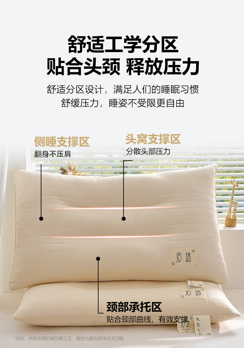 (总)乐可 2025新款分区两用牵引枕全棉双向枕 枕头枕芯,分区两用牵引枕