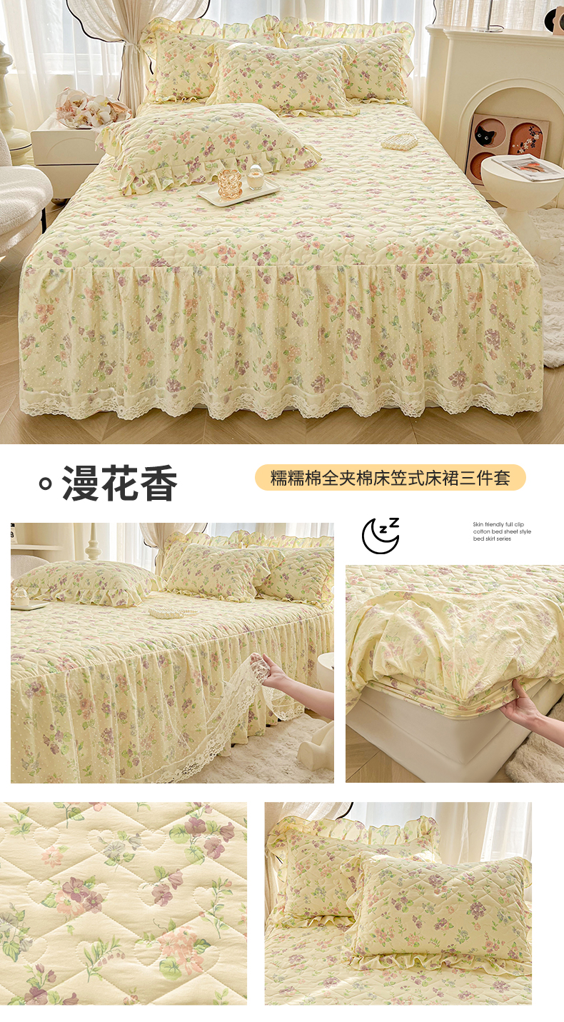 当前位置: 91家纺网 > 商品网购 > 床上用品 > 床裙 > 宜凡家纺 2025新款糯糯棉全夹棉床笠式床裙三件套 漫花香