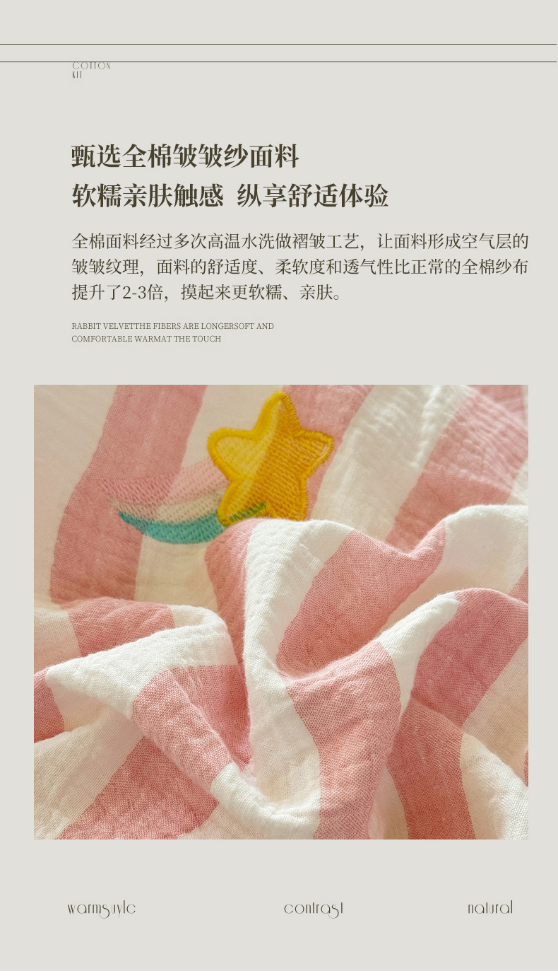 (总)木楌 2025年新款双层皱皱纱刺绣款夏被大豆被,蓓蕾,小飞象,蝴蝶结,领结兔,枇杷叶,三叶草,小樱桃,幸运熊