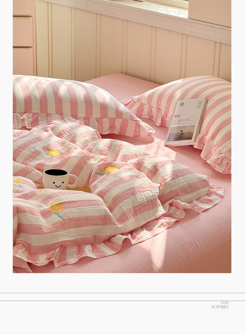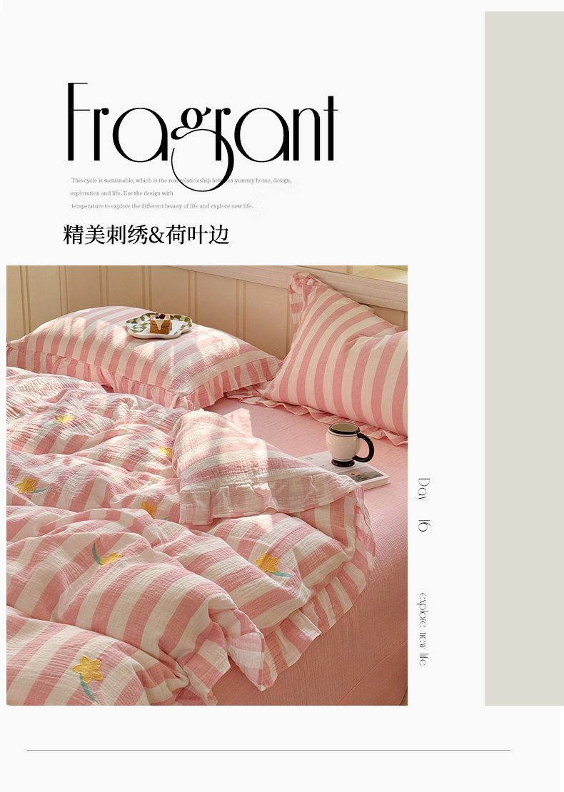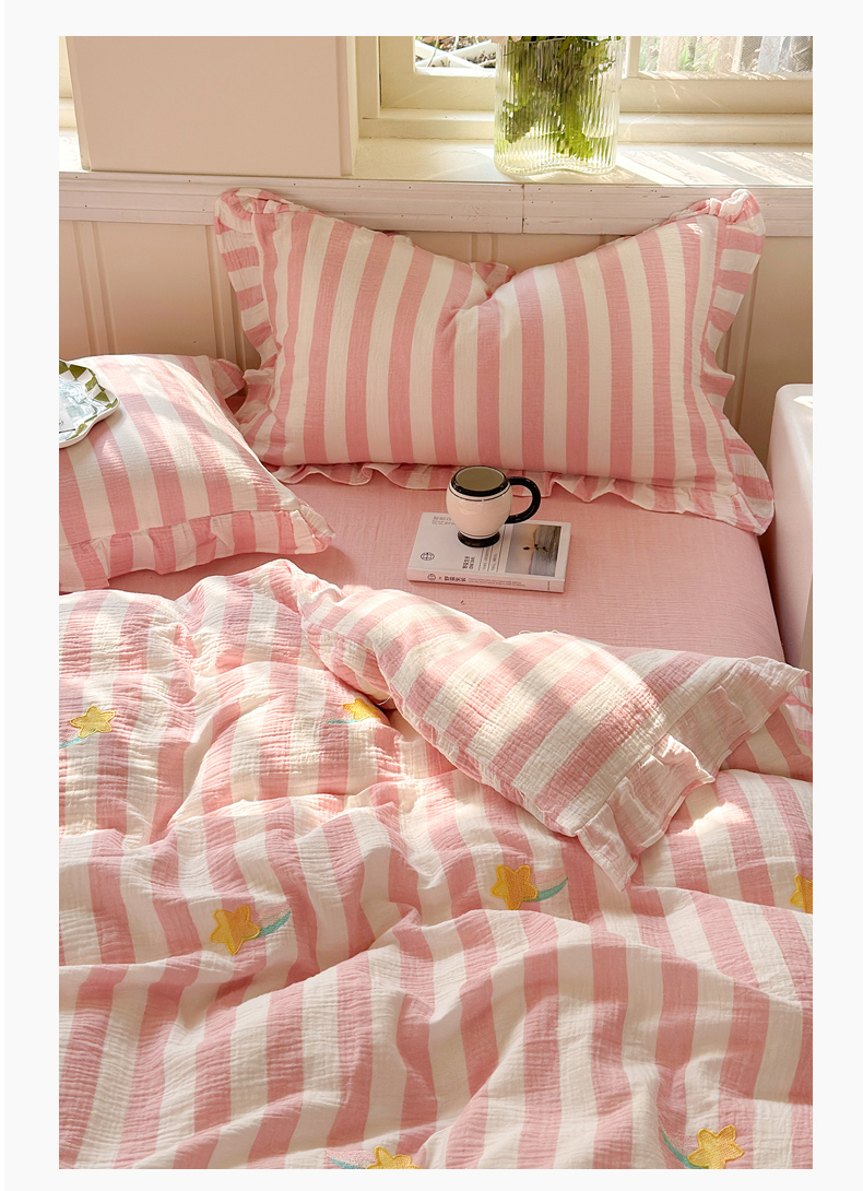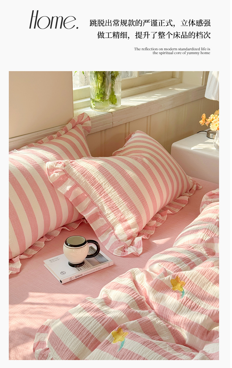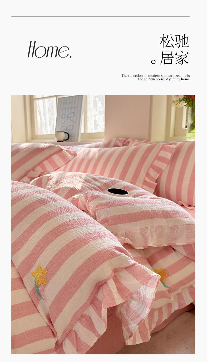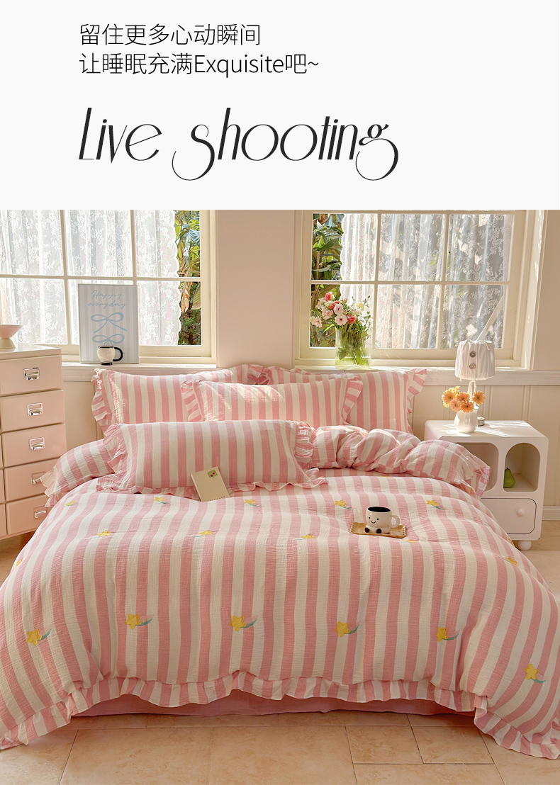 (总)木楌家居2025新款全棉彩点皱皱纱绣花四件套,暗香初醒,星柠微糖,樱草日记,织梦星河