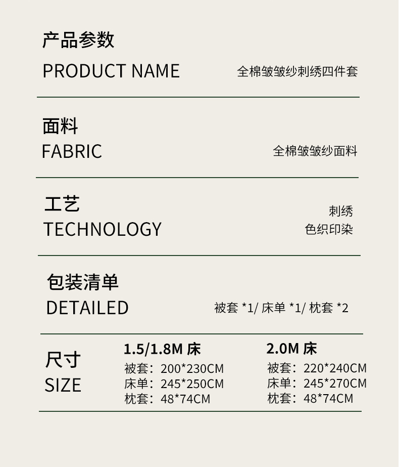 商品名称:2025新品全棉色织皱皱纱刺绣款四件套 流星雨