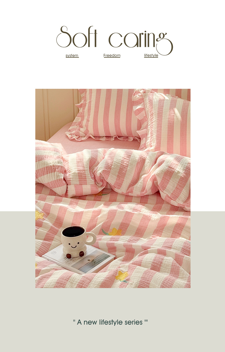 木楌 2025新款全棉A类皱皱纱印花四件套 春泥,春泥