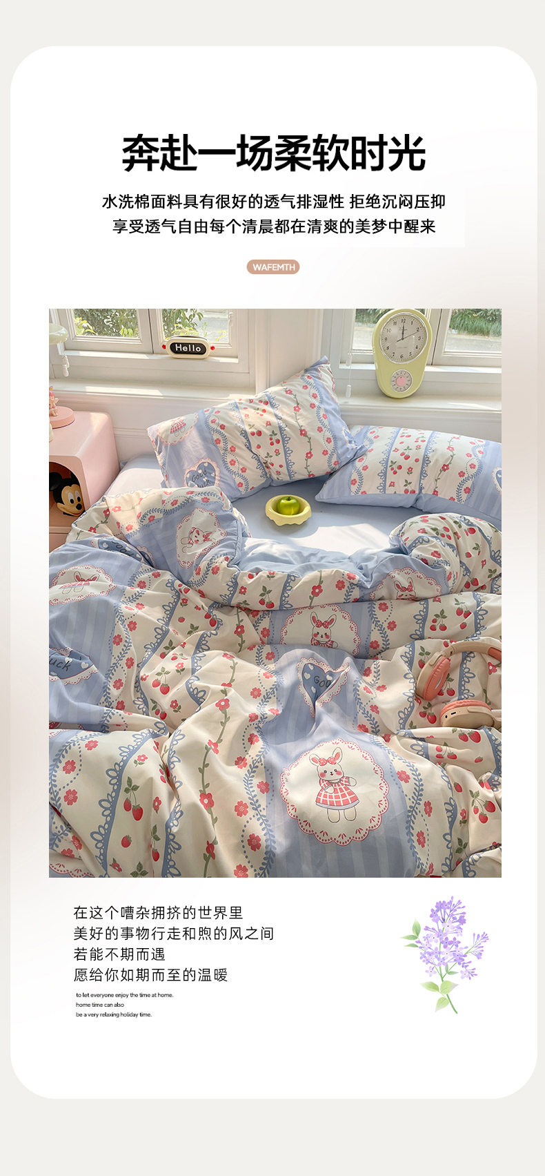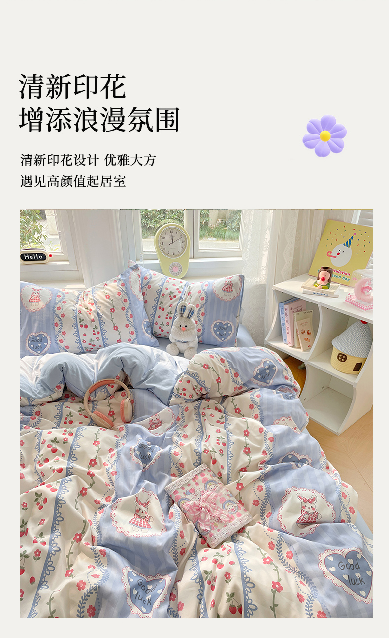 当前位置: 91家纺网 > 商品网购 > 床品套件 > 四件套 > 水洗棉四件套 > 思诺羽床笠 2025春夏新款小清新105克高克重水洗棉印花四件套 浪漫花园