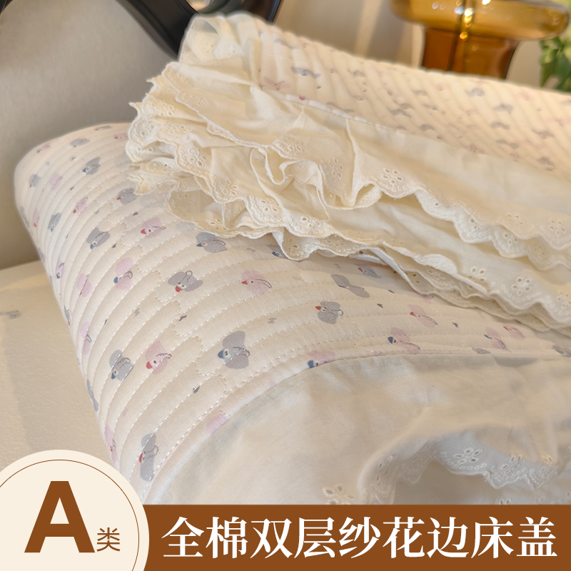 商品名称:2025新款A类全棉双层纱花边床盖( 风格一) 小飞象