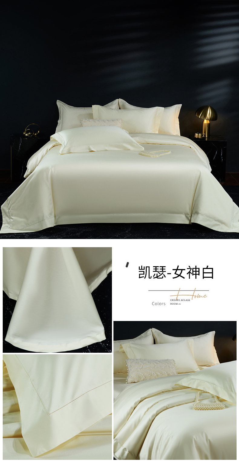 商品名称:淼铭家纺 2025新款双股长绒棉四件套-凯瑟系列 凯瑟-女神白