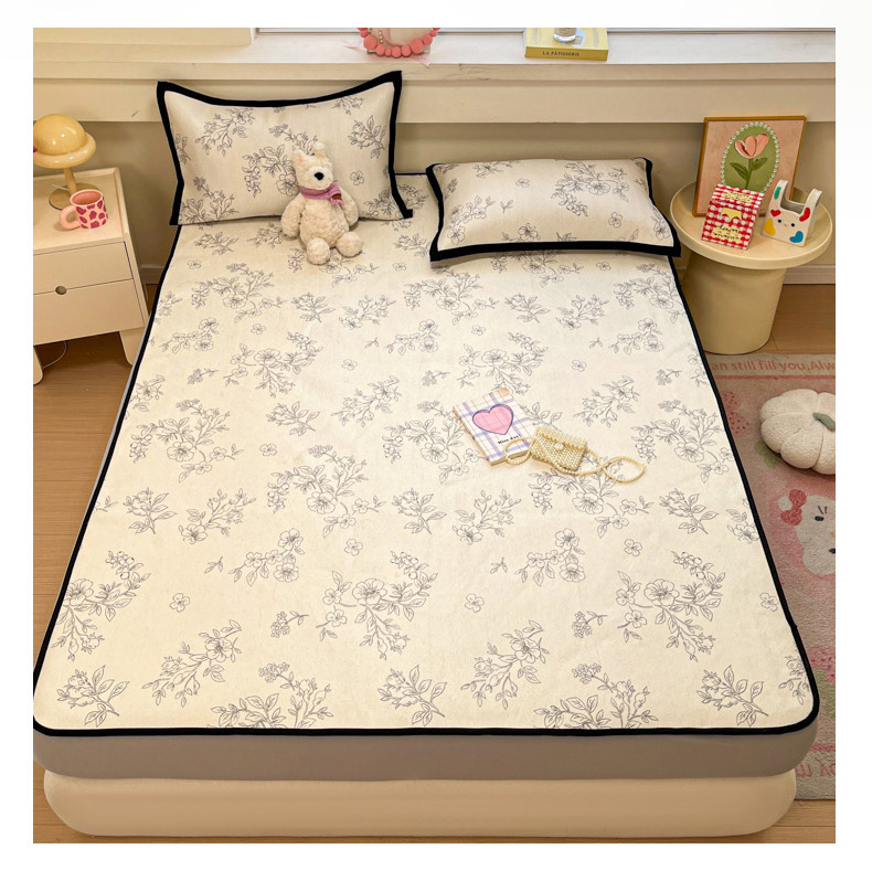 • 91家纺网 家纺一手货源 找家纺 慕澄家纺 2025新款小清新印花真冰藤系列凉席床笠款 床笠-圈圈