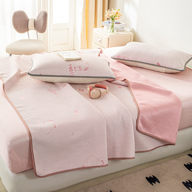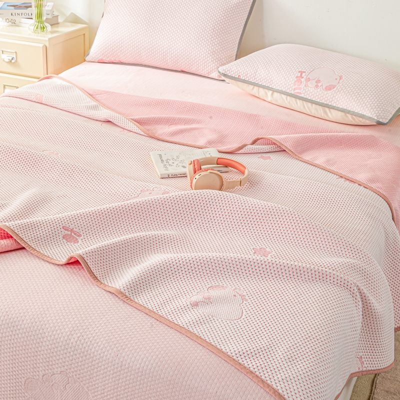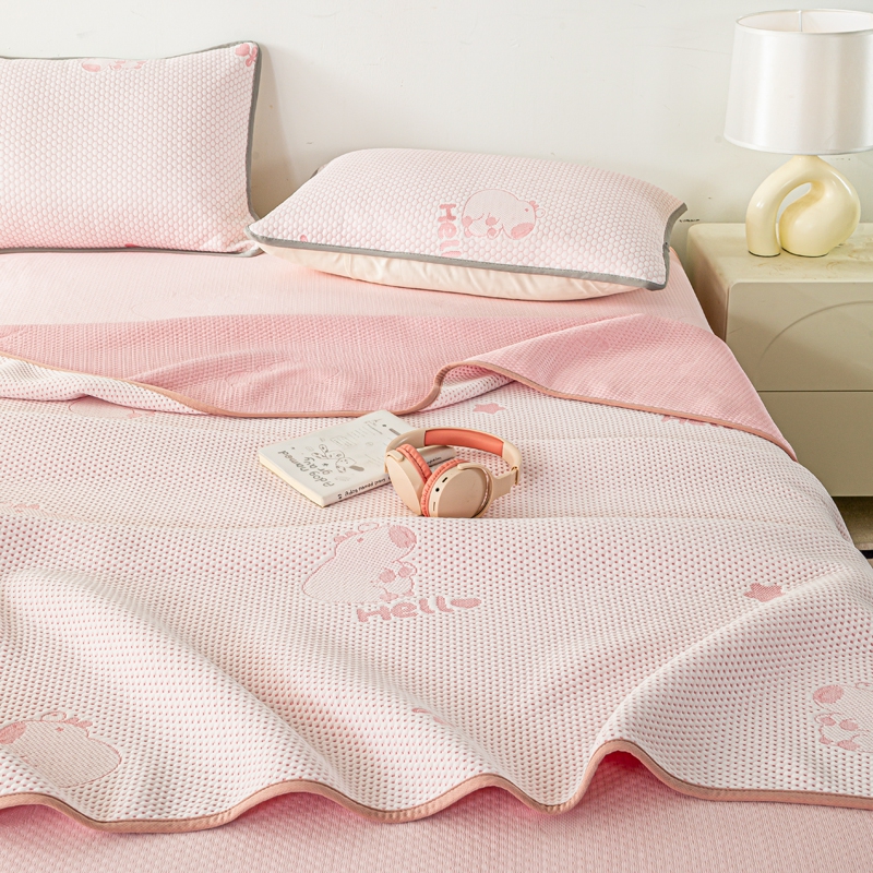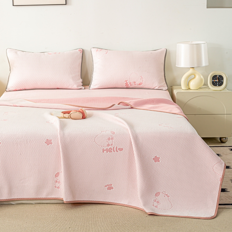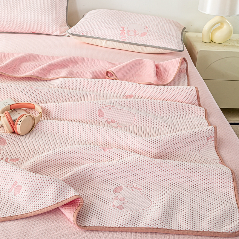 商品名称:梦初语 2025新款A类华夫格冰豆豆夏被子针织提花凉感夏凉被单双人空调被可机水洗 卡皮巴拉熊-粉
