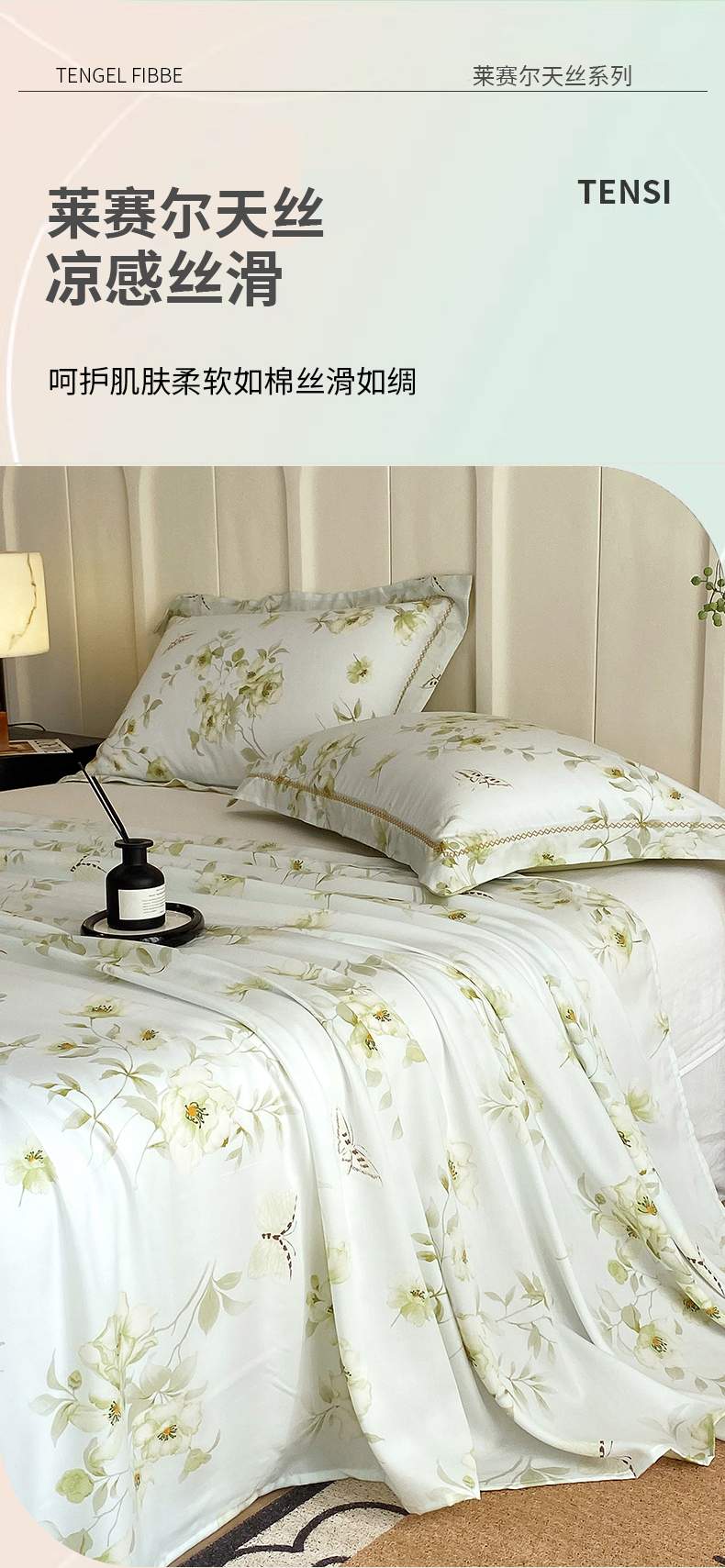 商品名称:(总)春皖家纺 2025春夏新款A类莱赛尔纤维印花A版单床单 床单单件-风格二