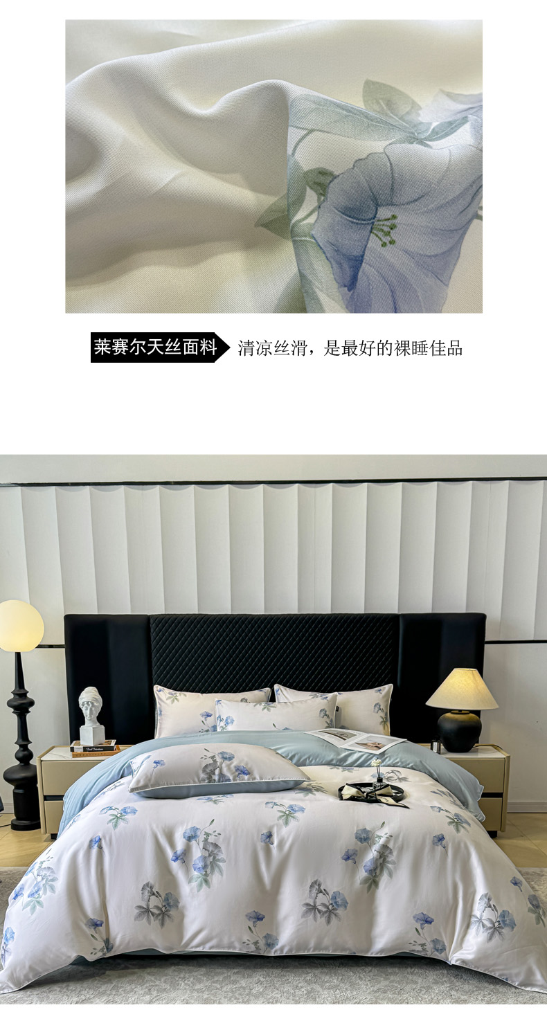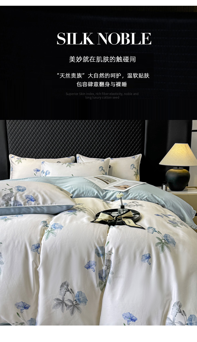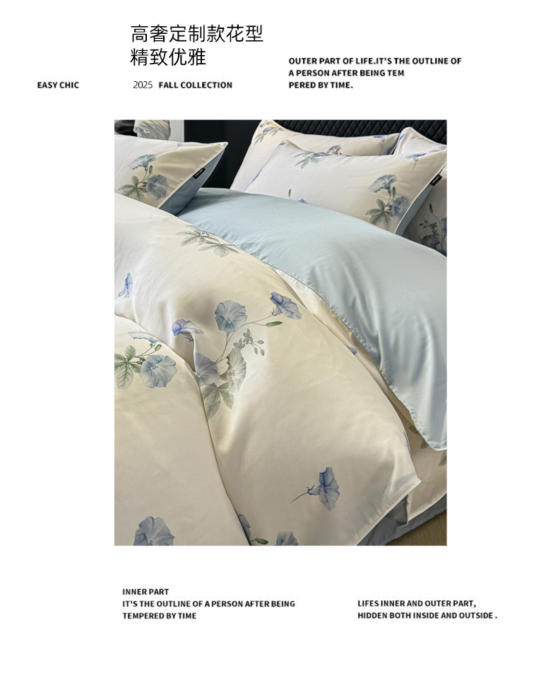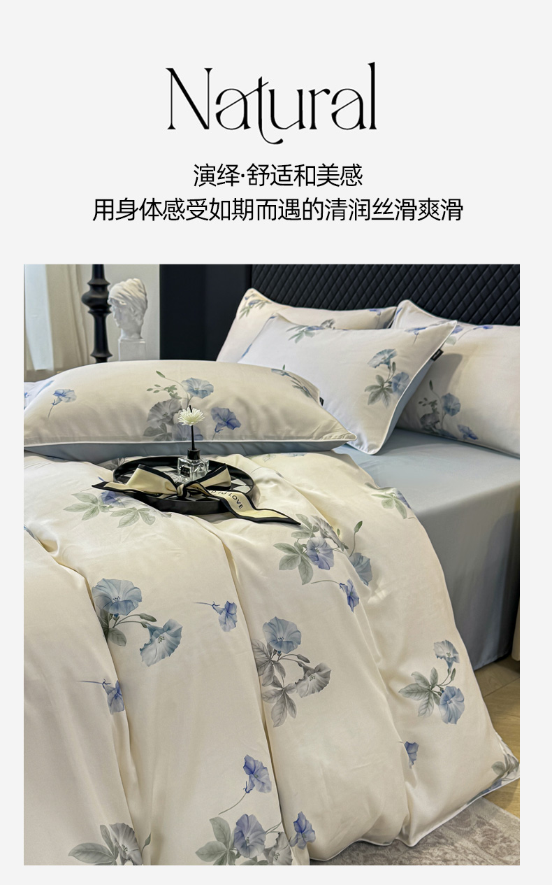 洺兰家居 2025春夏新款100支莱赛尔天丝贡缎数码印花麻绳款四件套高端礼盒 流年兰