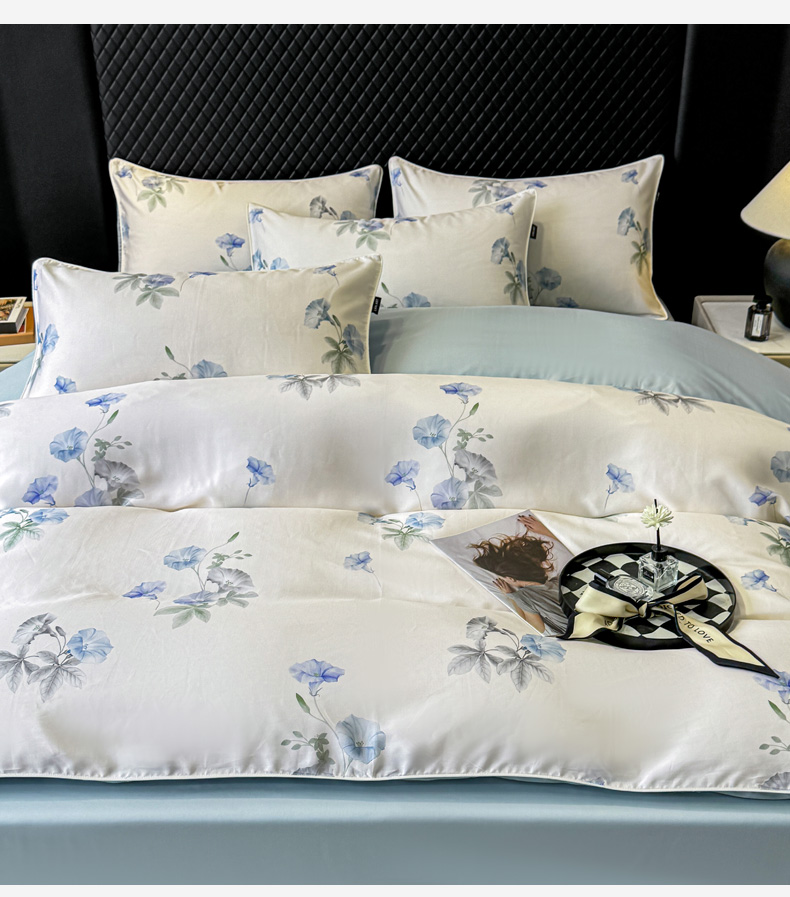 (总)洺兰家居 2026年新疆长绒棉100支天丝棉高端工艺款床单床笠四件套床上用品,淡若清香,陌上花开,羽墨