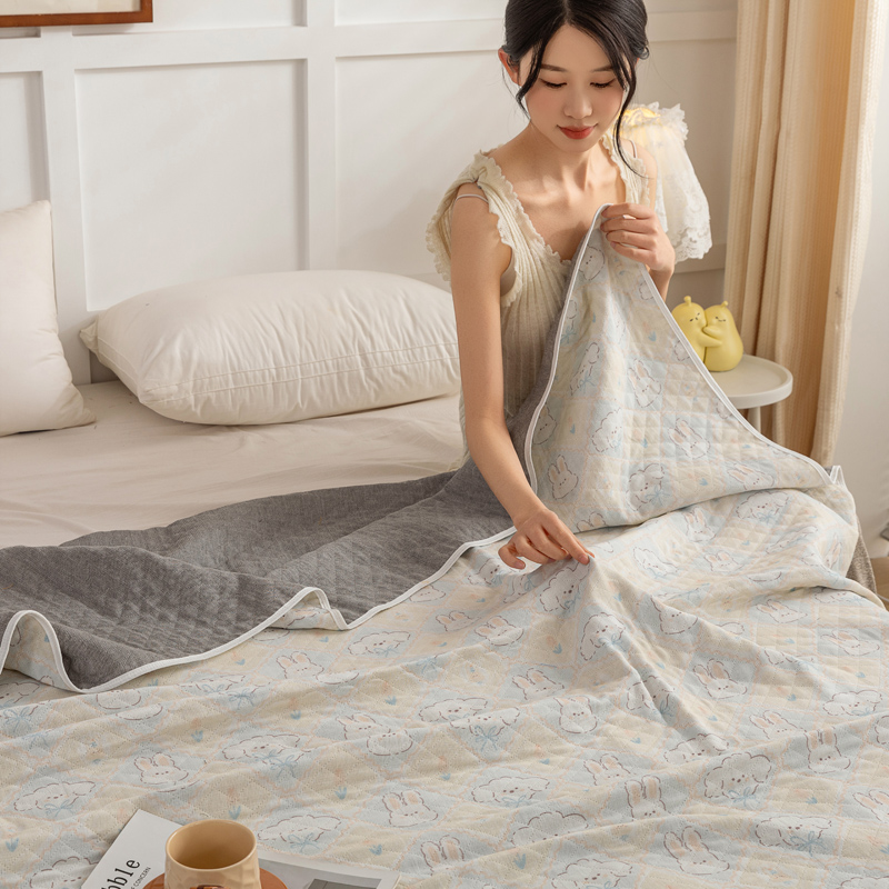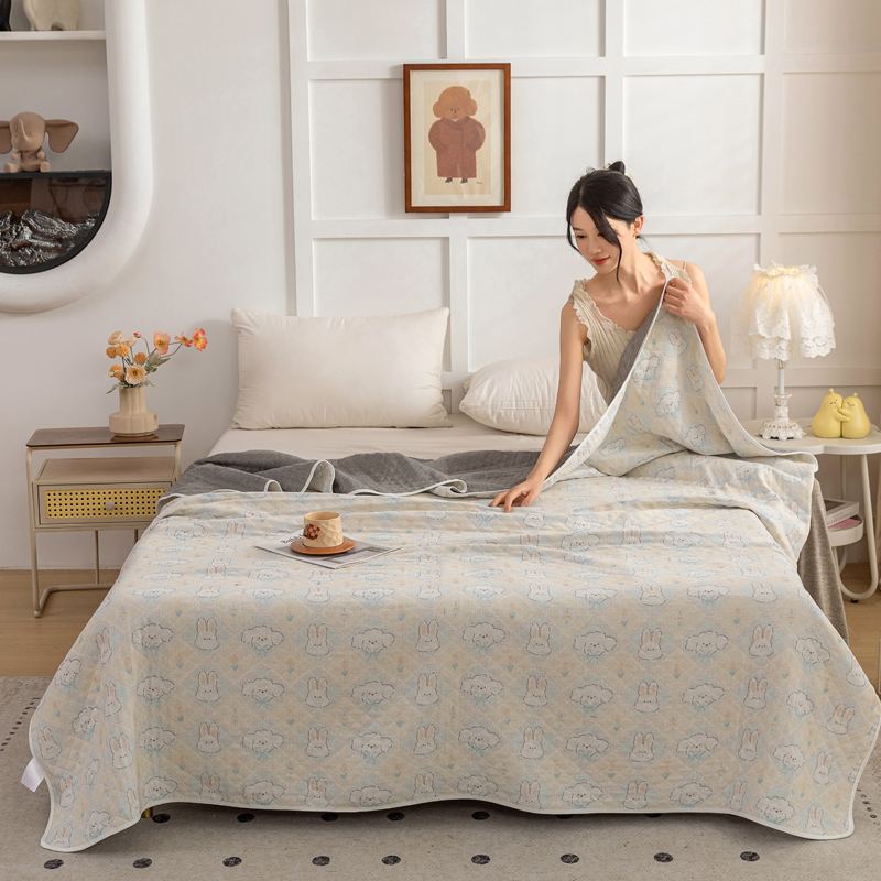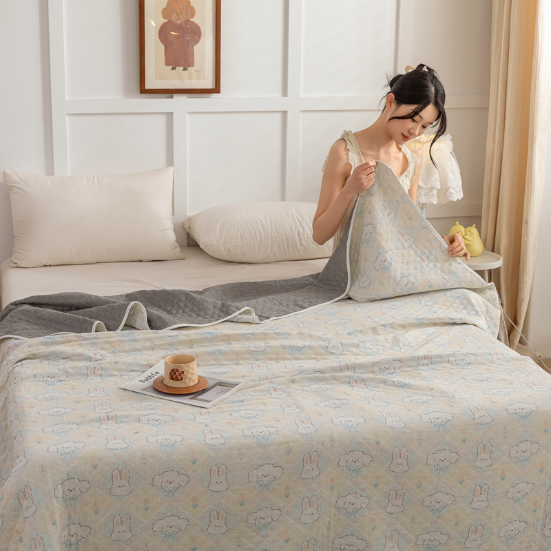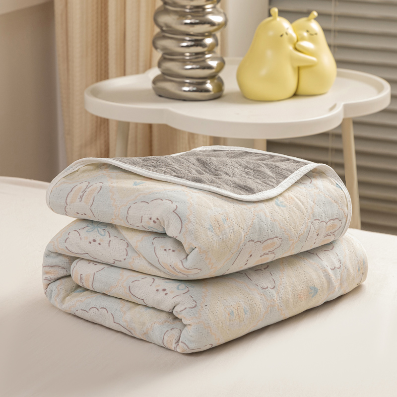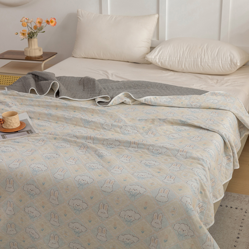乐家毛巾被(工厂自产自销) 2025新款A类全棉六层纱印花毛巾被 兔子小狗