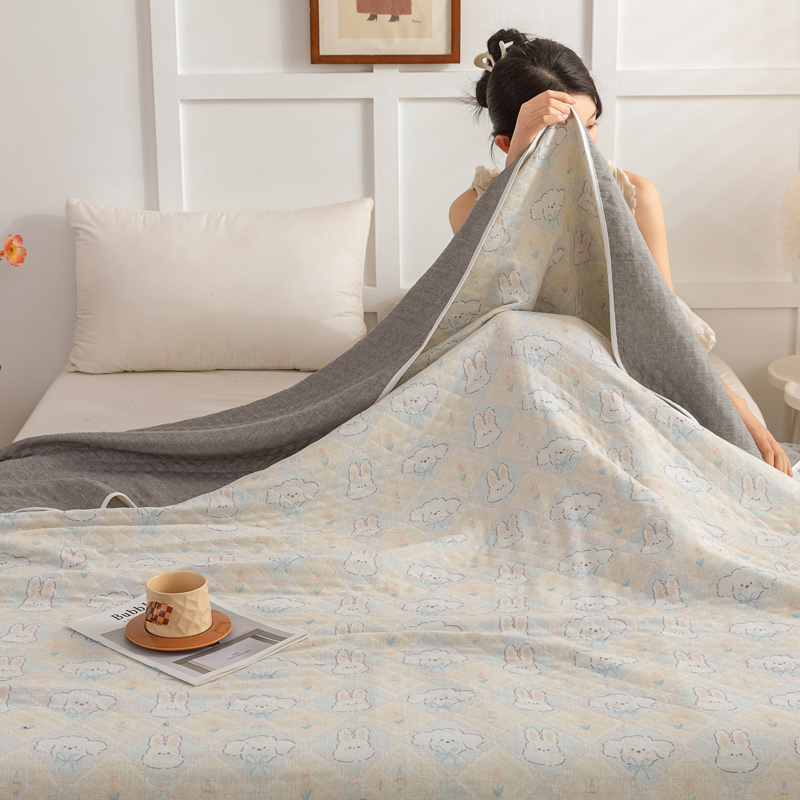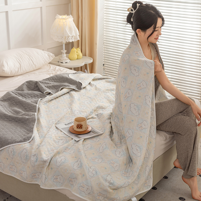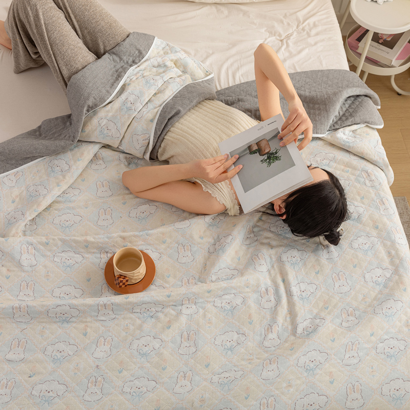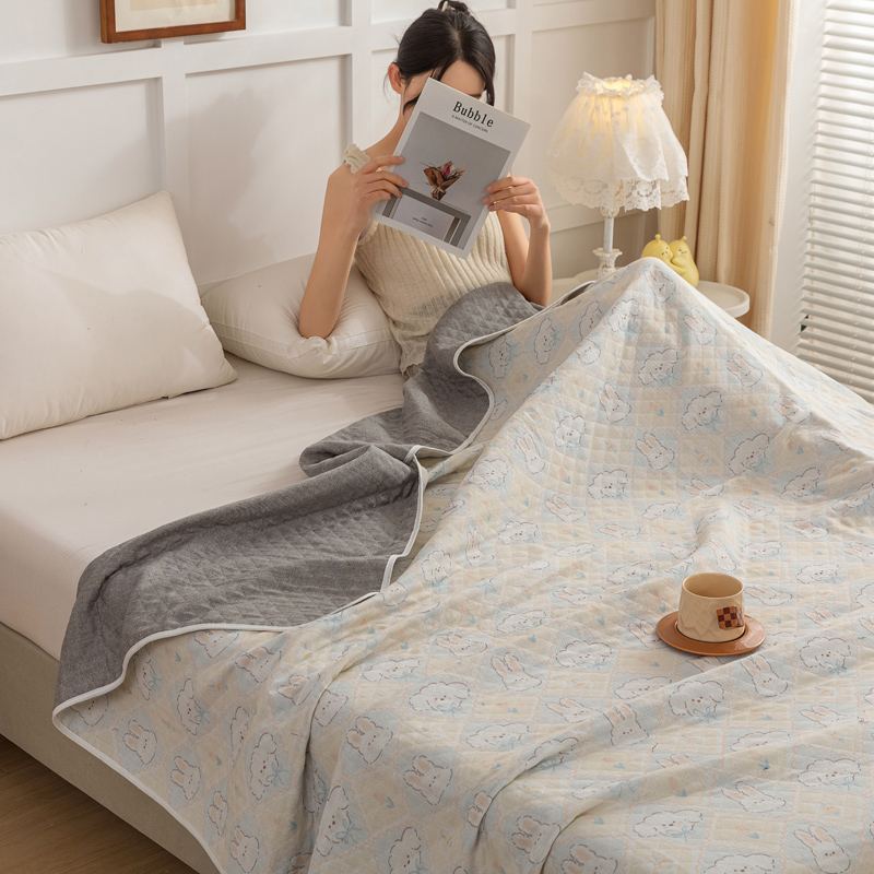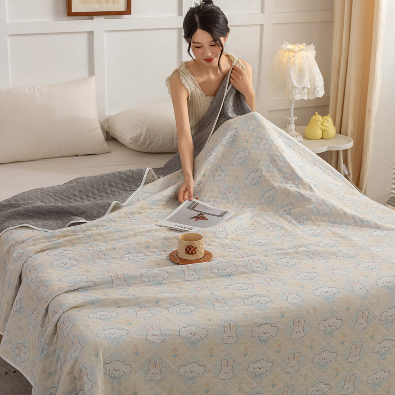 乐家毛巾被(工厂自产自销) 2025新款A类全棉六层纱印花毛巾被 兔子小狗