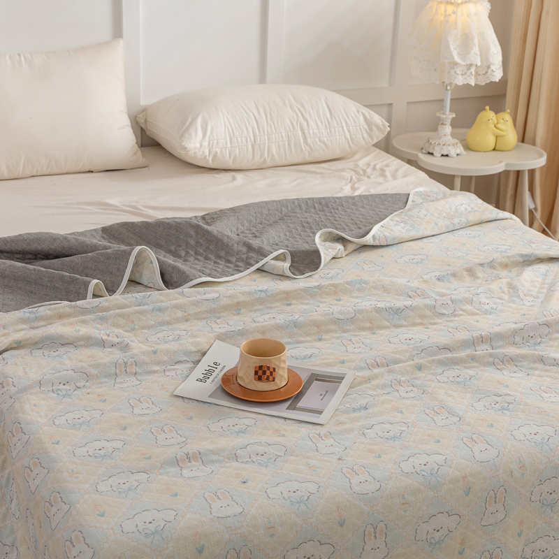 商品名称:乐家毛巾被(工厂自产自销) 2025新款A类全棉六层纱印花毛巾被 兔子小狗
