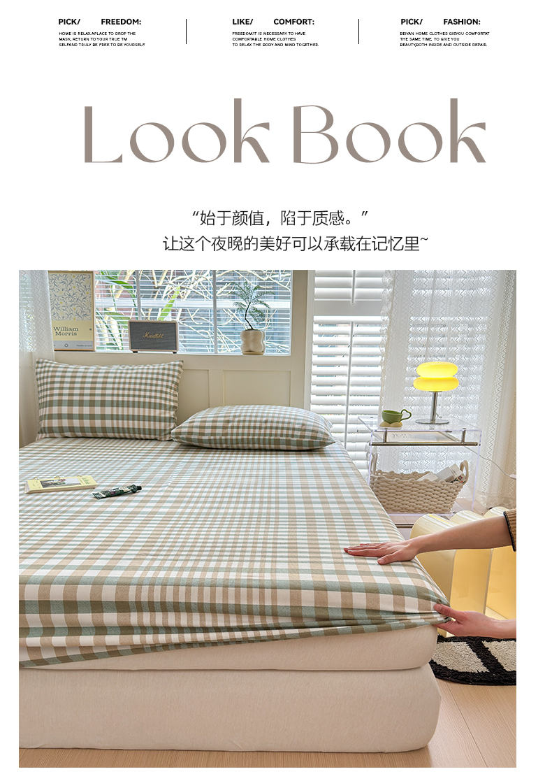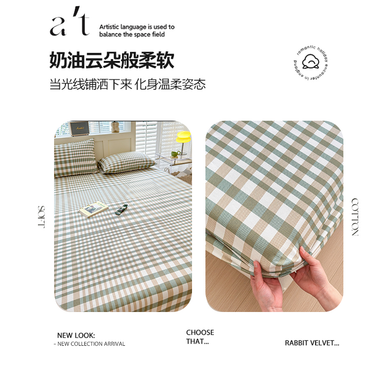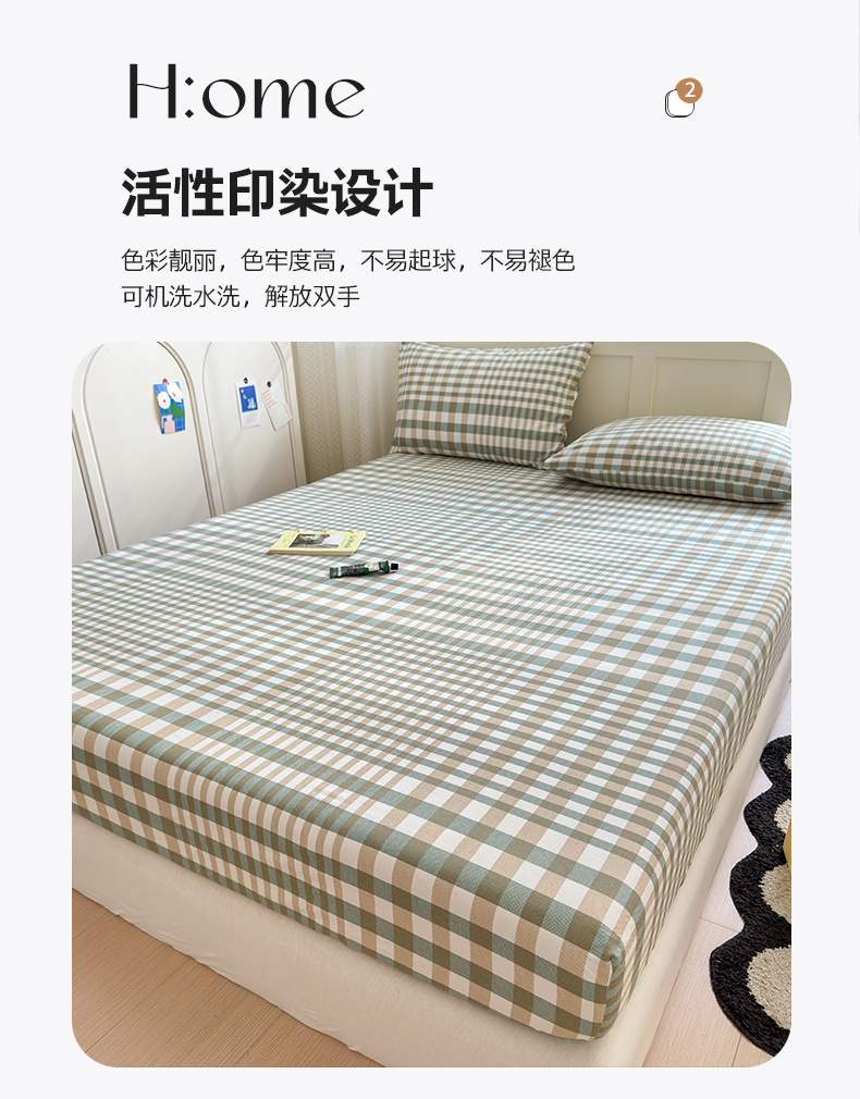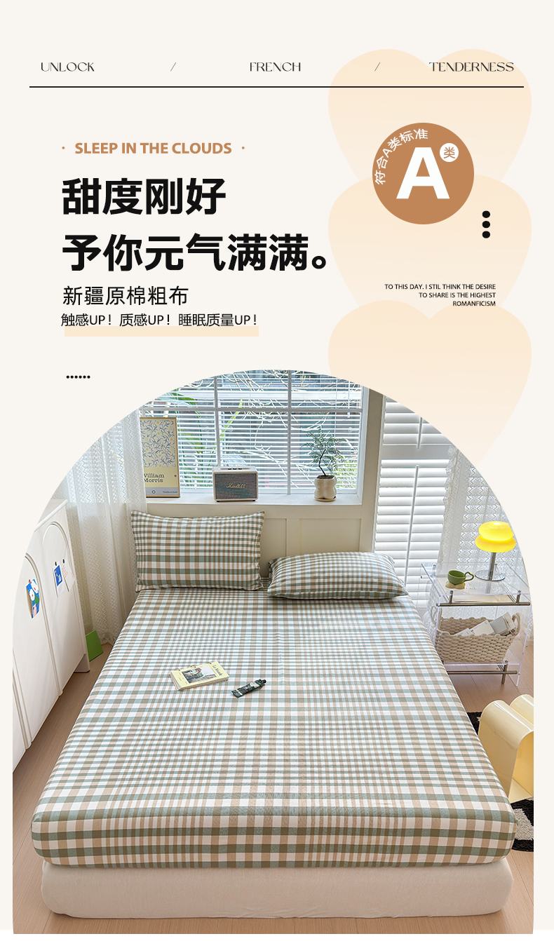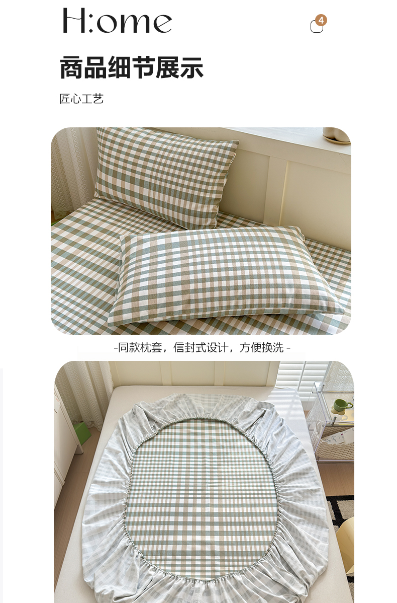 • 91家纺网 家纺一手货源 找家纺 2025新款老粗布三件套-床笠款 绿格