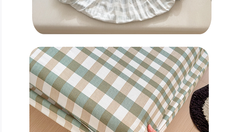2025新款老粗布三件套-床笠款 绿格