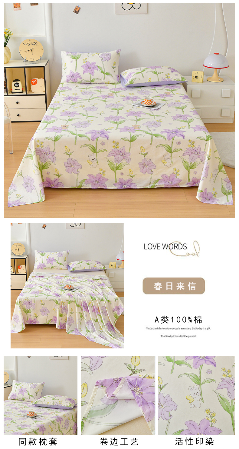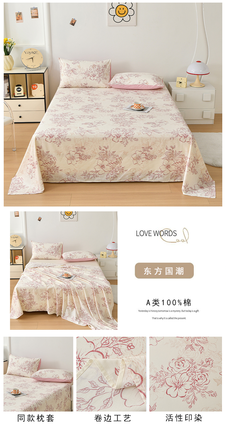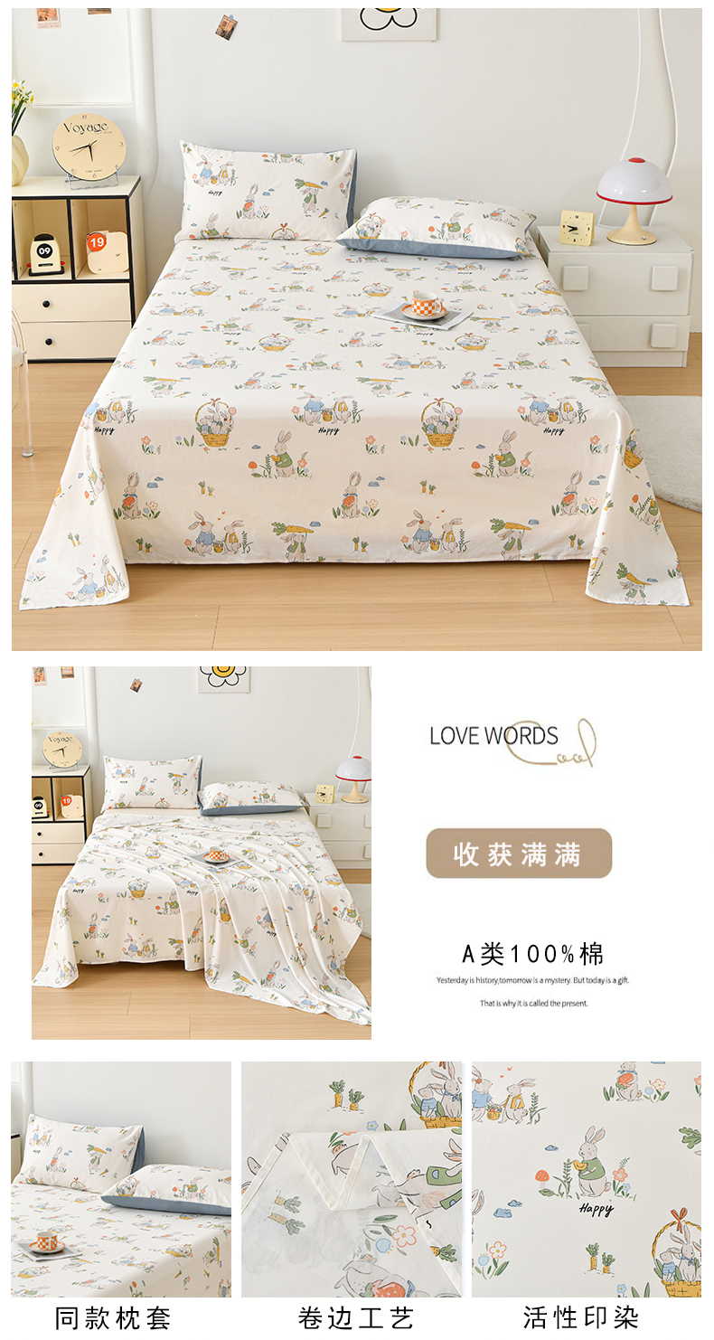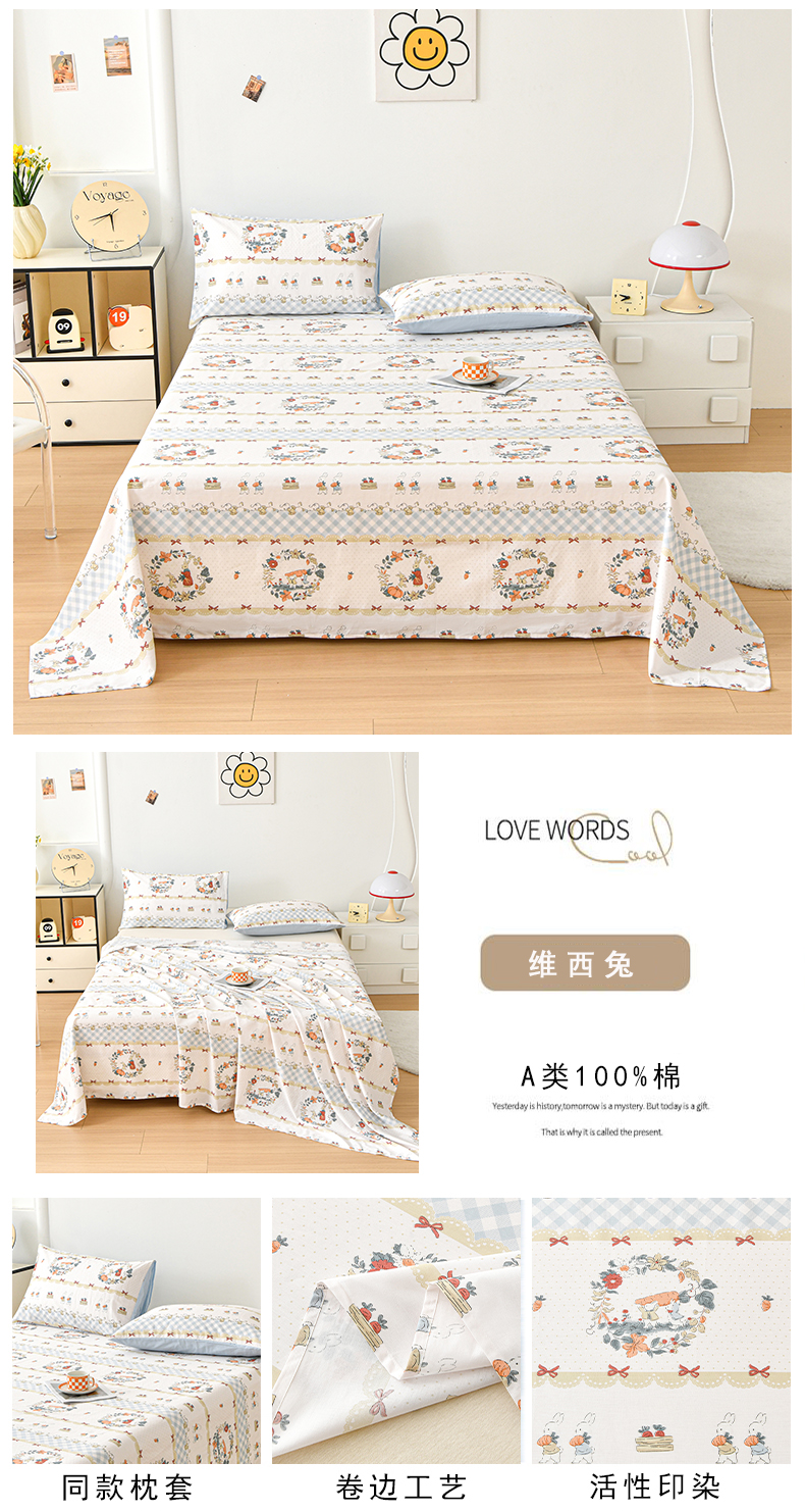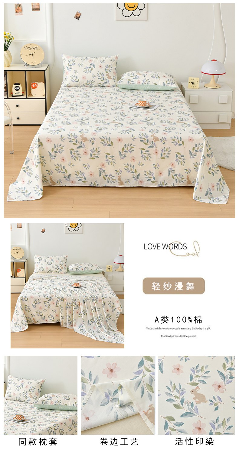宇彬家纺 2025直播新款13372全棉纯棉印花双人单床单枕套三件套喷气小清新简约学生被单 争奇斗艳