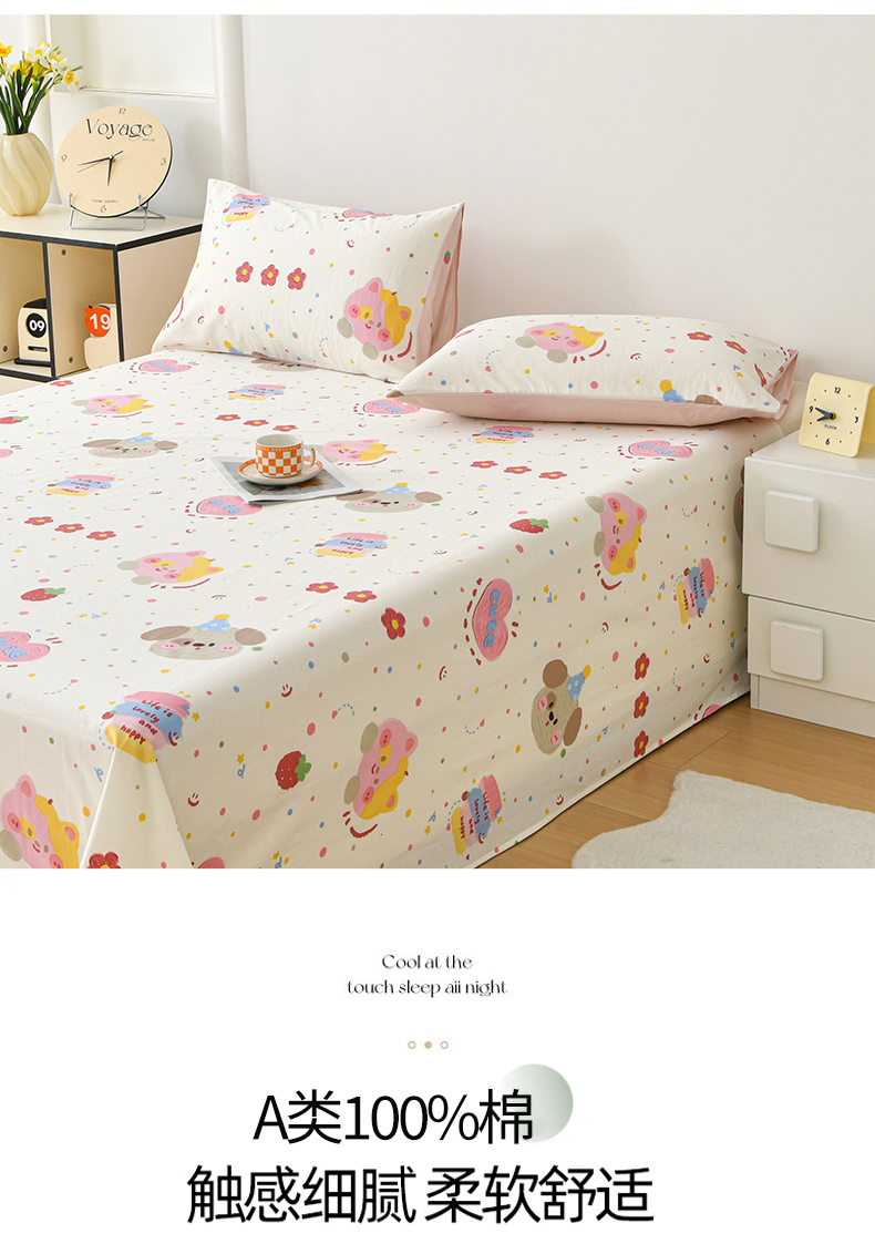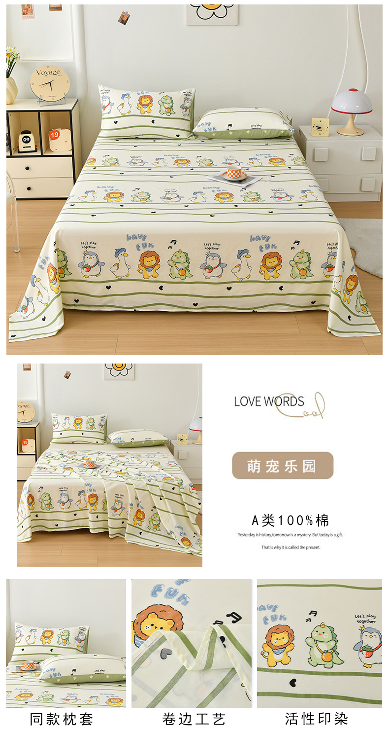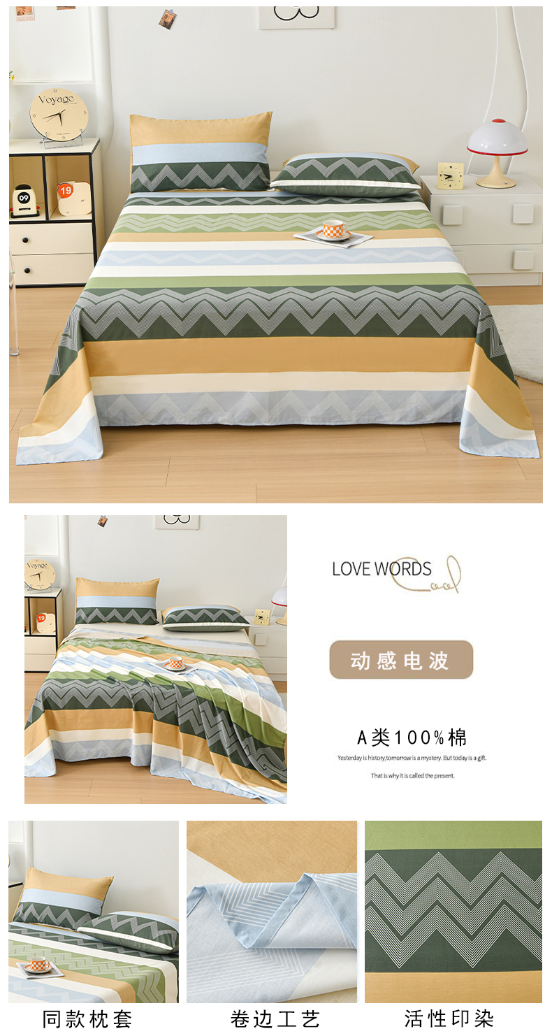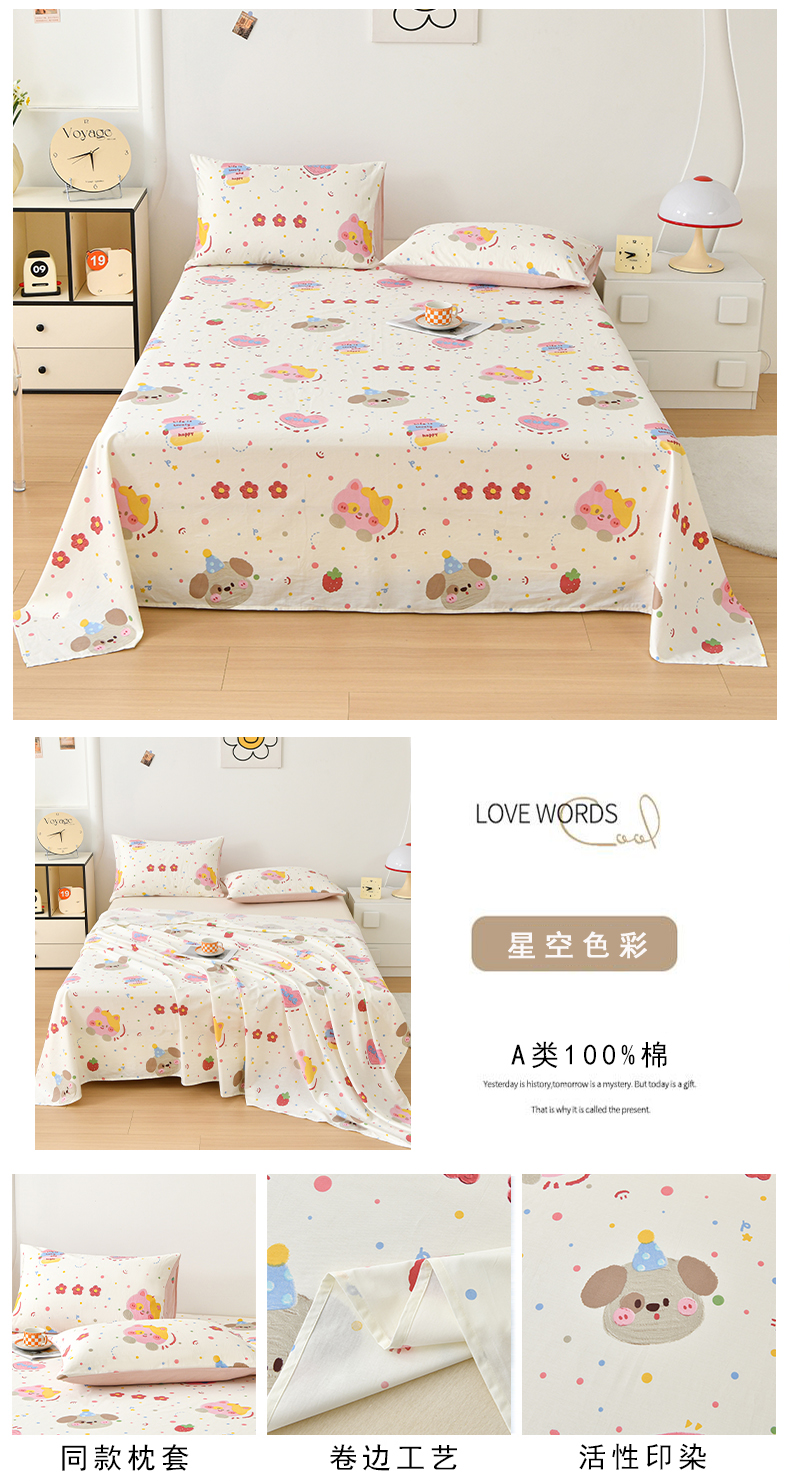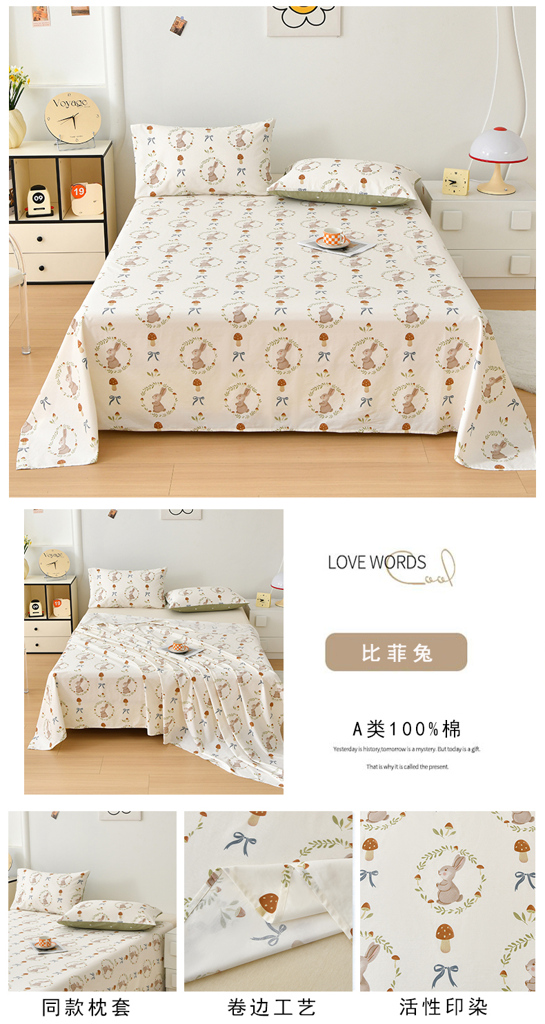 宇彬家纺 2025直播新款13372全棉纯棉印花双人单床单枕套三件套喷气小清新简约学生被单 争奇斗艳