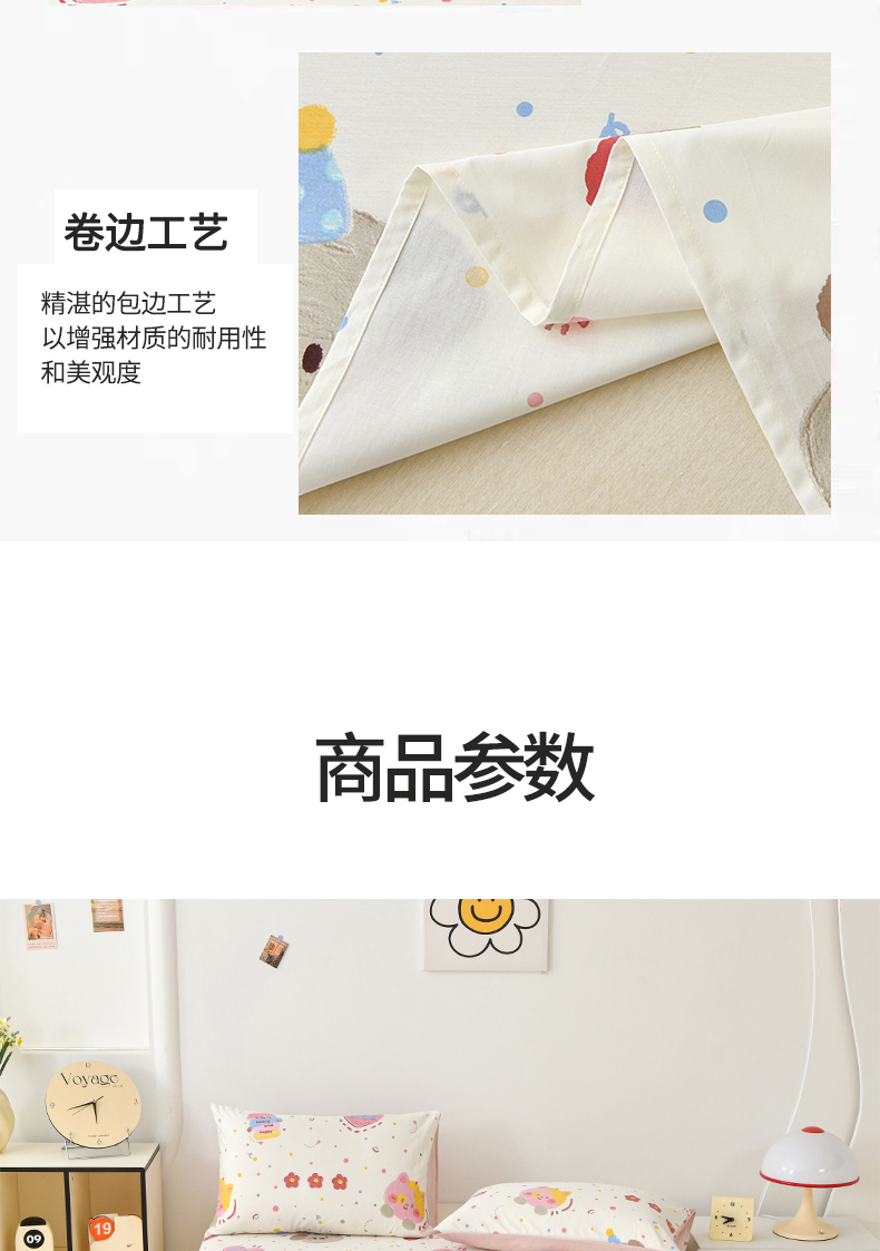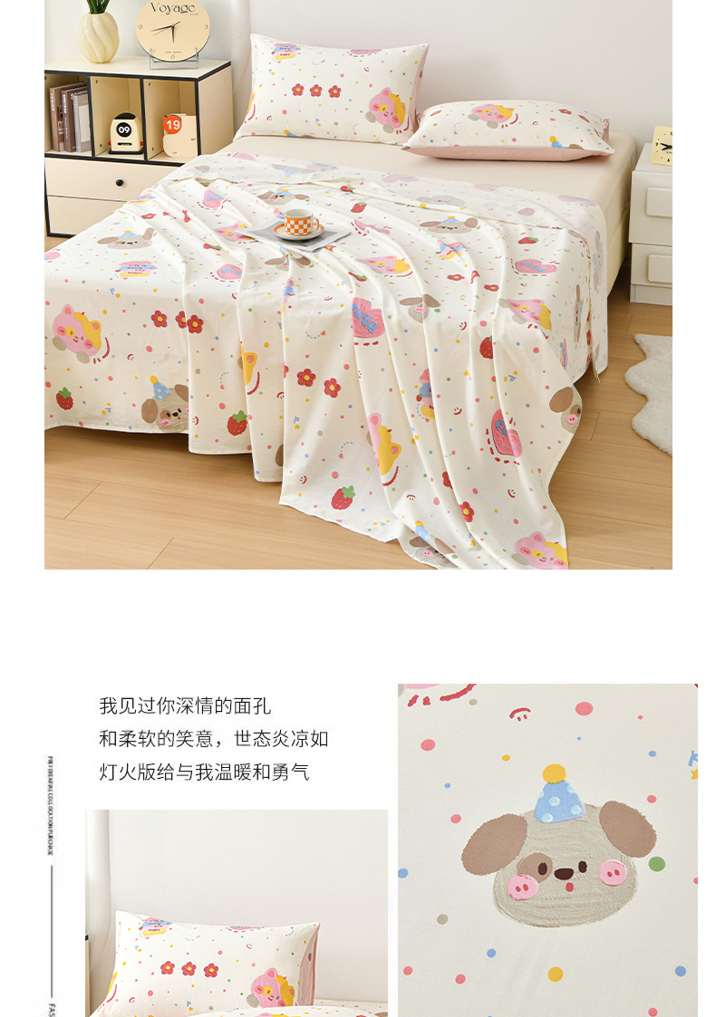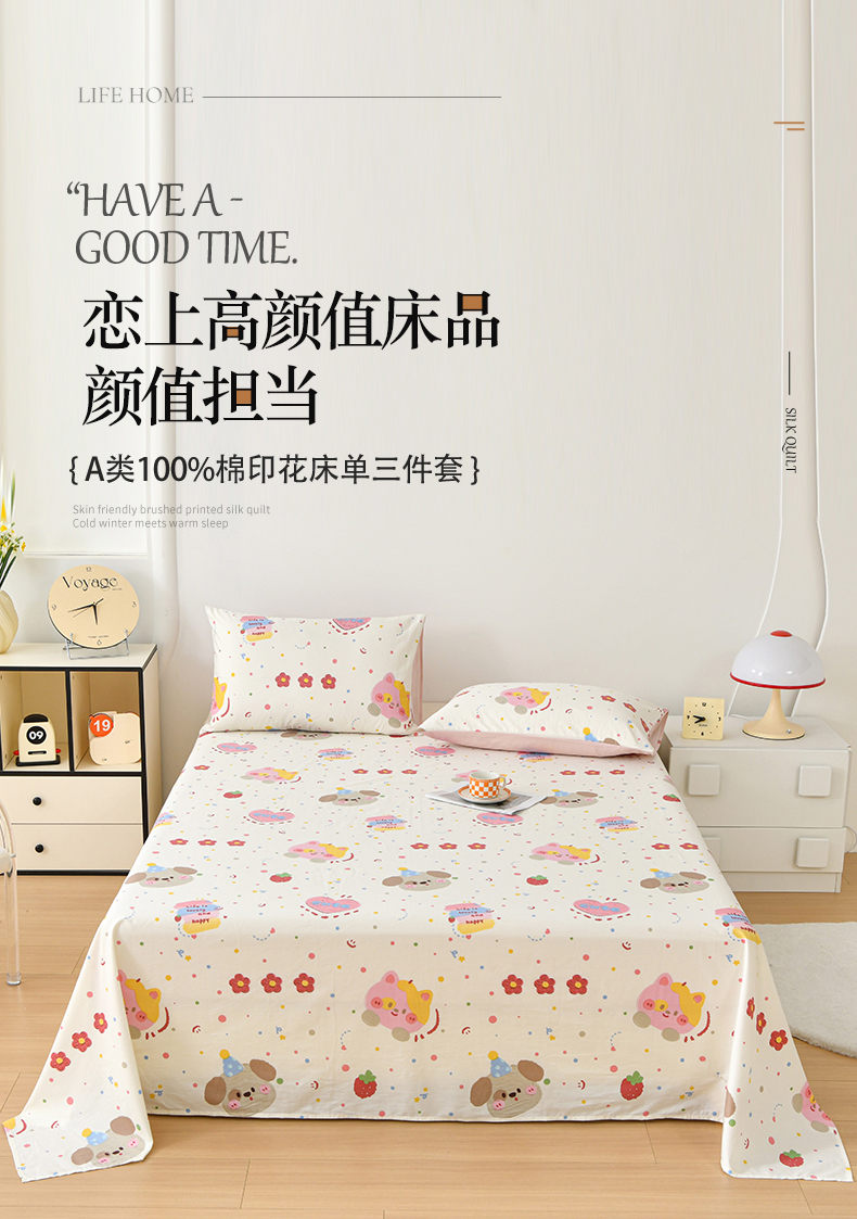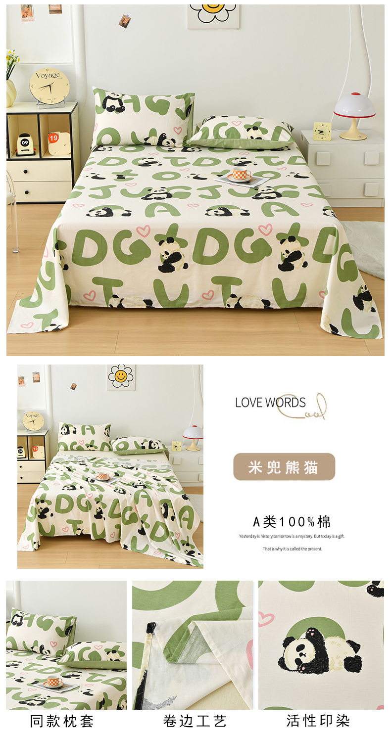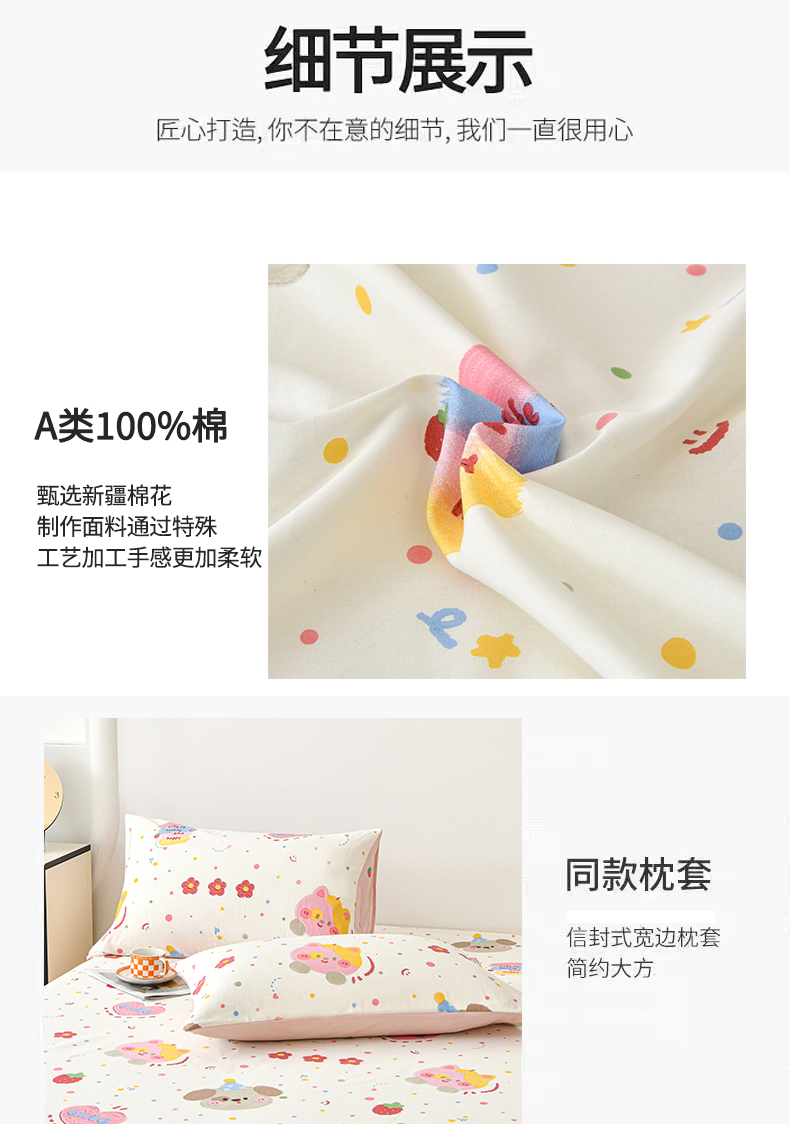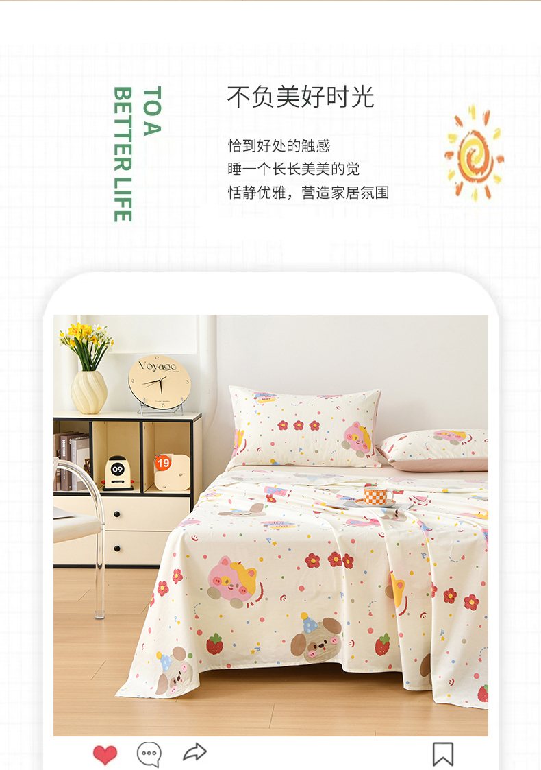 宇彬家纺 2025直播新款13372全棉纯棉印花双人单床单枕套三件套喷气小清新简约学生被单 争奇斗艳
