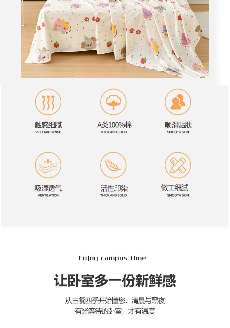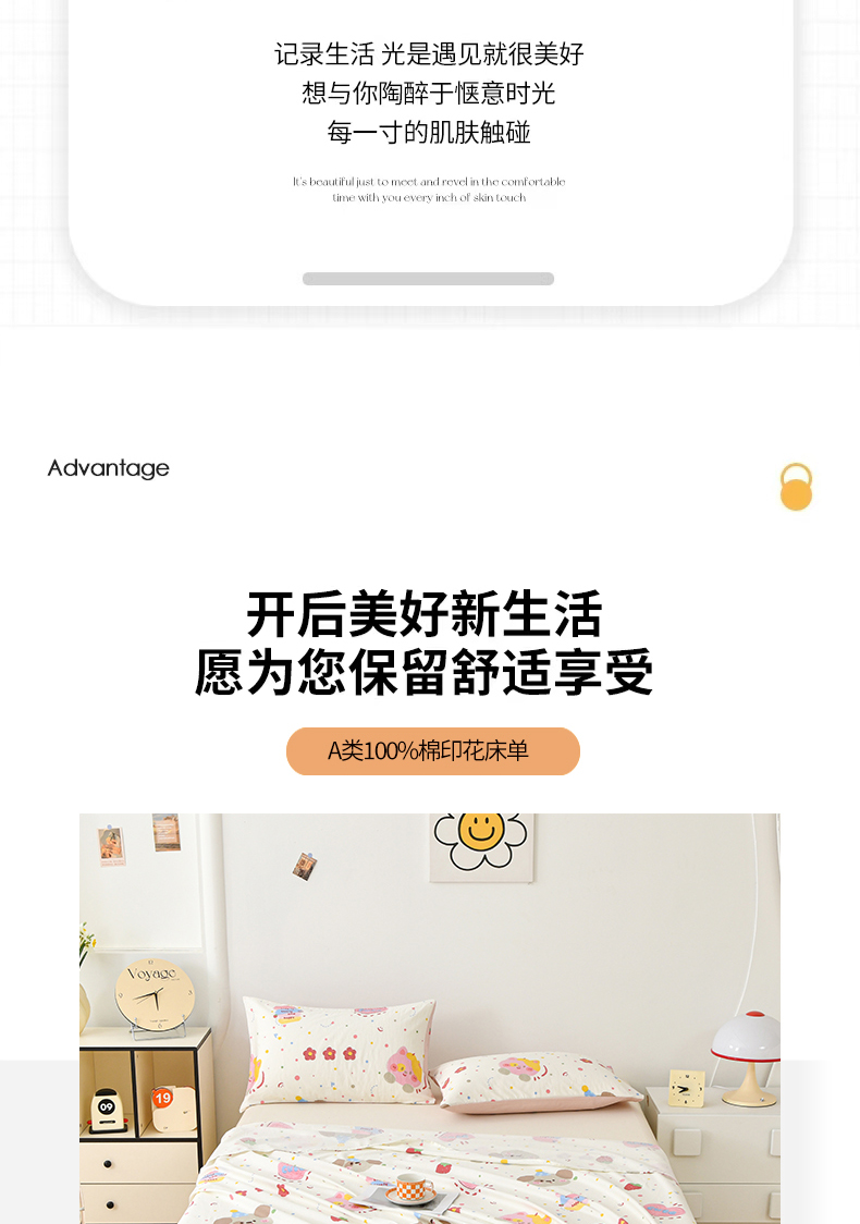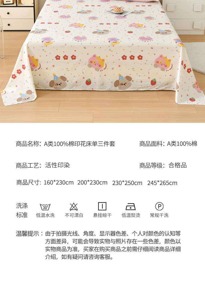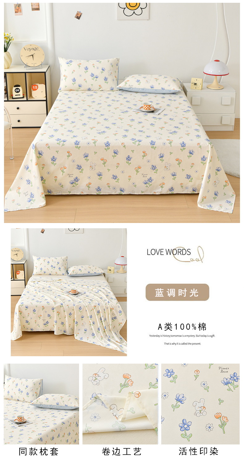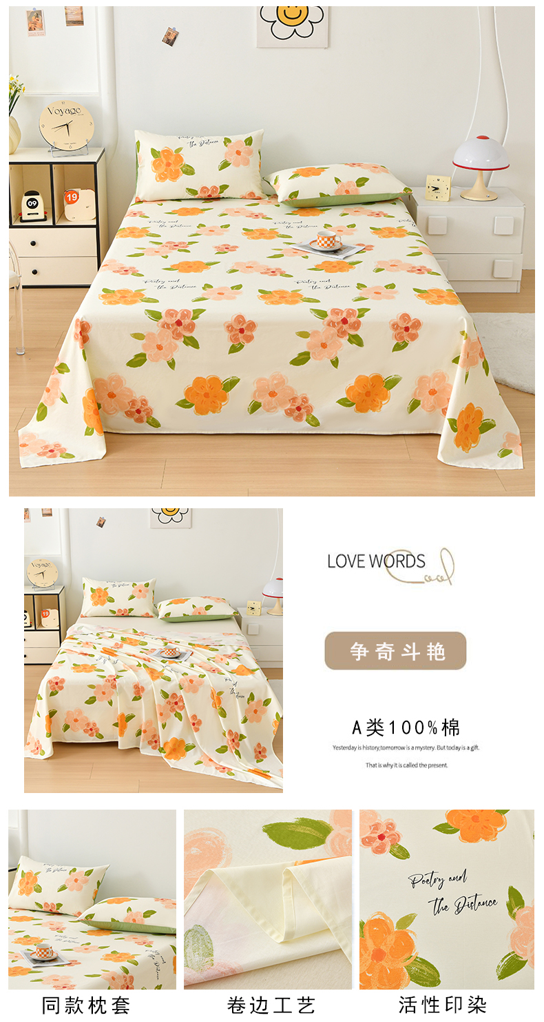 商品名称:宇彬家纺 2025直播新款13372全棉纯棉印花双人单床单枕套三件套喷气小清新简约学生被单 争奇斗艳