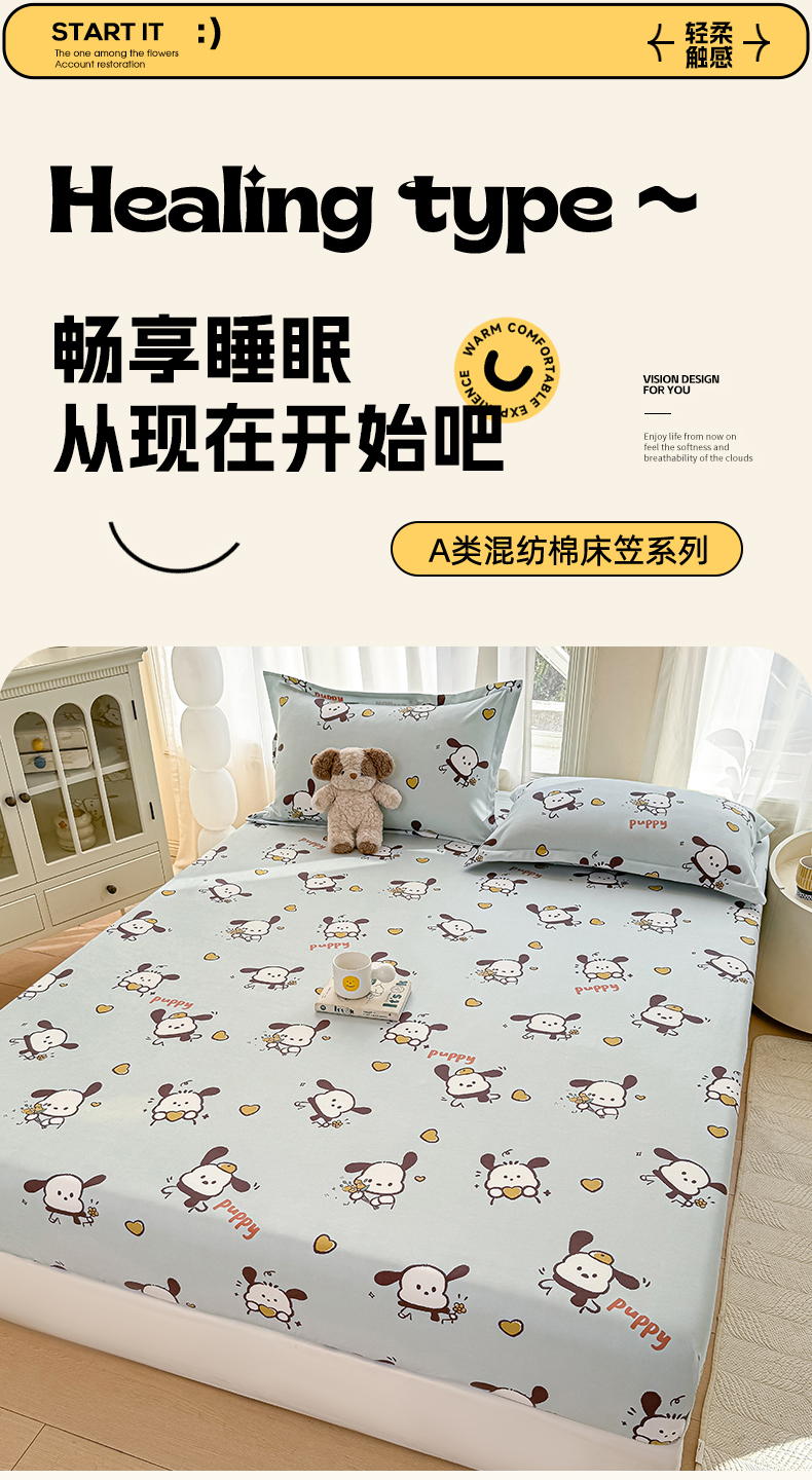 丝芙妮家居(原乐视家纺) 2025新款A类混纺70棉床笠 元气小狗