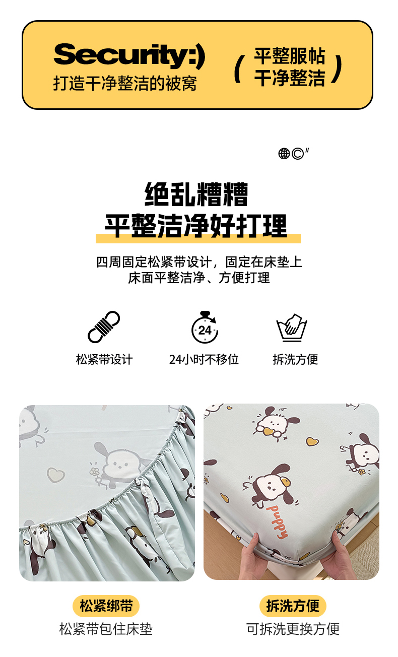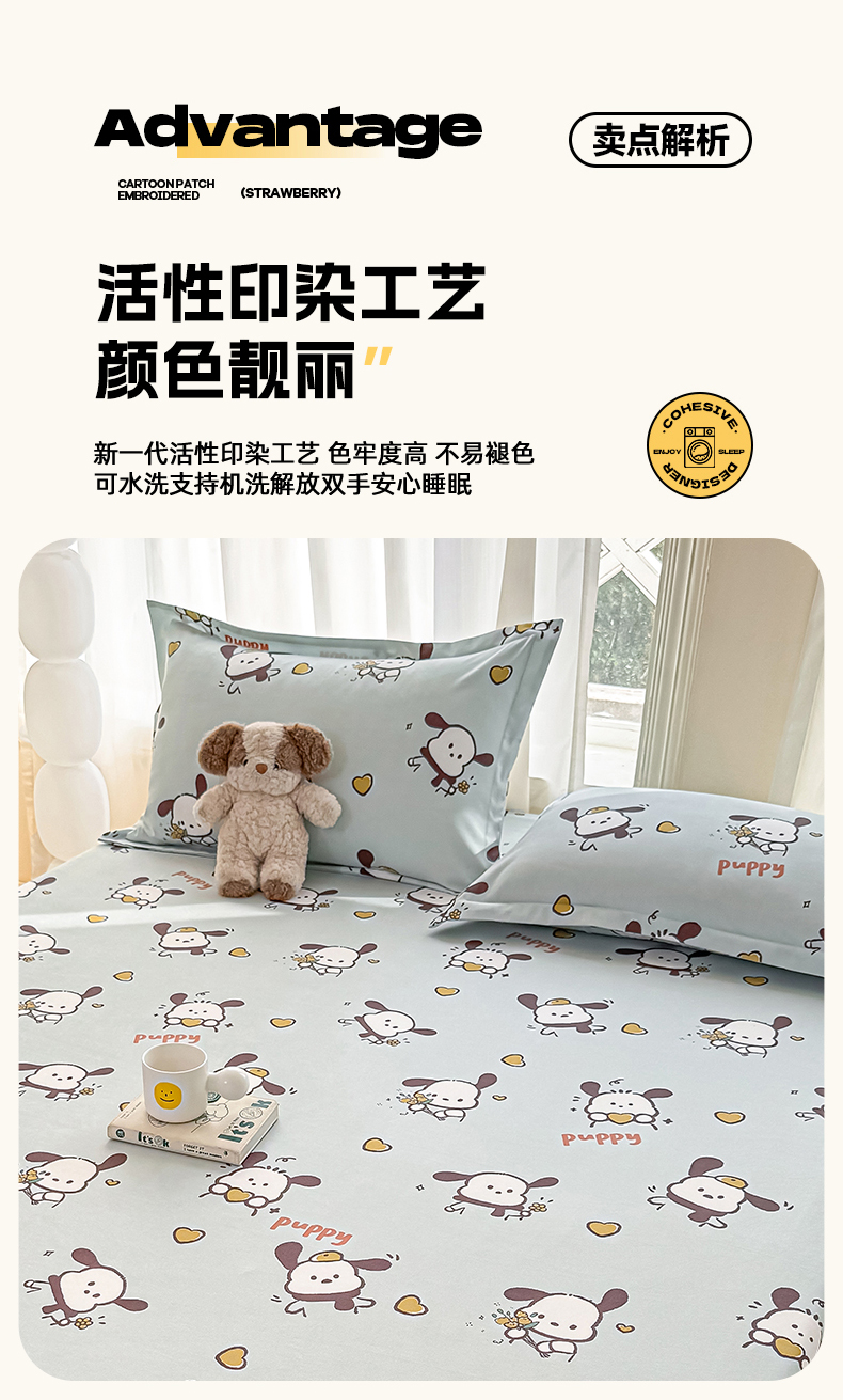 • 91家纺网 家纺一手货源 找家纺 丝芙妮家居(原乐视家纺) 2025新款A类混纺70棉床笠 元气小狗