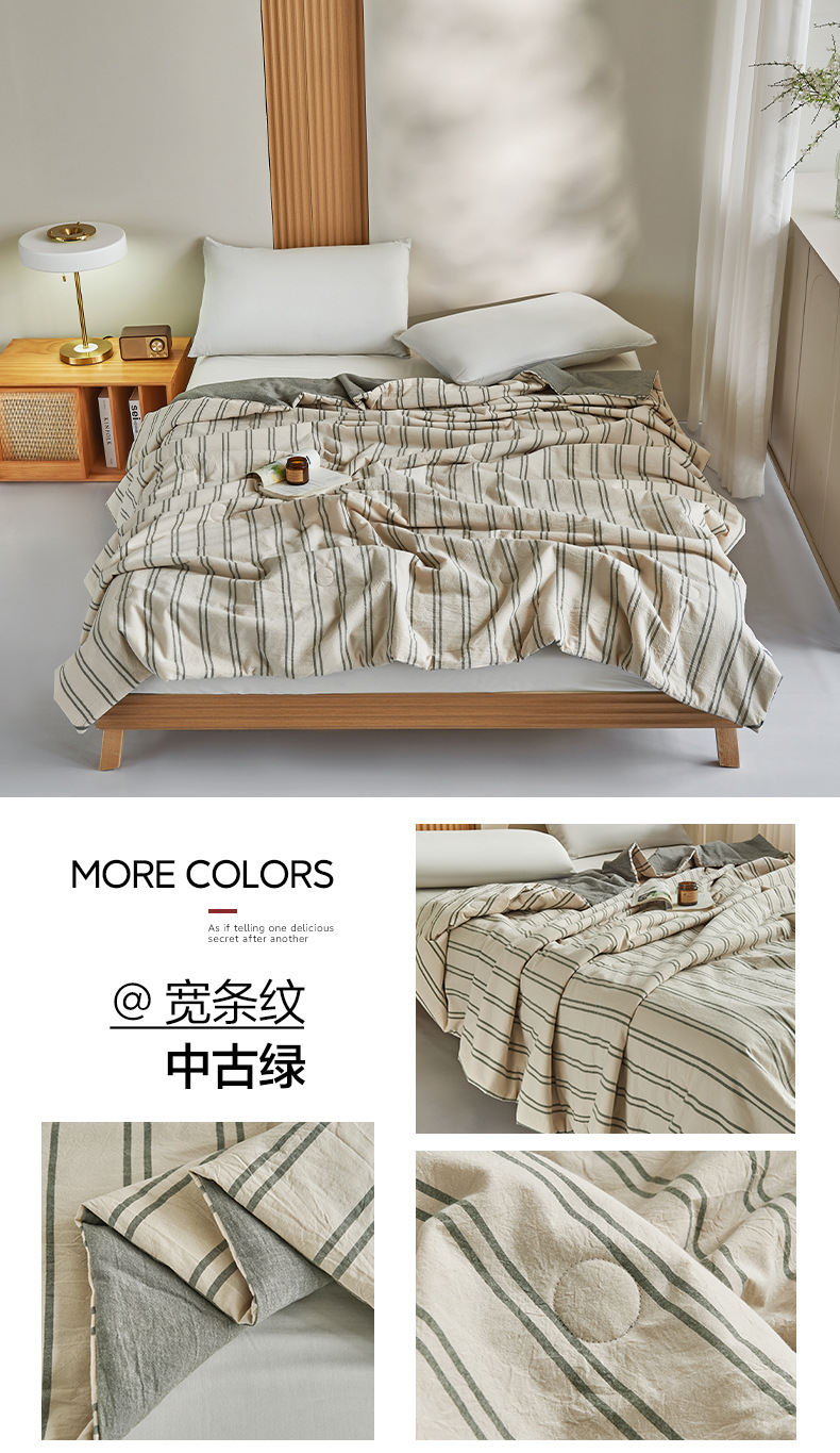 商品名称:良品汇馆 2025新款日式无印水洗棉夏被良品大豆纤维被条纹全棉柔软夏凉被空调被子 米密条-灰色