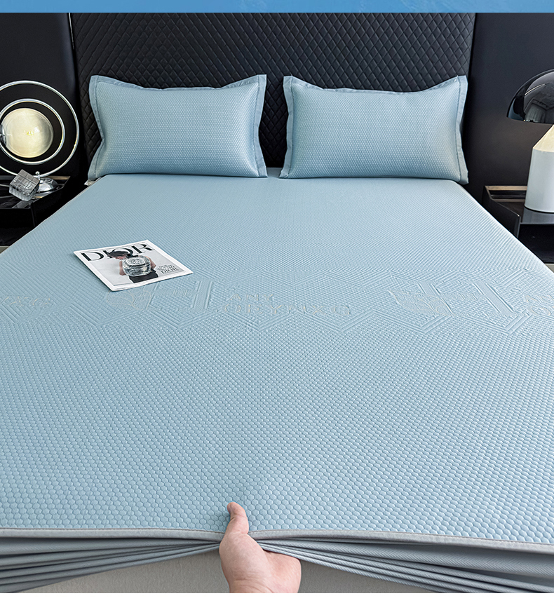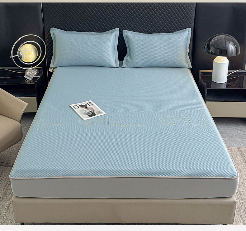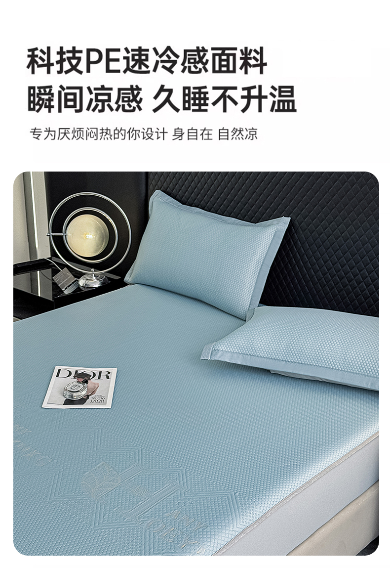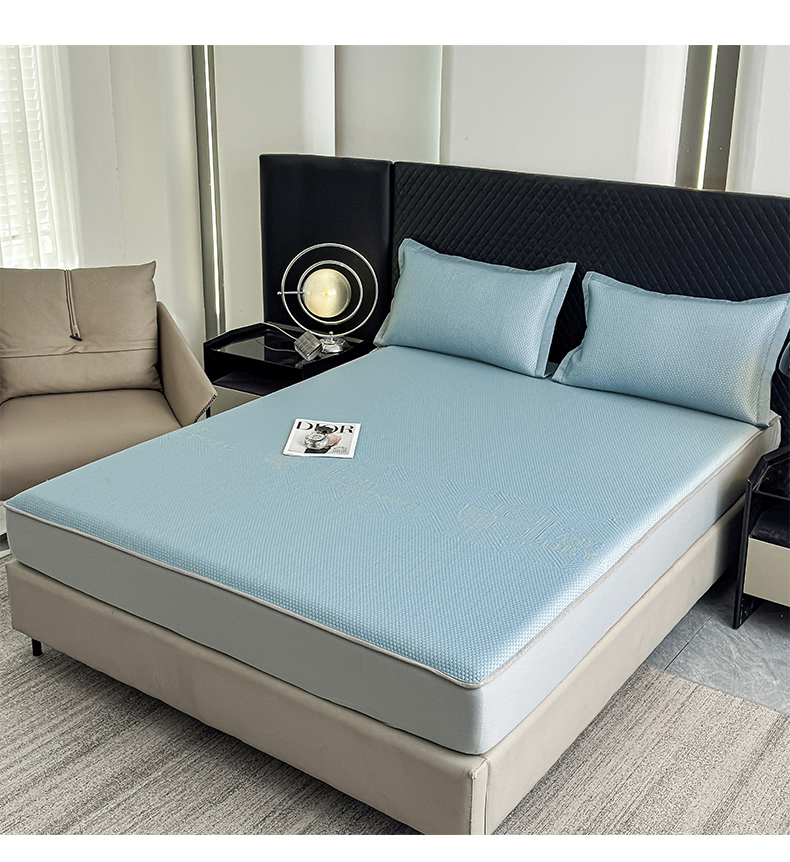 瑞兴纺 2025新款高分子PE软凉席绣花款床笠款 床笠款-路易威-蓝