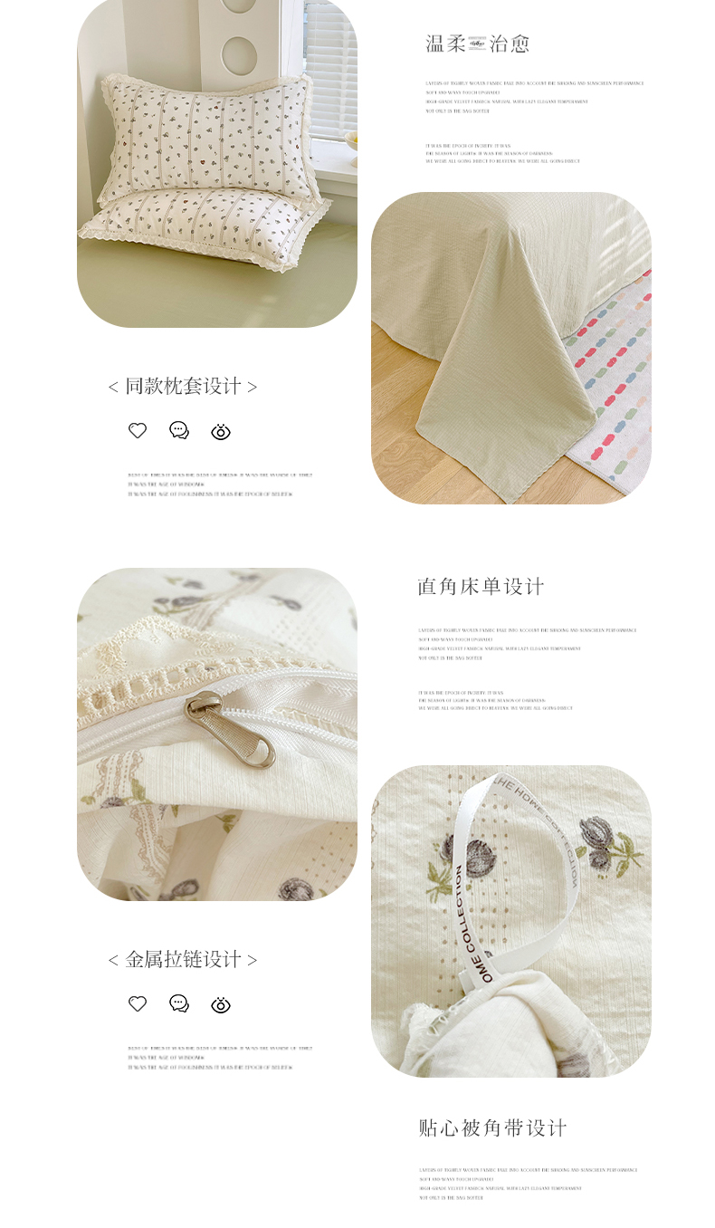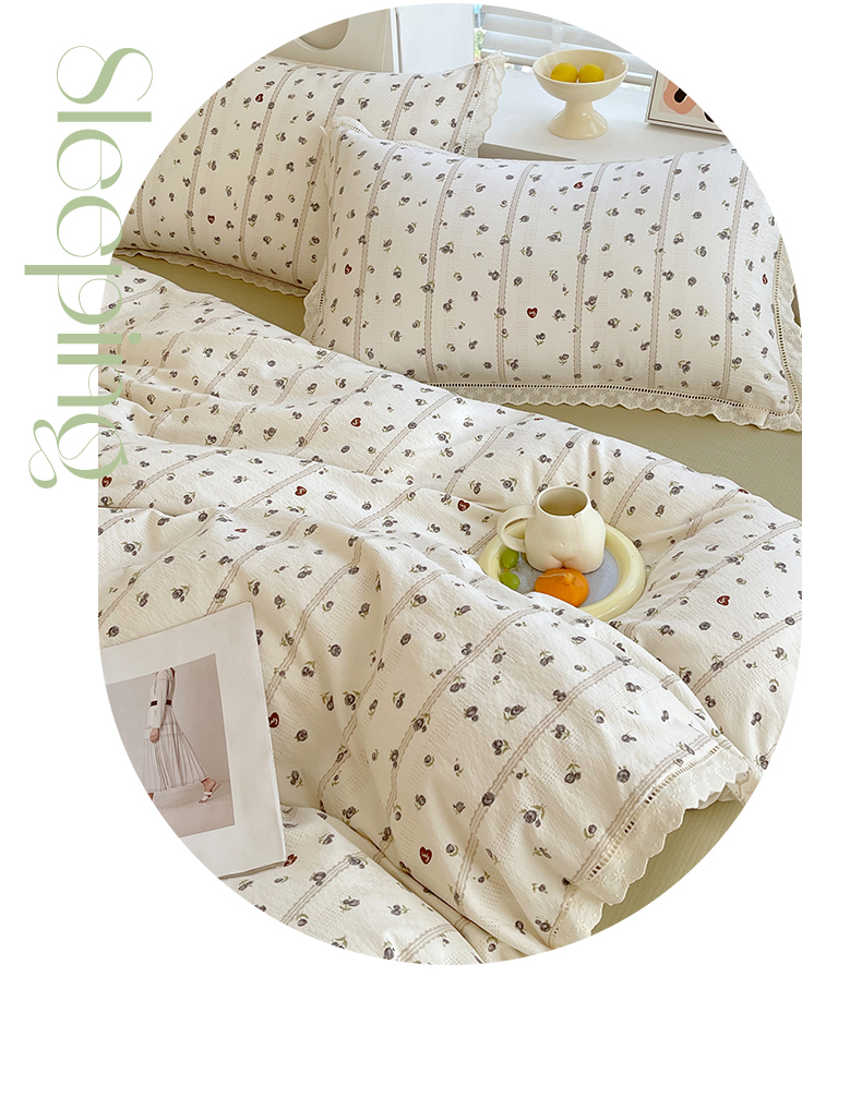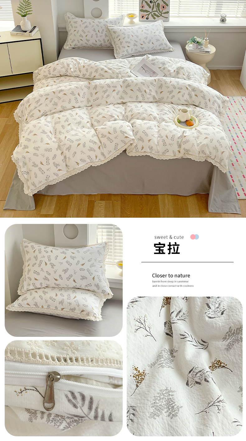 商品名称:雨彤家纺 2025新款A类高克重云感皱皱双层纱全棉镂空花边款法式四件套-叠拍图 浮梦