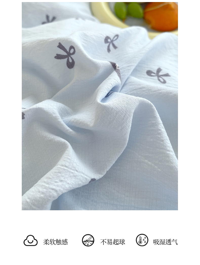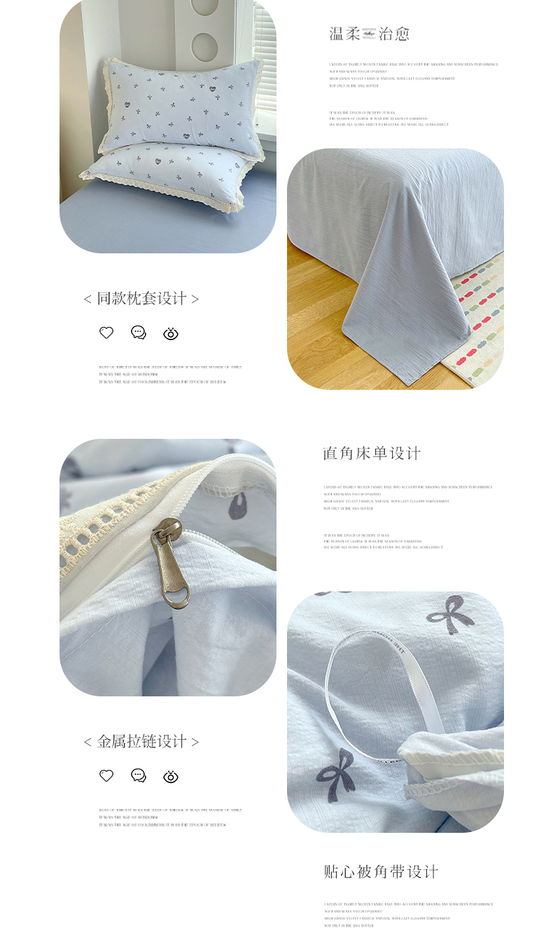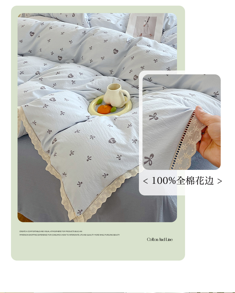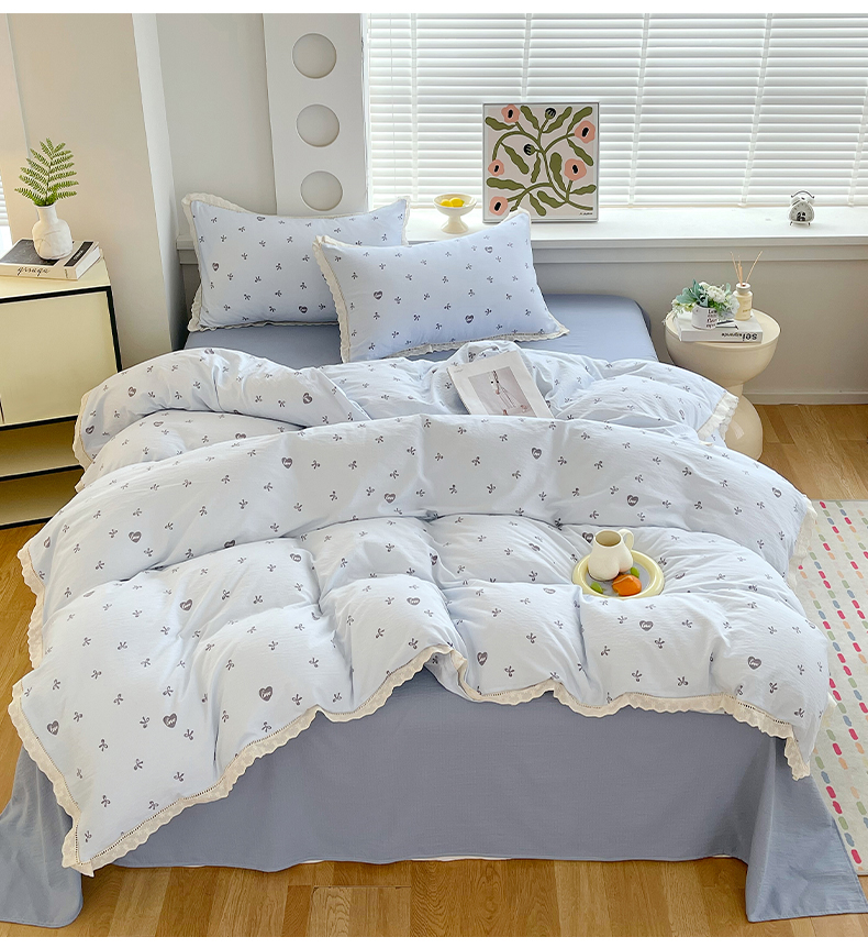 商品名称:雨彤家纺 2025新款A类高克重云感皱皱双层纱全棉镂空花边款法式四件套-叠拍图 悦枝